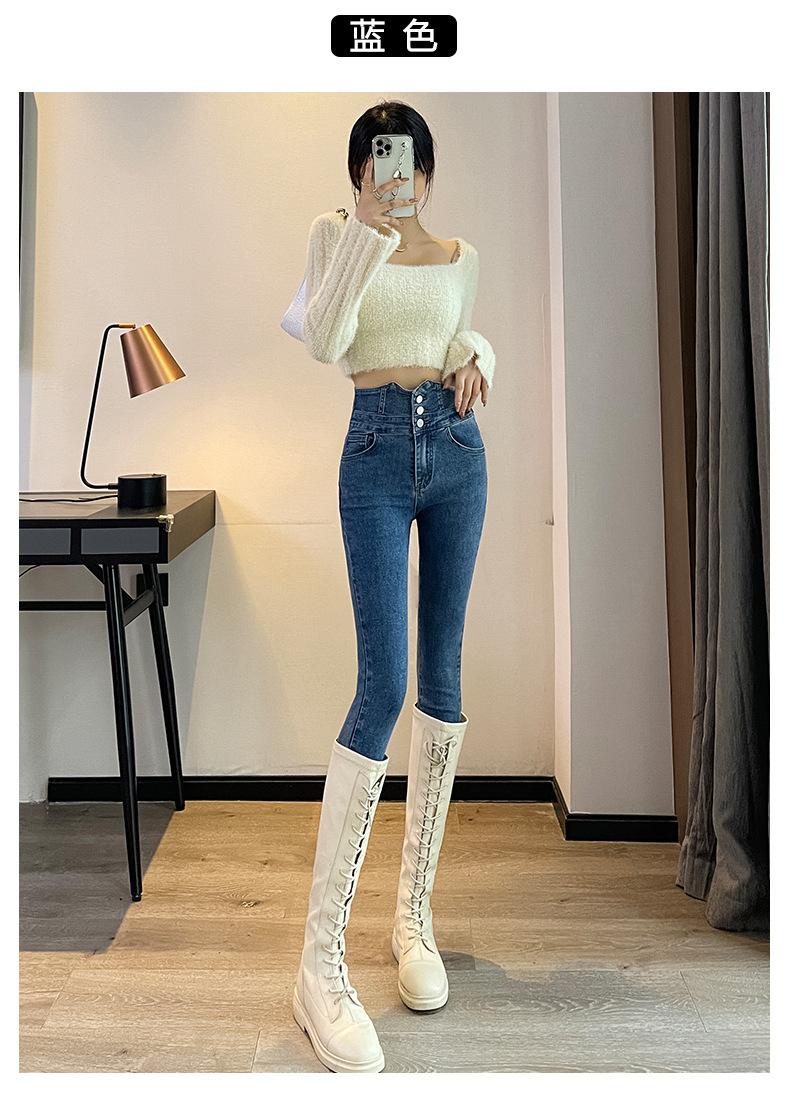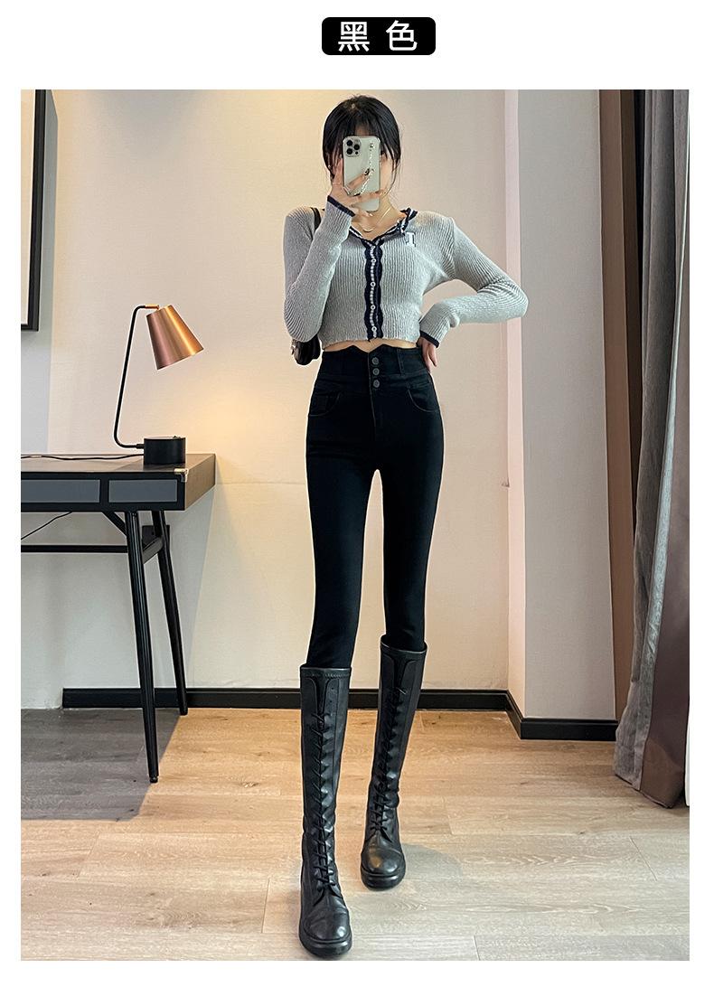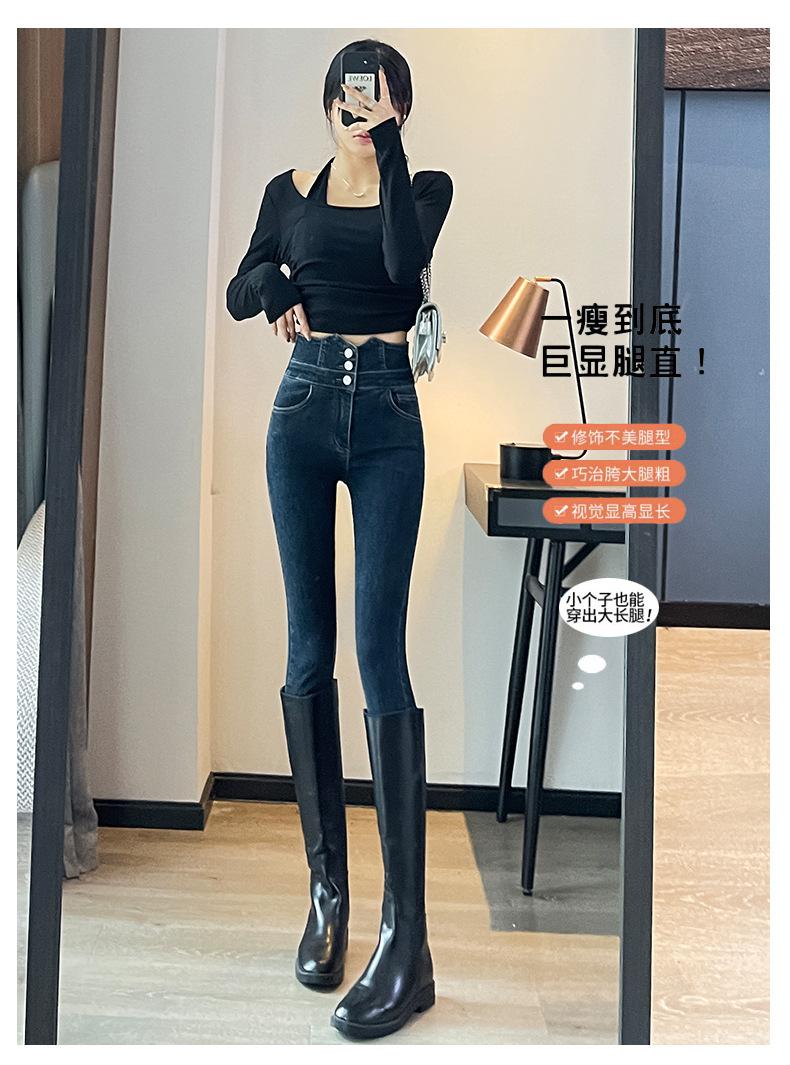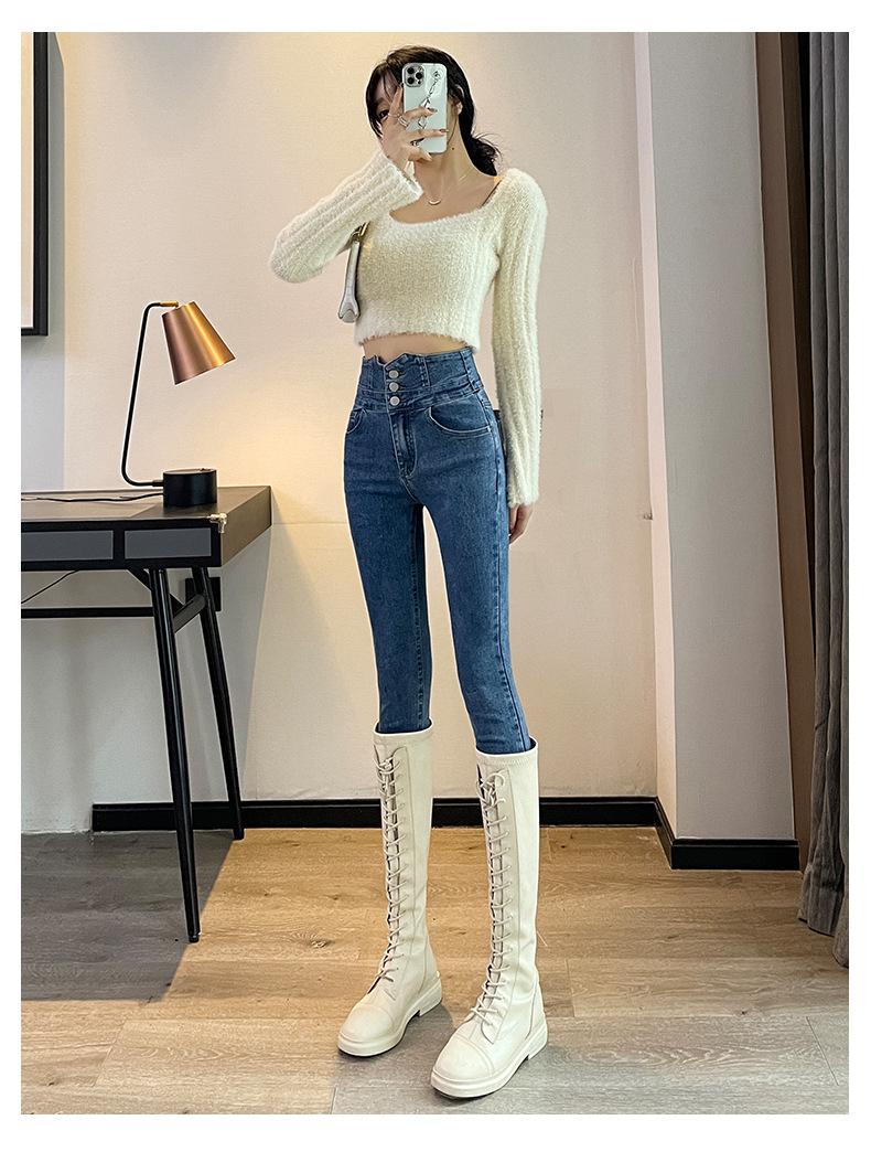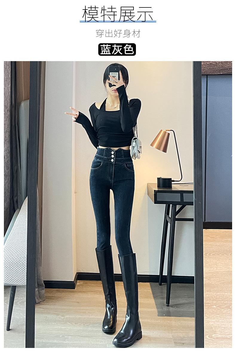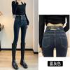 Jeans de Primavera y Otoño para Mujer, Pantalones Skinny de Corte Slim de Cintura Alta, Negros con Espalda Cruzada, Pantalones de Pierna Recta, Venta al por Mayor, Estilo Fresco
