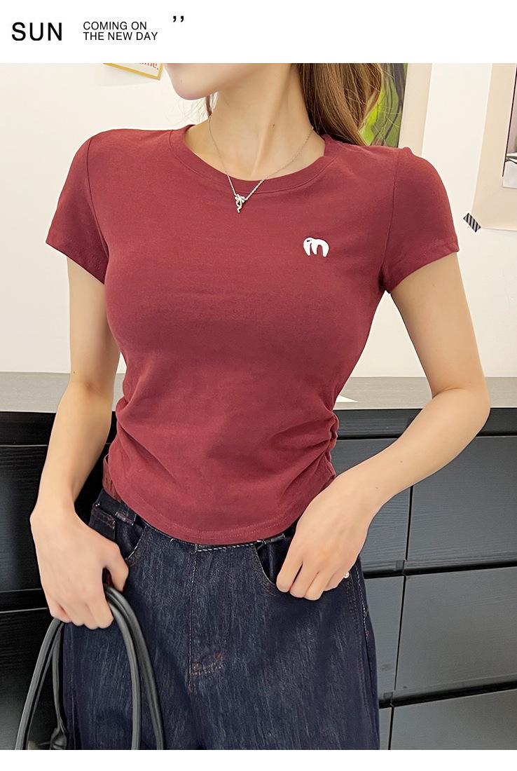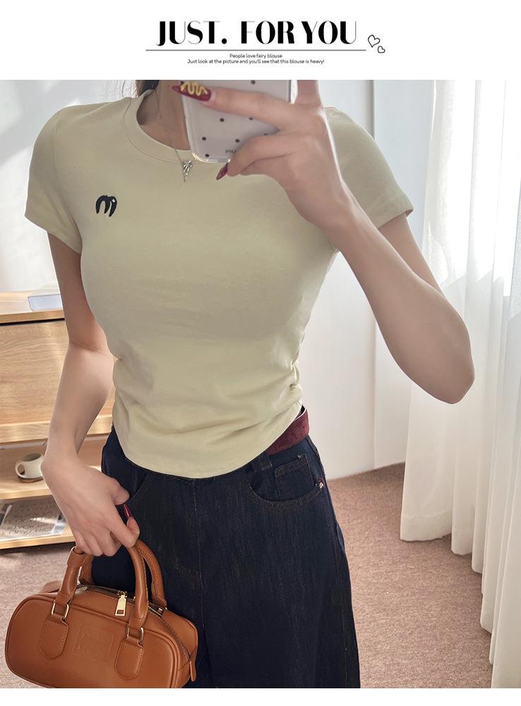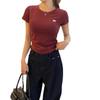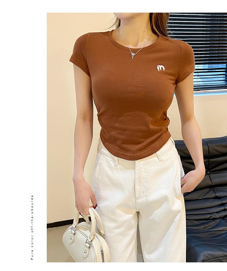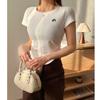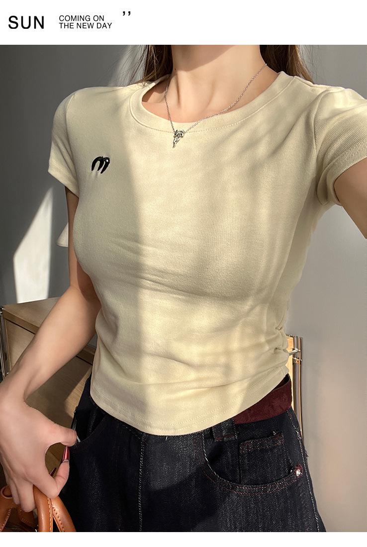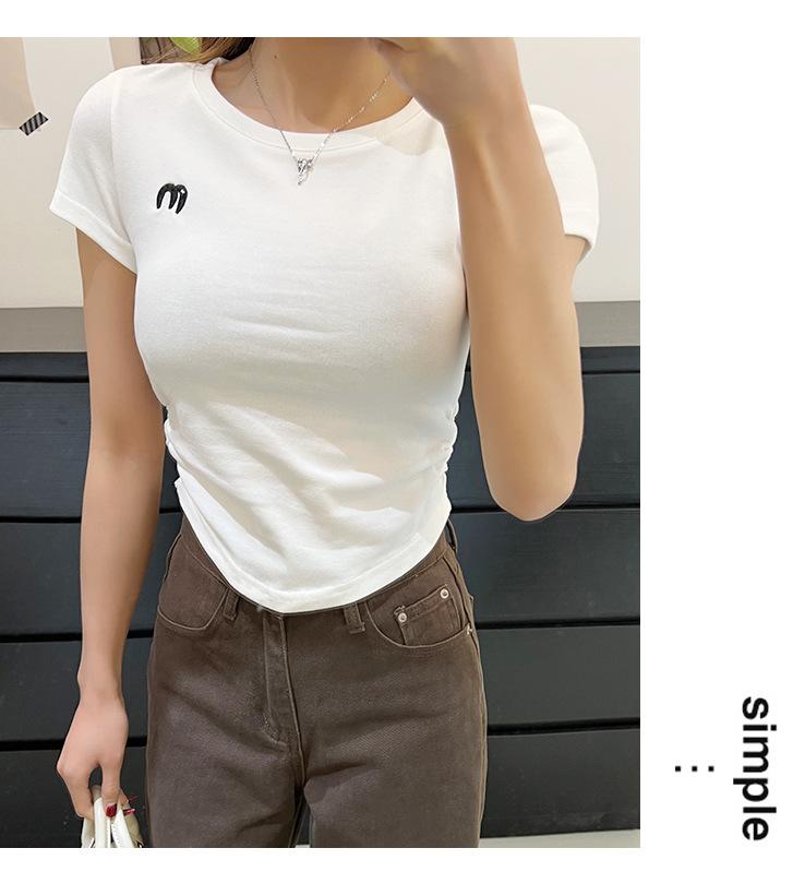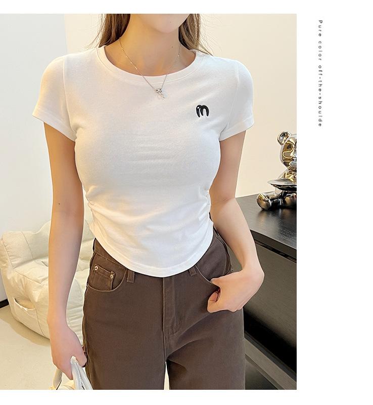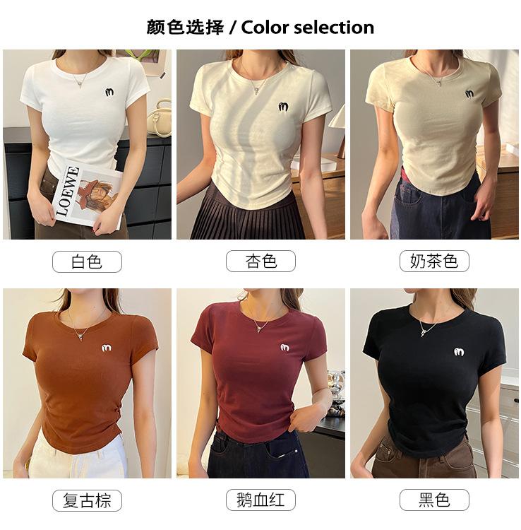 Camiseta de Manga Corta Adelgazante de Hombro Ajustada para Mujer 2025 Verano Nuevo Estilo Europeo Estilo Occidental Sentido del Diseño Nicho Top Ajustado a la Cintura