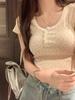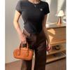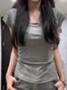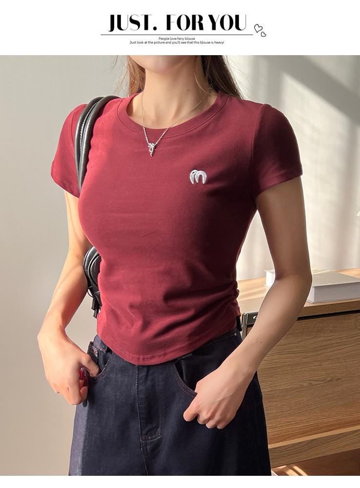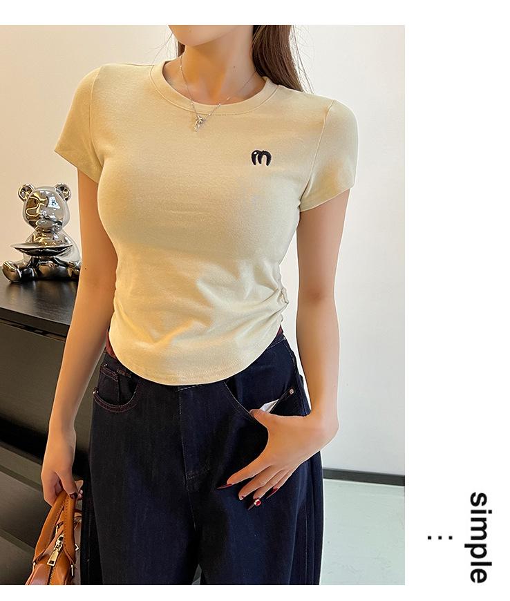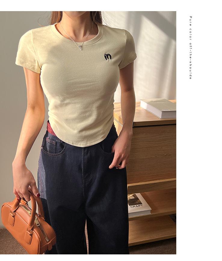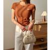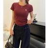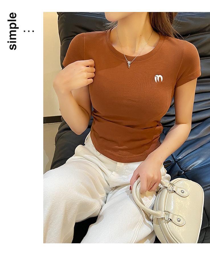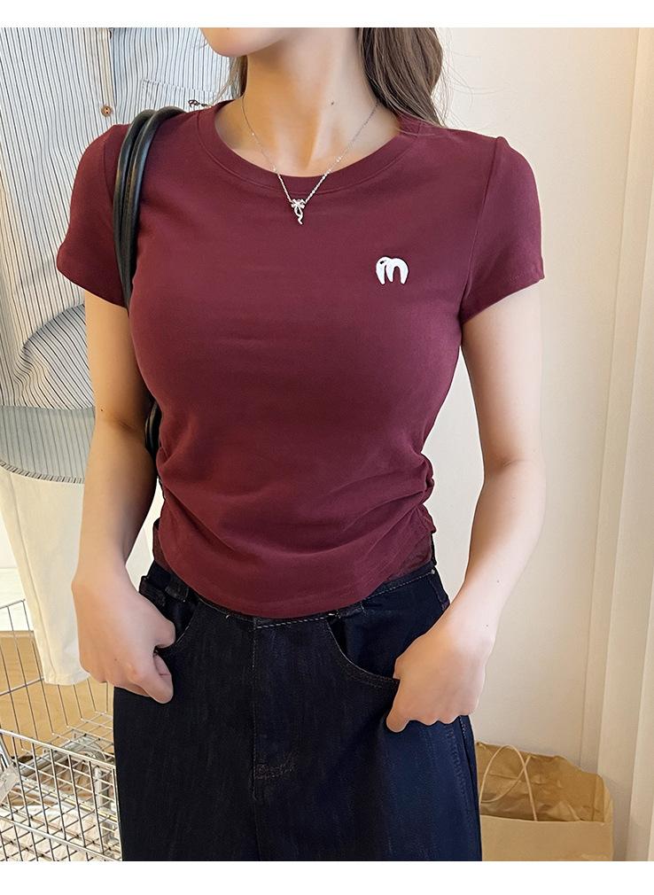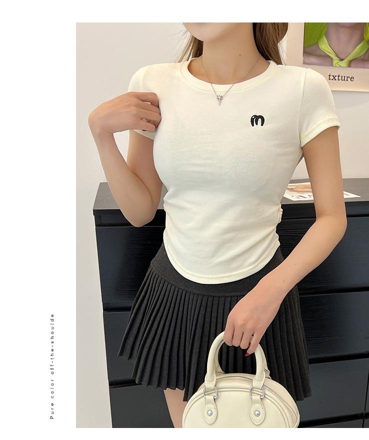 Camiseta de Manga Corta Adelgazante de Hombro Ajustada para Mujer 2025 Verano Nuevo Estilo Europeo Estilo Occidental Sentido del Diseño Nicho Top Ajustado a la Cintura