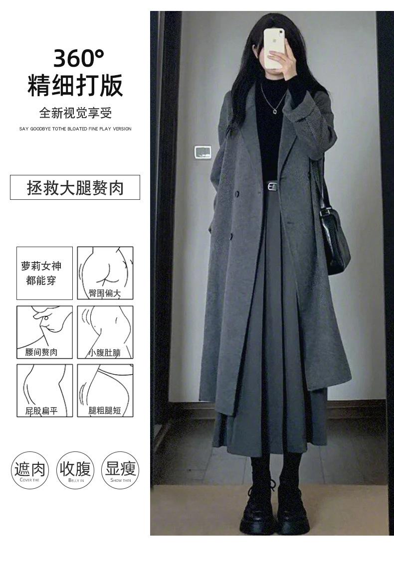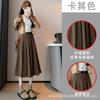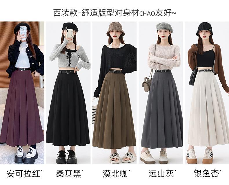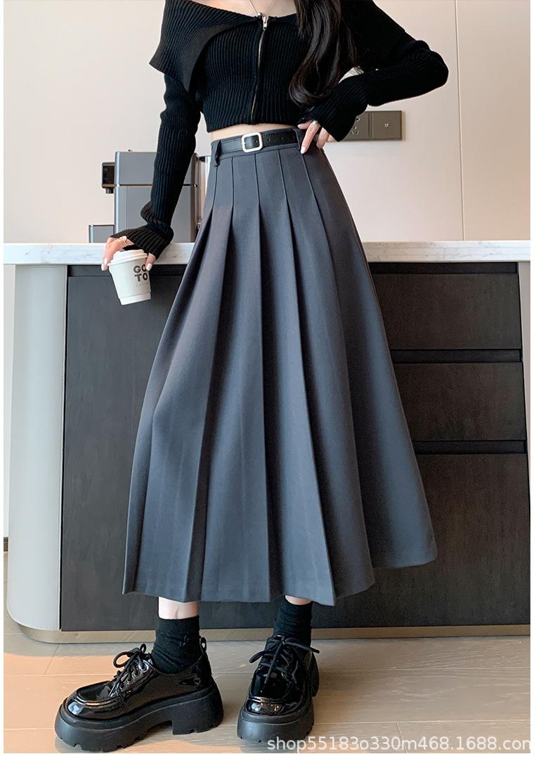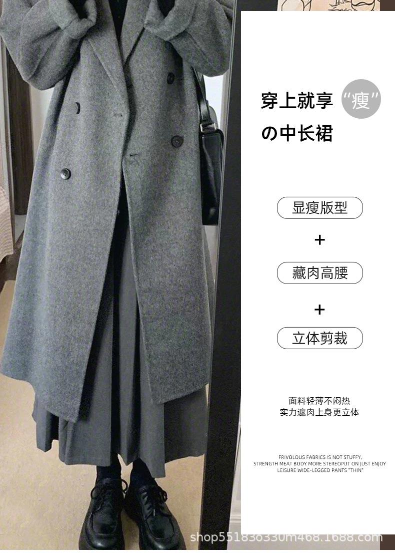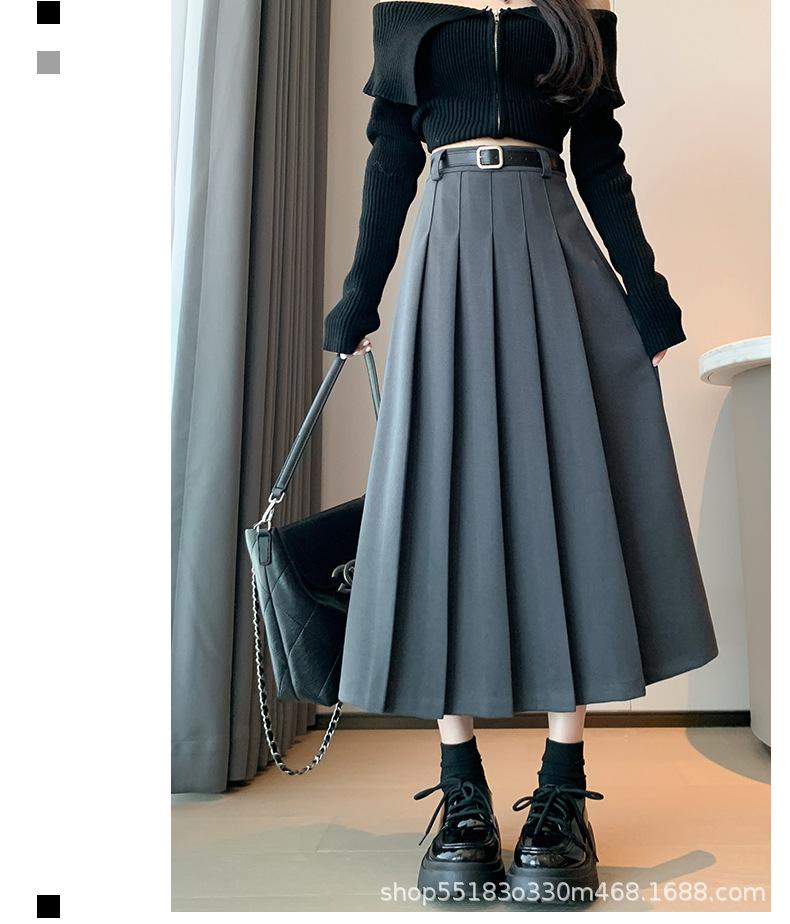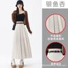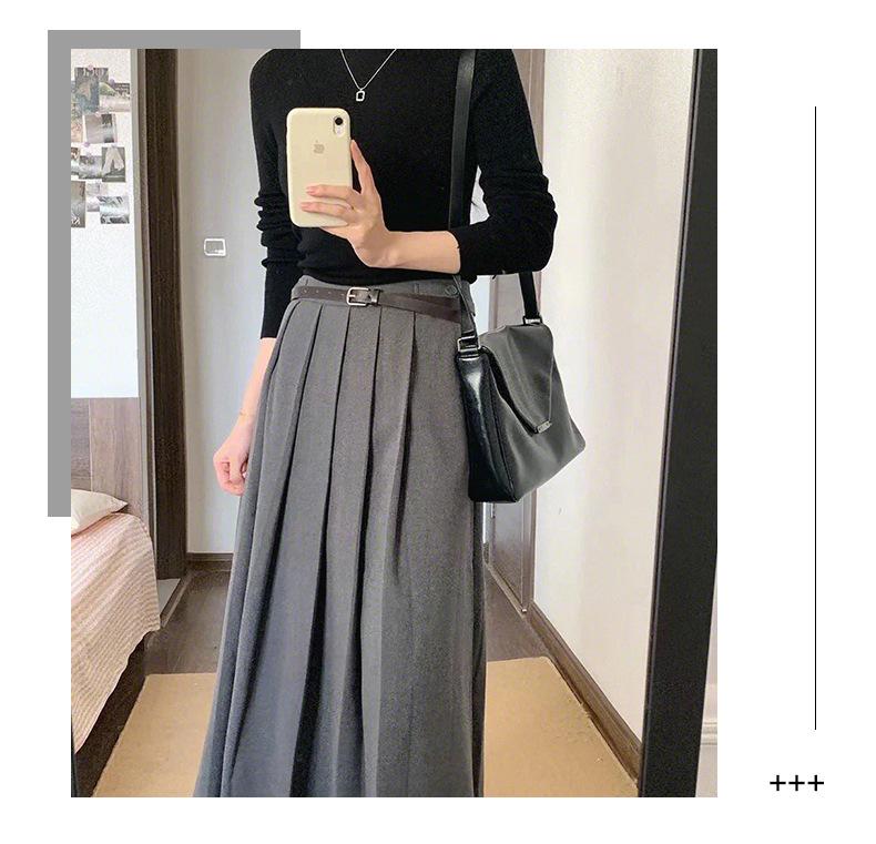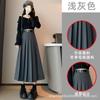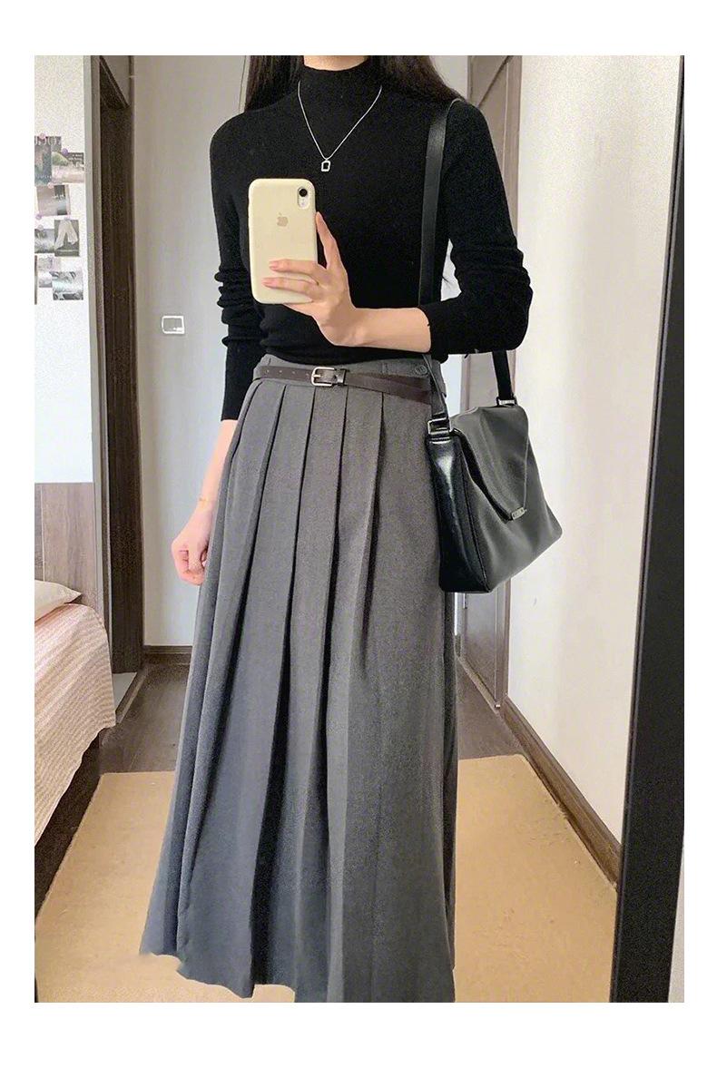 Vestido Plisado Gris para Mujer Primavera y Otoño Falda Drapeada Cintura Alta Casual Amplio Vuelo Línea A Hasta la Rodilla Falda Midi