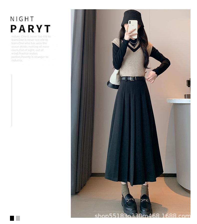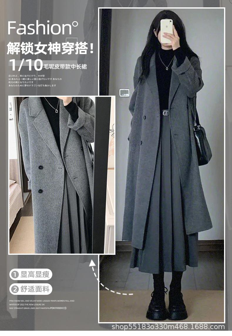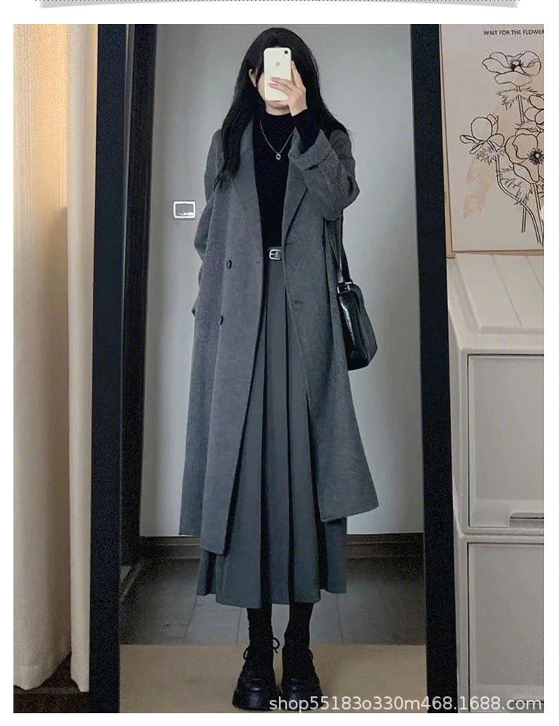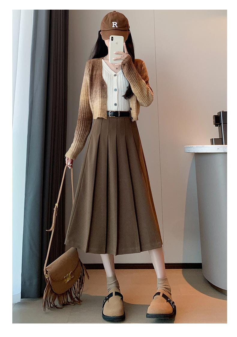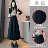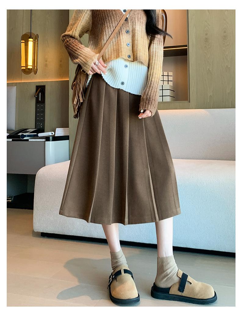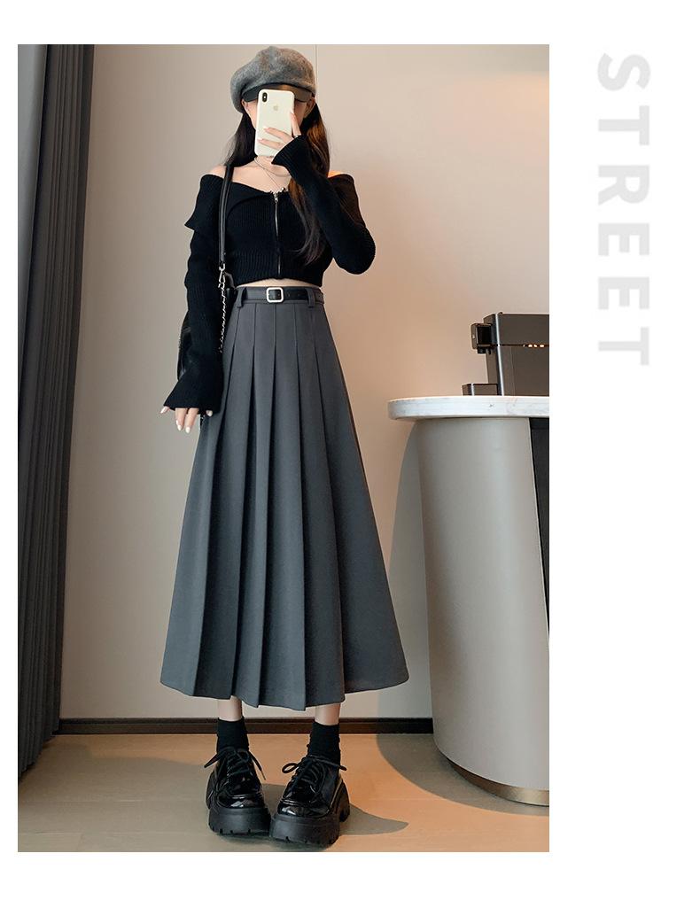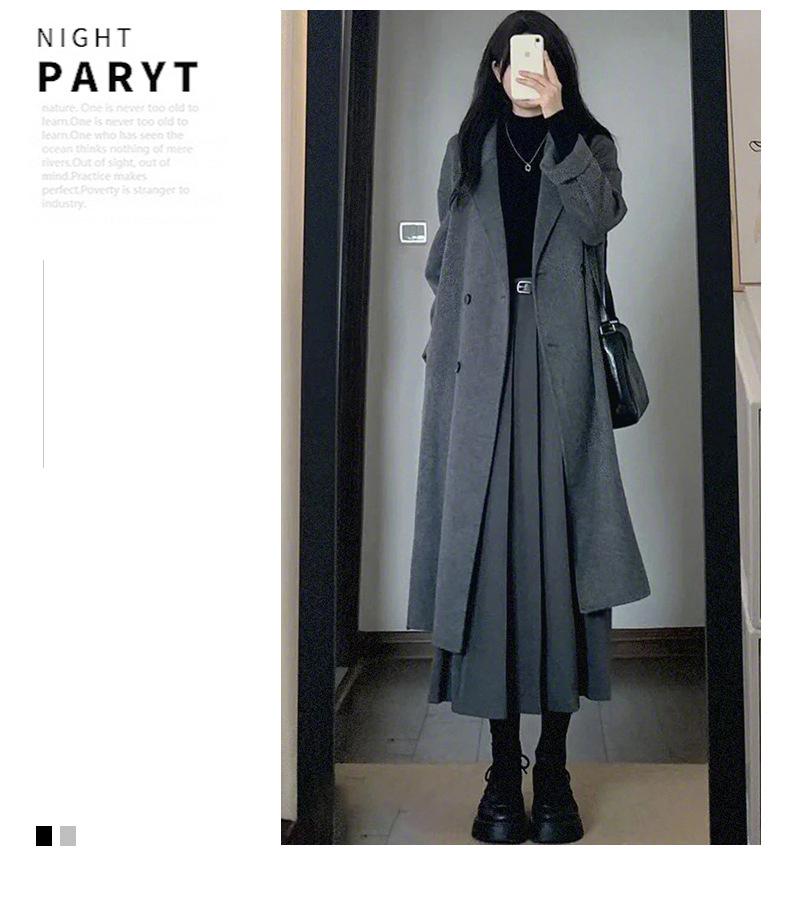 Vestido Plisado Gris para Mujer Primavera y Otoño Falda Drapeada Cintura Alta Casual Amplio Vuelo Línea A Hasta la Rodilla Falda Midi