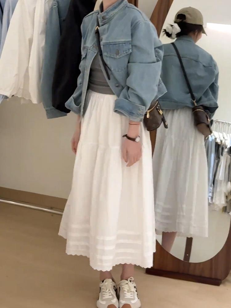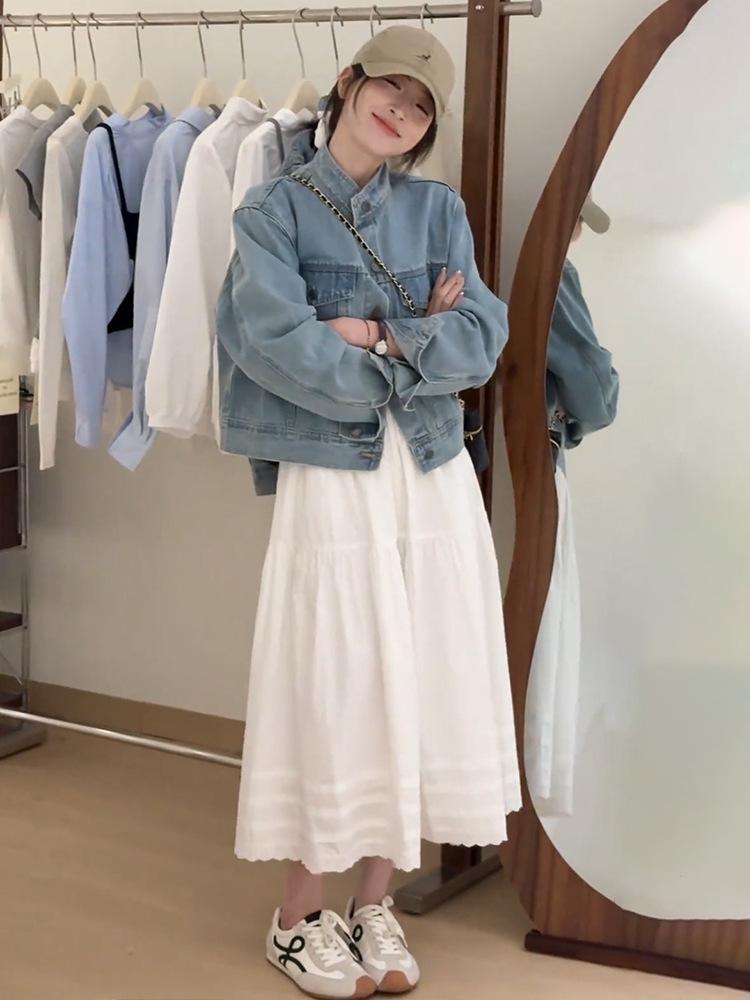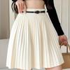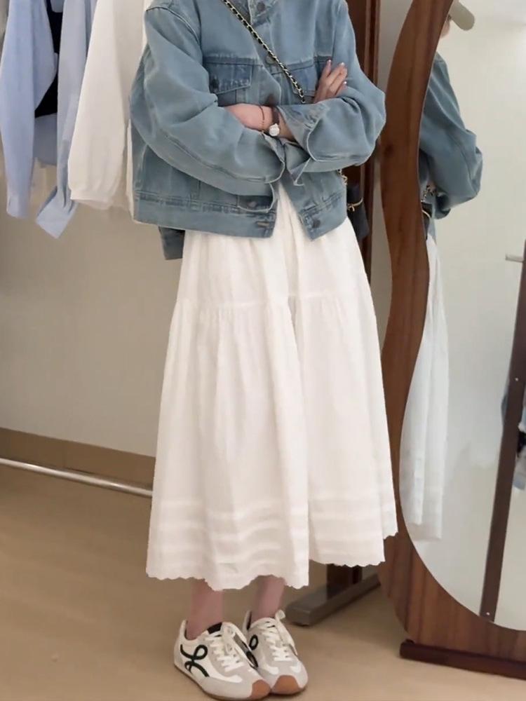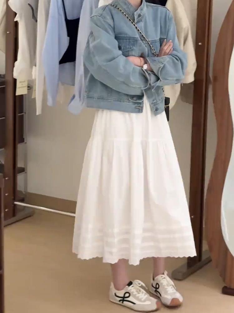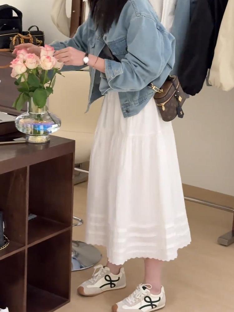 Falda Estilo Coreano con Costuras Blancas para Mujer Primavera y Verano 2025 Nueva Falda Midi de Cintura Alta Adelgazante