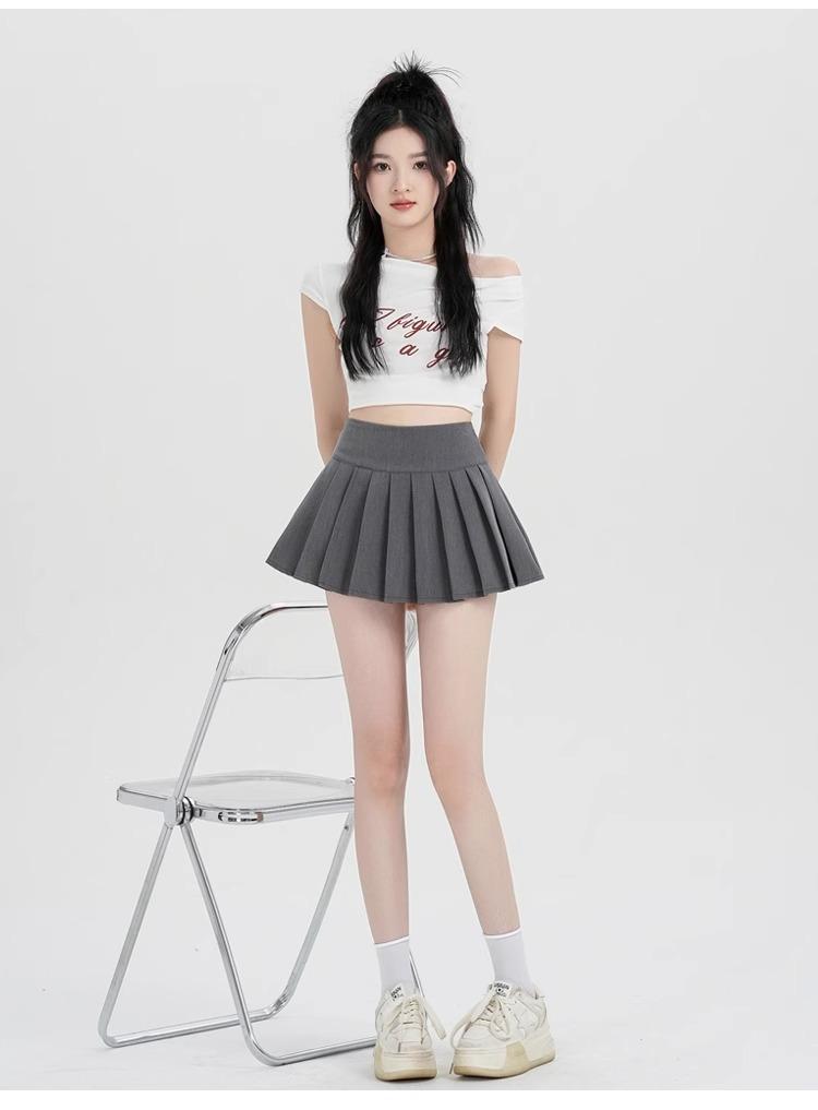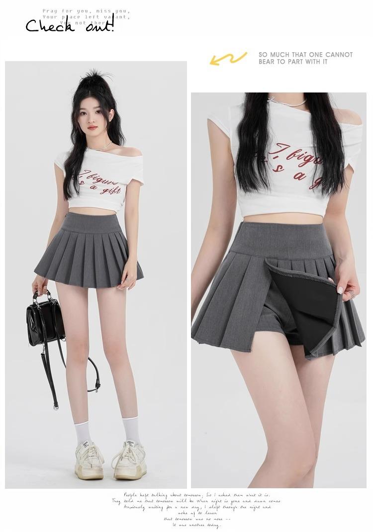Falda de Traje con Abertura para Mujer Verano 2025 Nueva Cintura Alta Línea A Jk Falda Plisada Short Corto Culottes