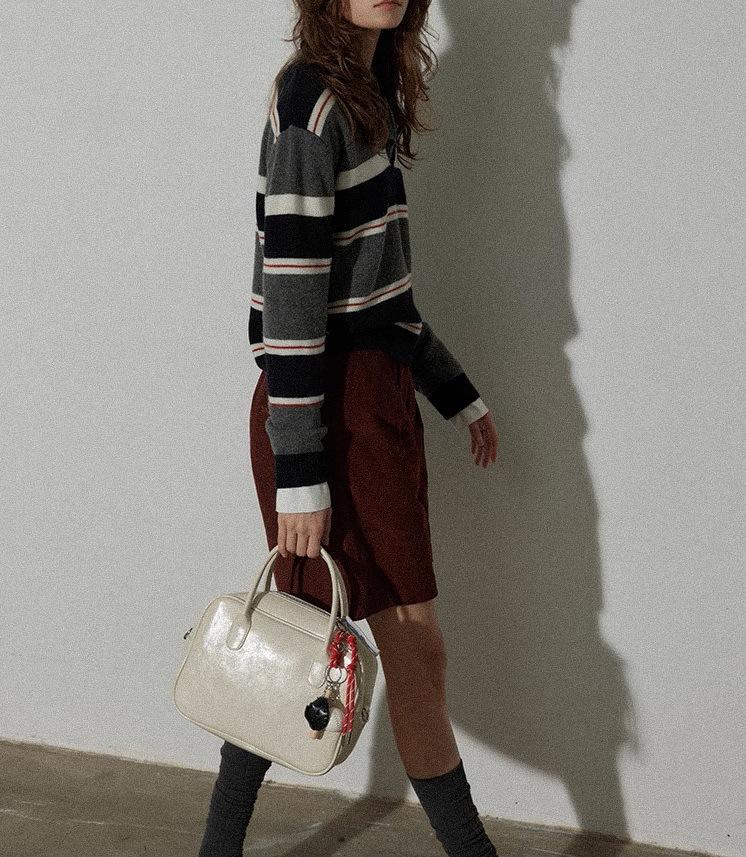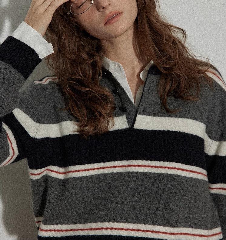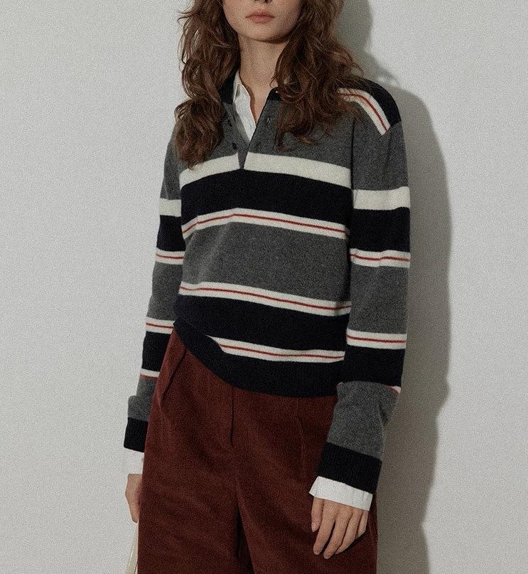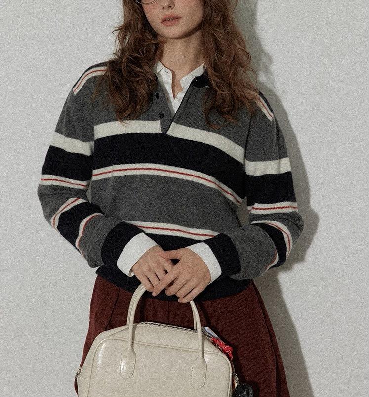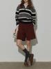 Suéter Holgado Patchwork a Rayas para Mujer Otoño 2024 Nueva Moda Suéter Tejido Sensación de Alta Gama Abrigo