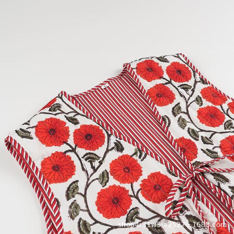 Amazon Transfronterizo Europeo y Americano 2024 Nuevo Top Chaleco de Crochet Rayado Floral con Cuello en V Chaleco de Personalidad de Moda