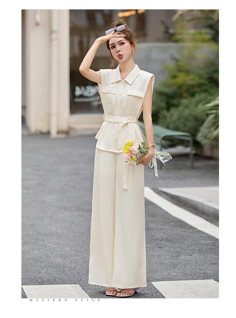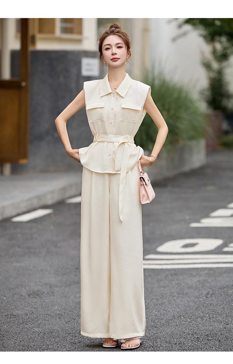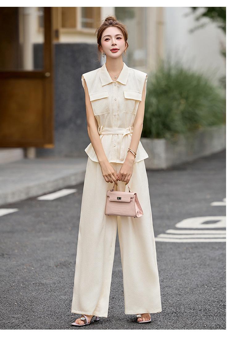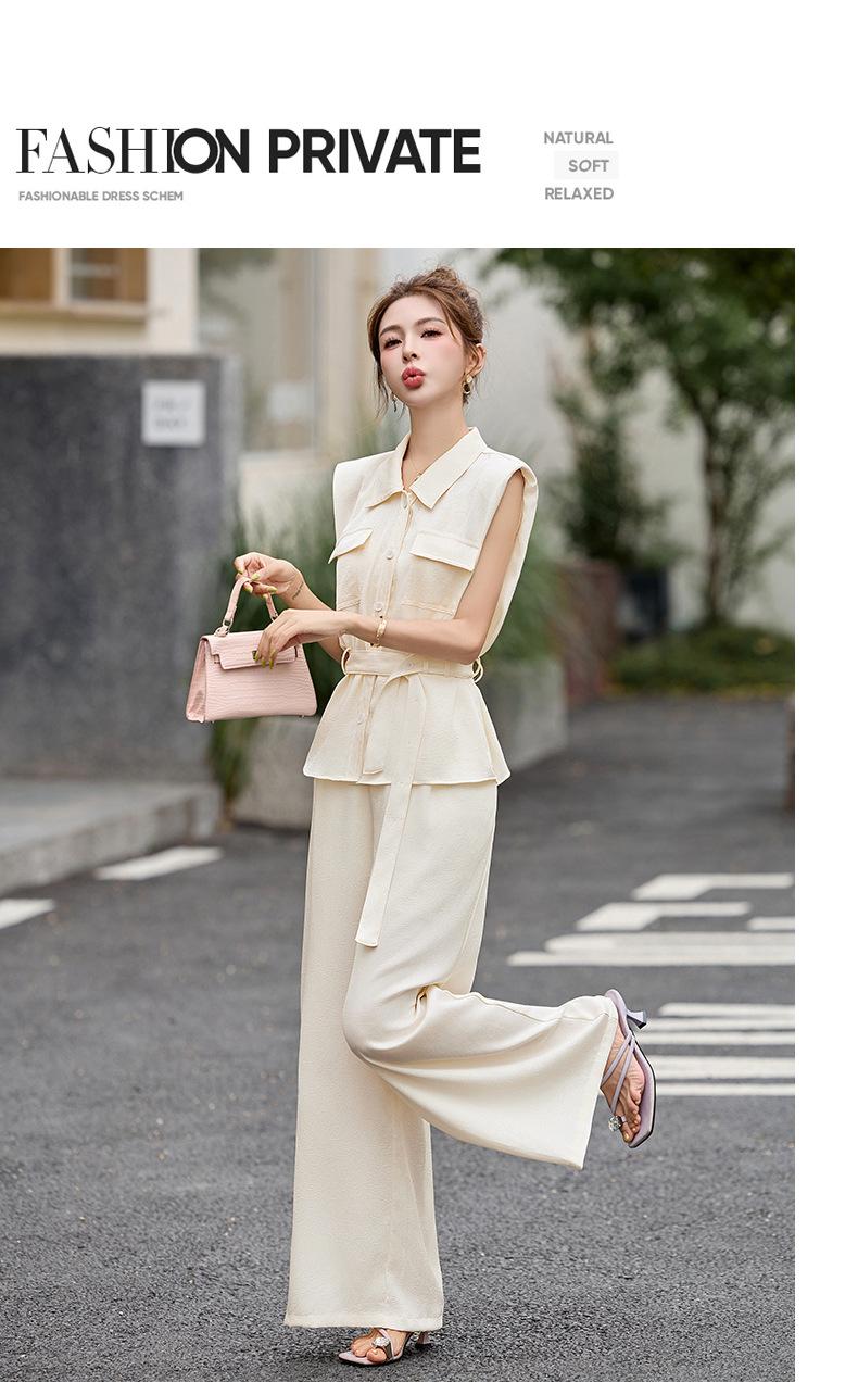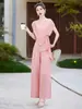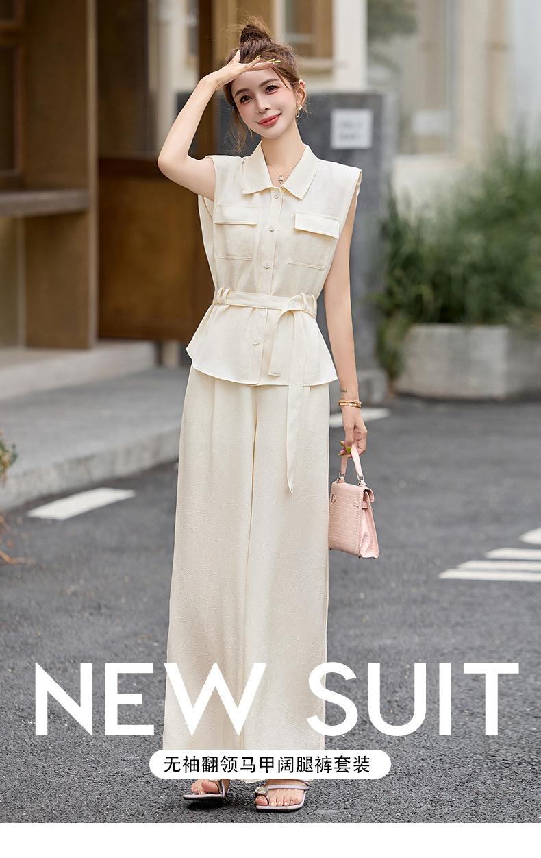 2025 Nuevo Conjunto de Dos Piezas de Verano Casual de Pierna Ancha Elegante y Dulce Top de Cuello Cuadrado y Pantalón Traje Moderno