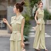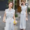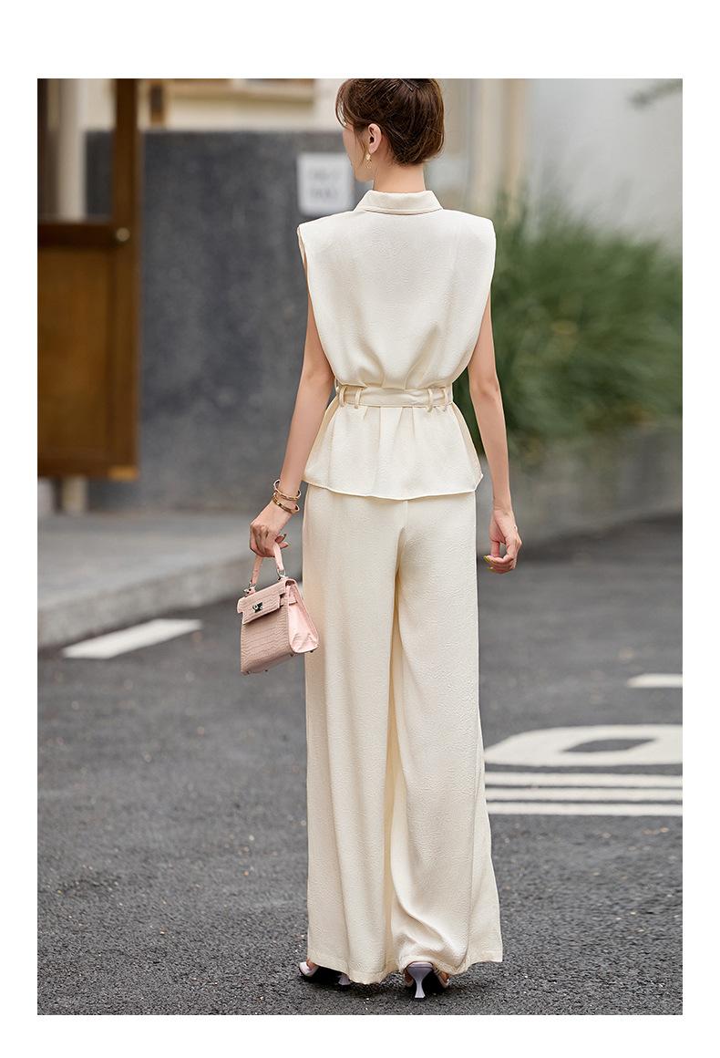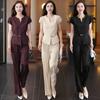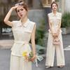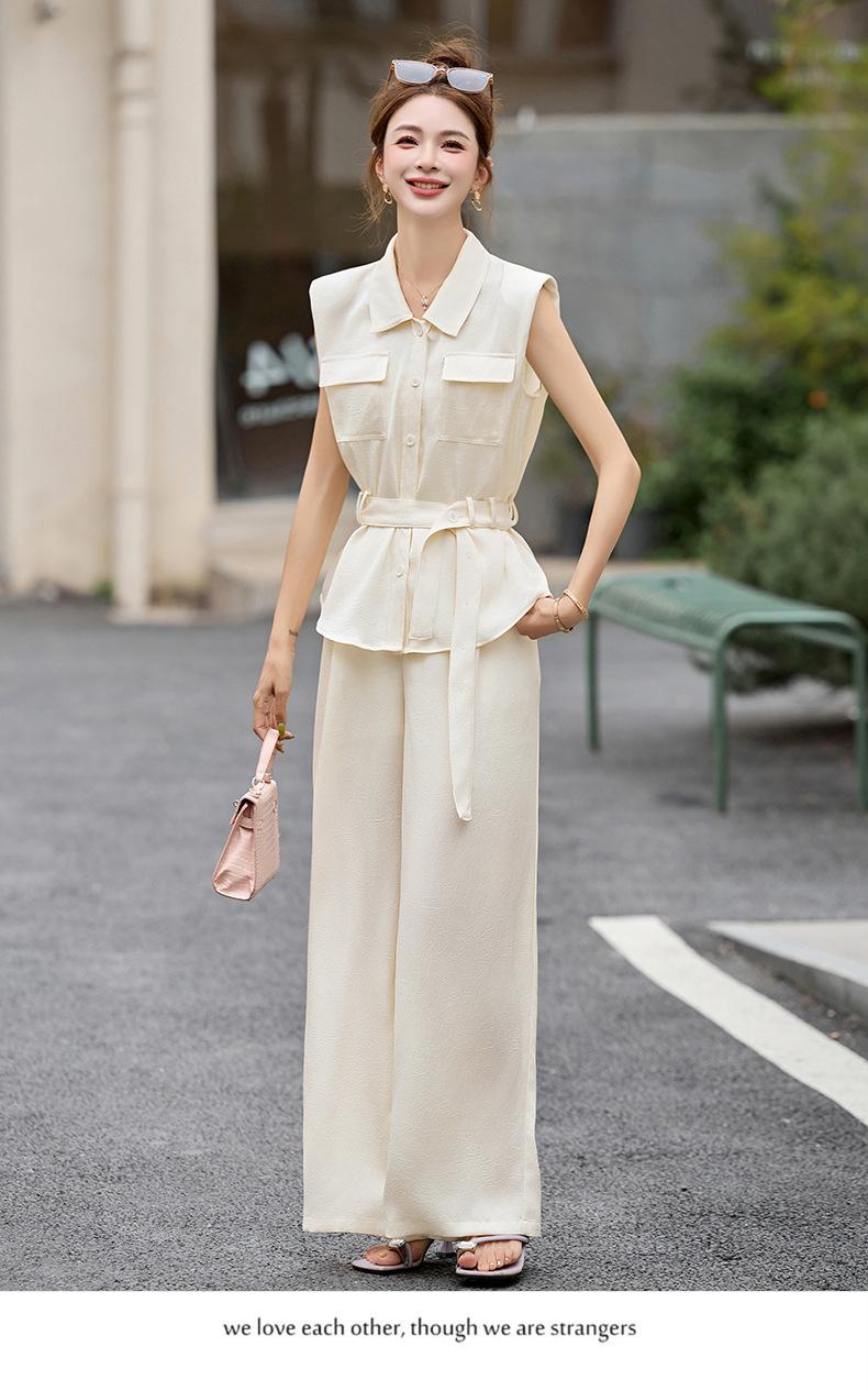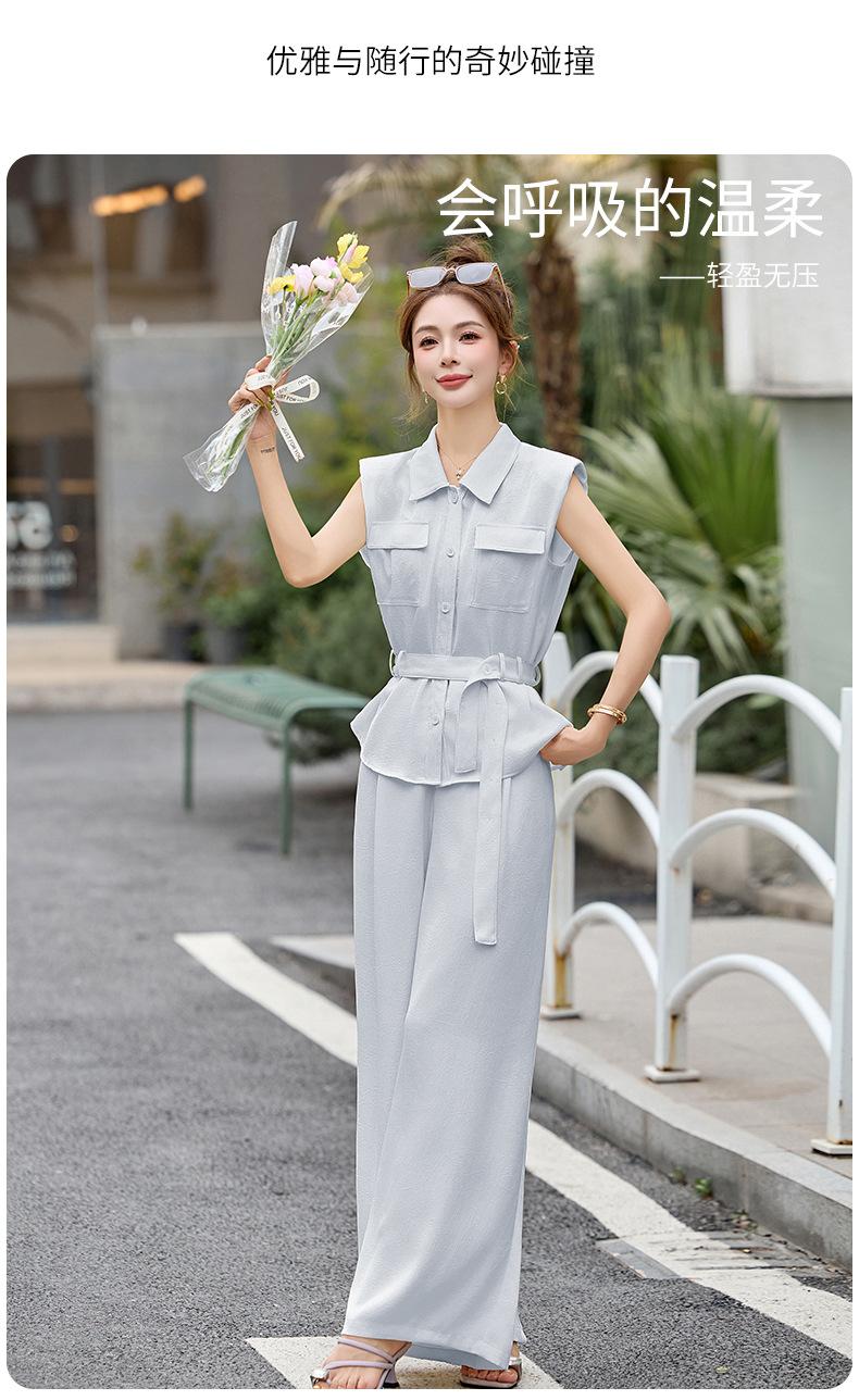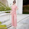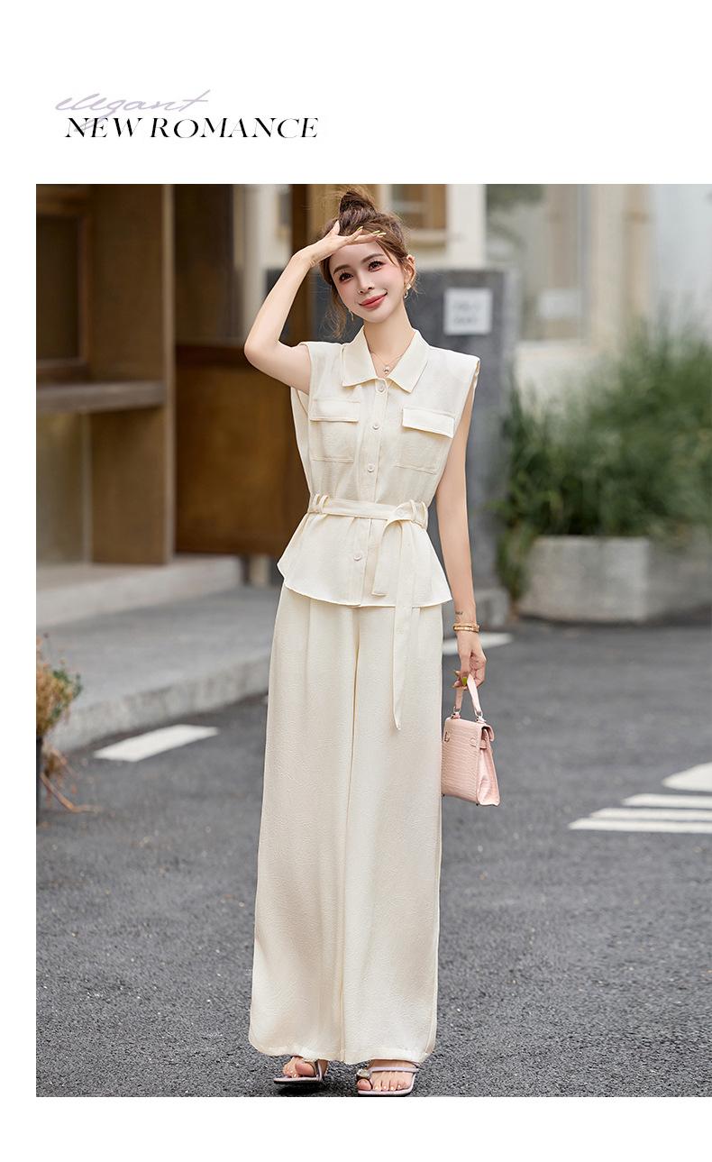 2025 Nuevo Conjunto de Dos Piezas de Verano Casual de Pierna Ancha Elegante y Dulce Top de Cuello Cuadrado y Pantalón Traje Moderno