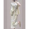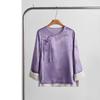 Nuevo Estilo Chino Estilo Nacional Acetato Morado Camiseta Base Top Falda Traje de Dos Piezas Primavera 2025 Nuevo Estilo para Mujer