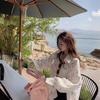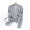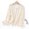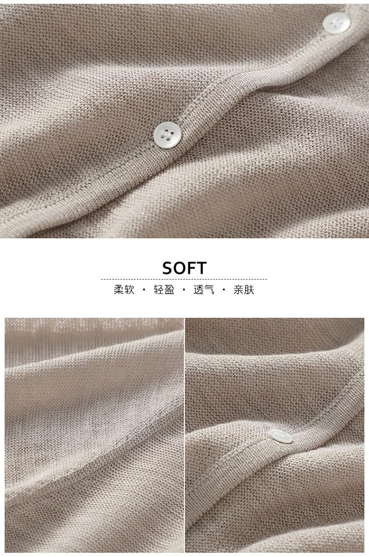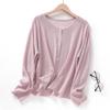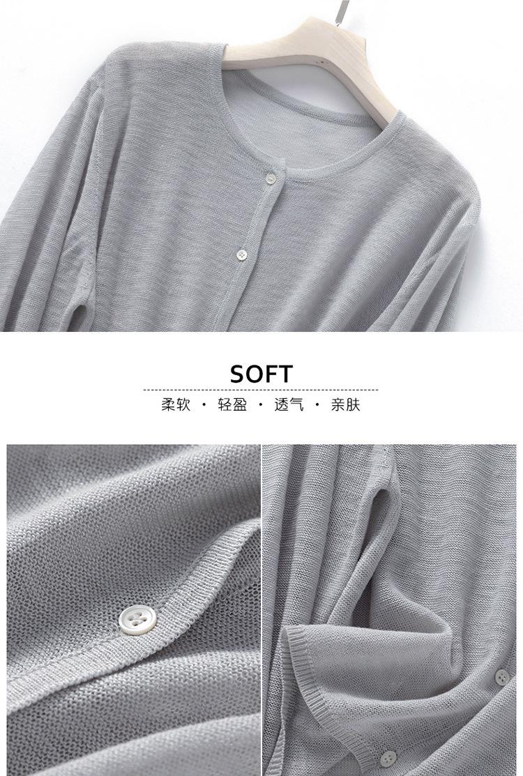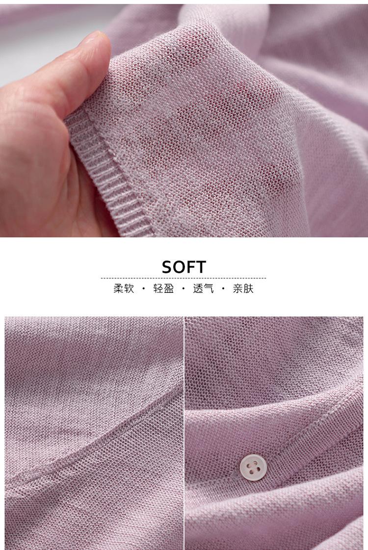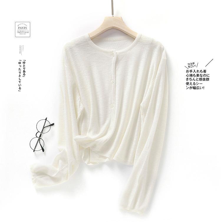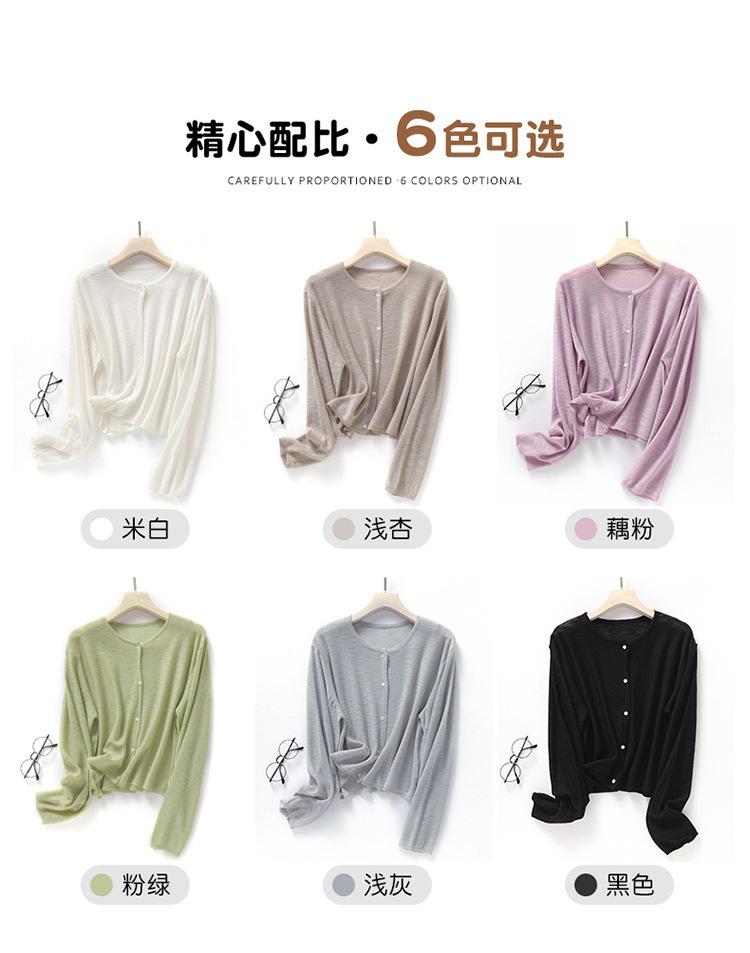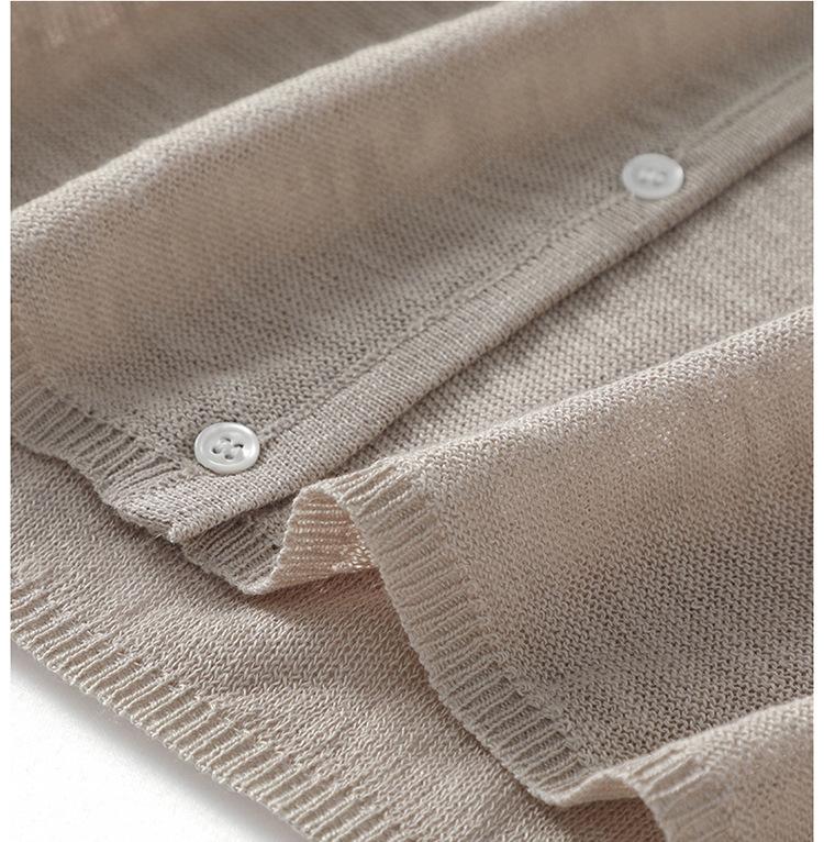 Cárdigan de Punto de Lino de Bambú Estilo Nuevo de Primavera y Verano Color Sólido Simple Cuello Redondo Protección Solar para Mujer Blusa para Aire Acondicionado Ropa Exterior de Manga Larga Trendy
