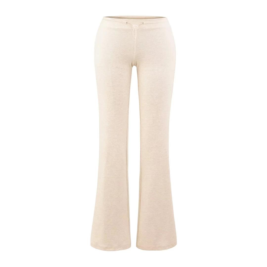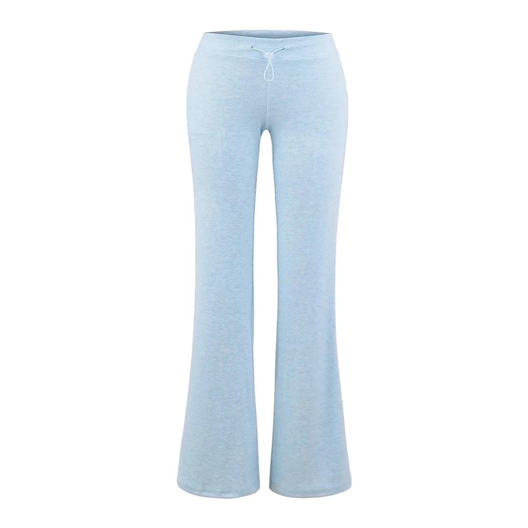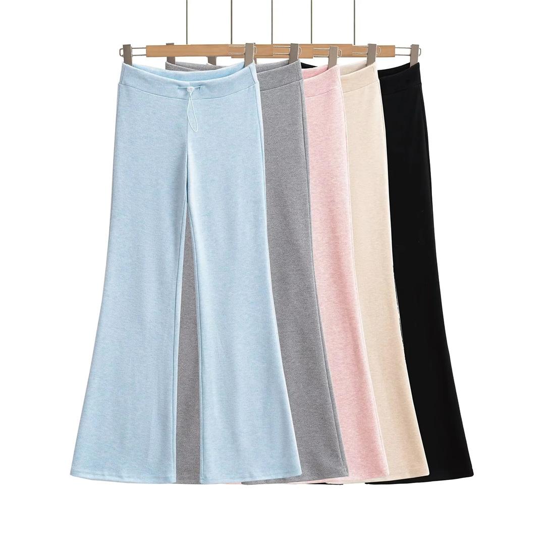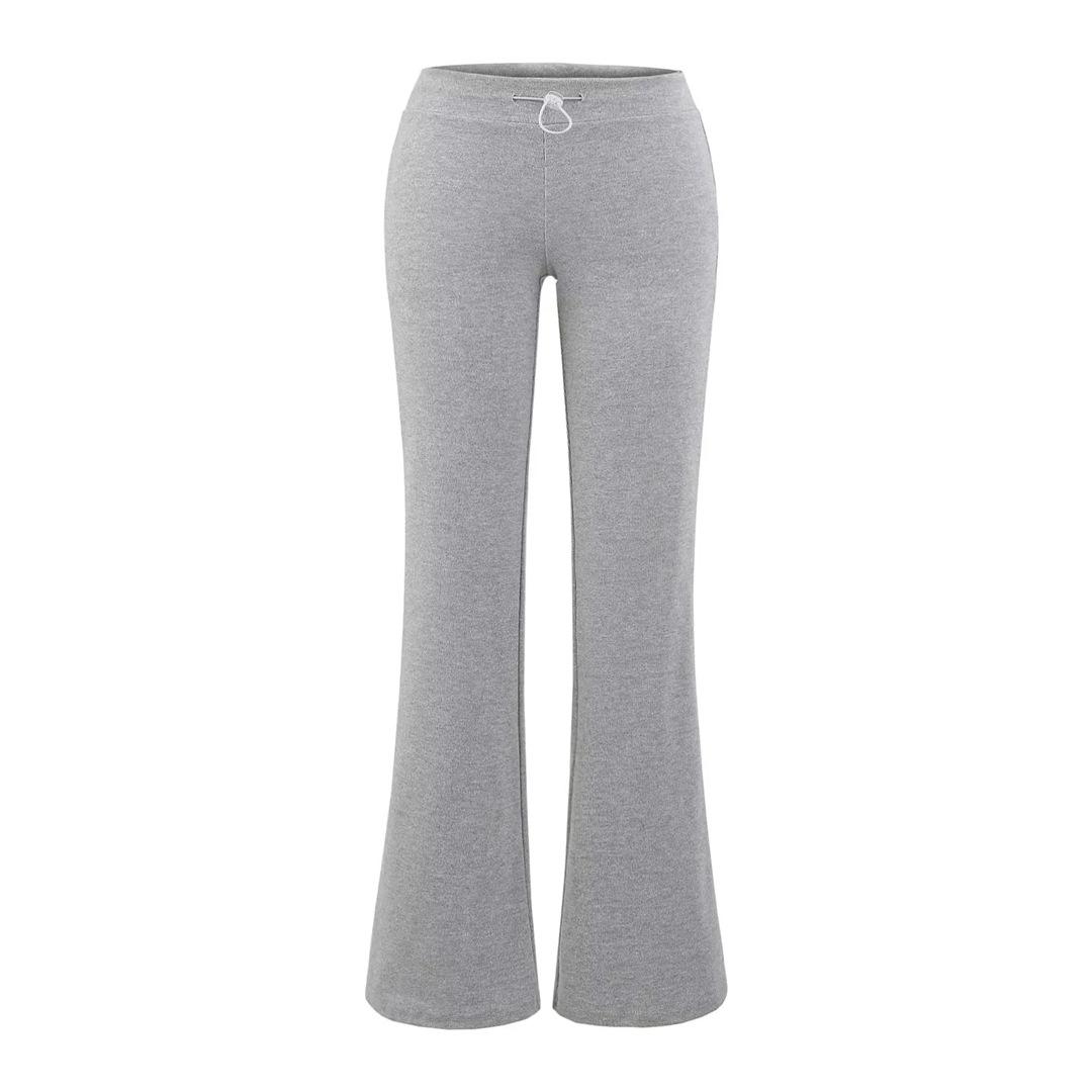 Pantalones de chándal microacampanados de tiro bajo con cordón estilo europeo y americano para mujer, retro, de color puro, corte ajustado, deportivos, casuales