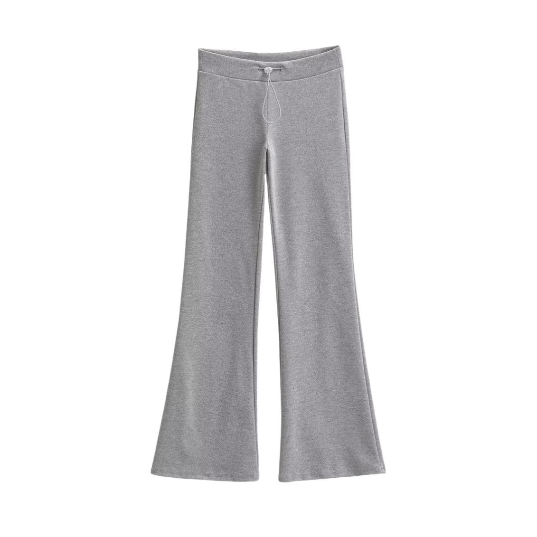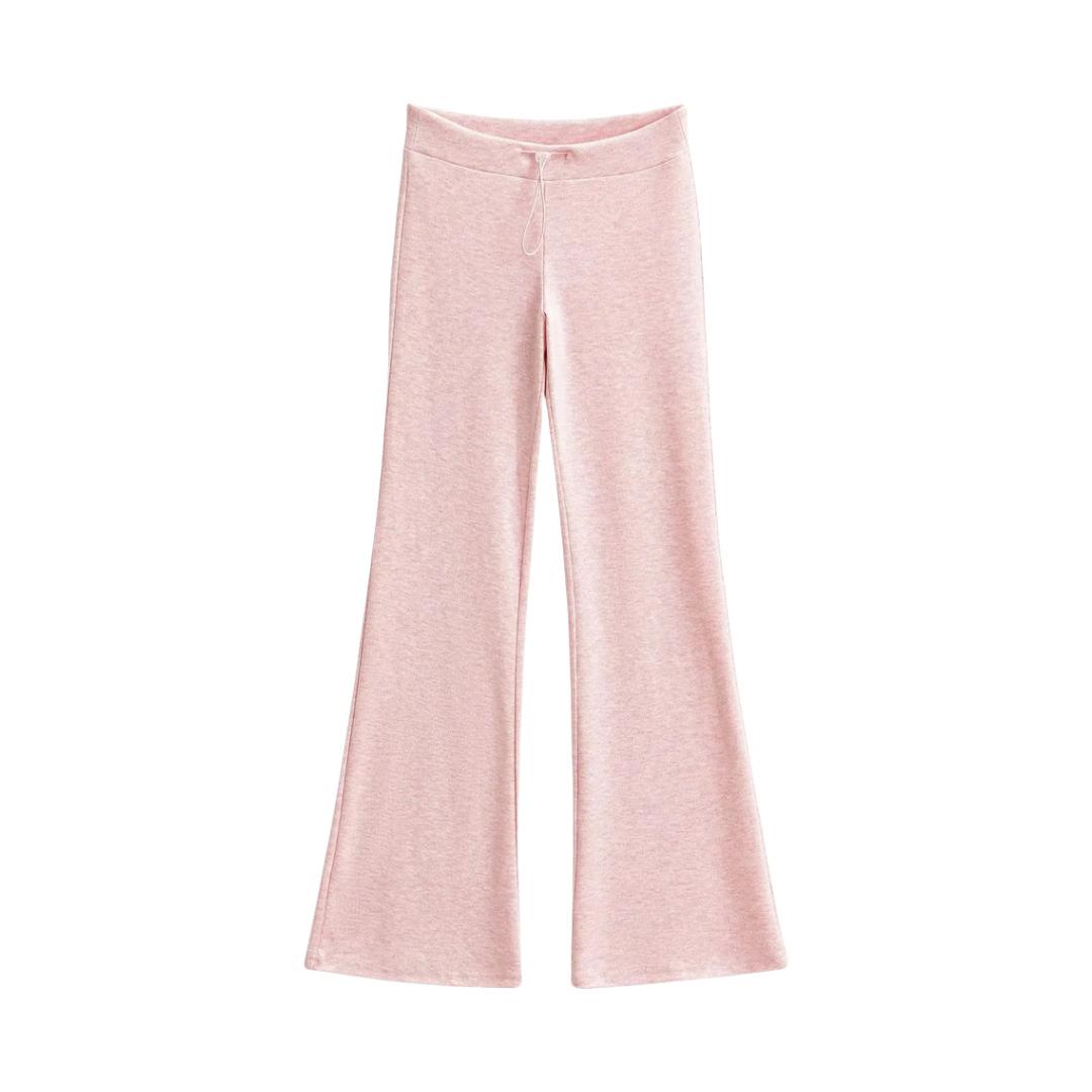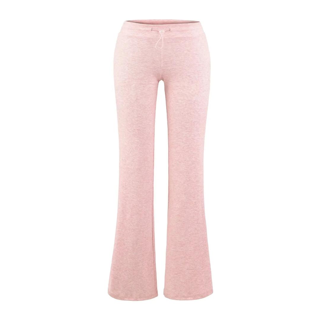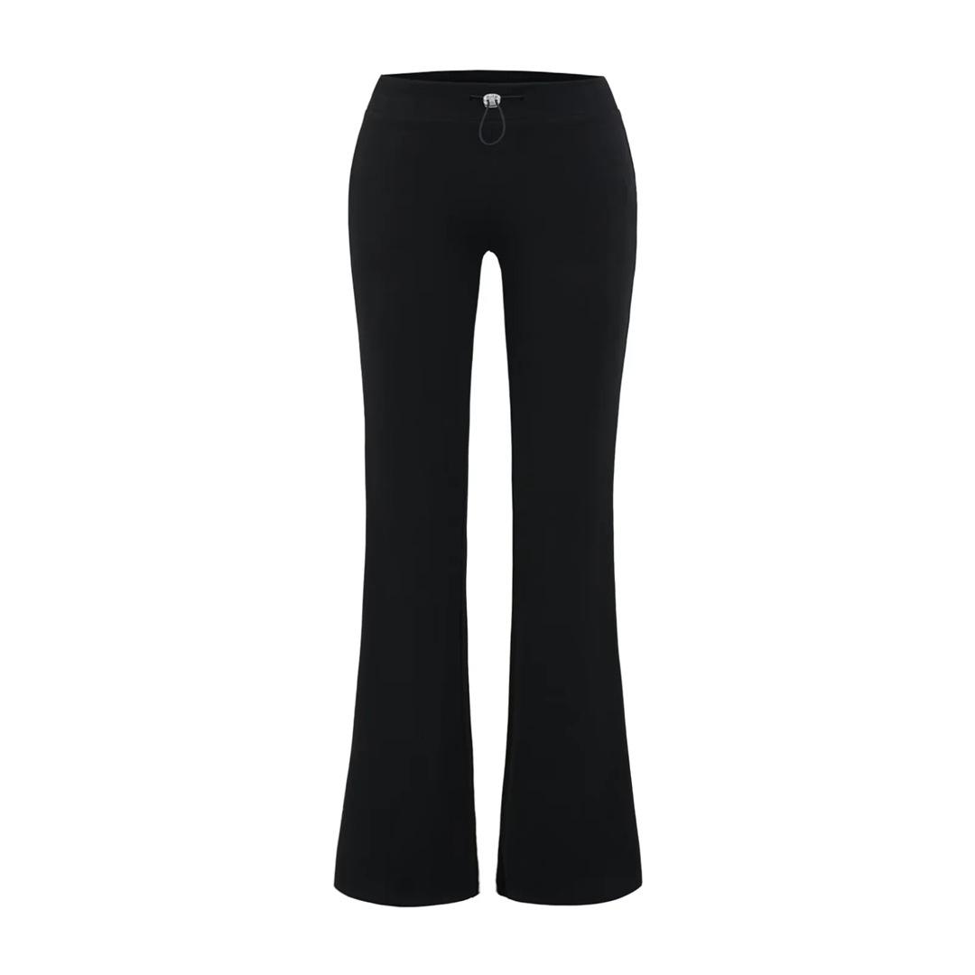 Pantalones de chándal microacampanados de tiro bajo con cordón estilo europeo y americano para mujer, retro, de color puro, corte ajustado, deportivos, casuales