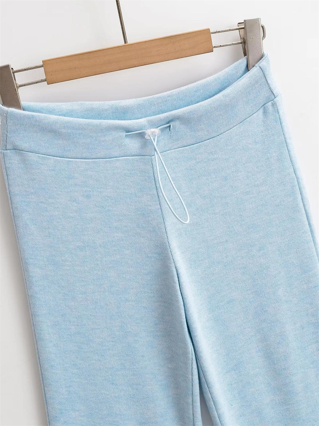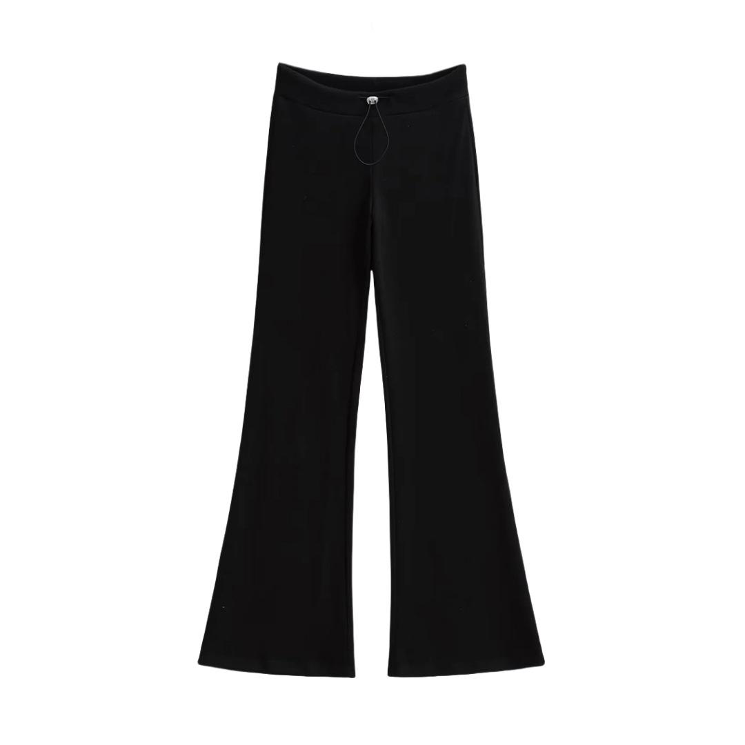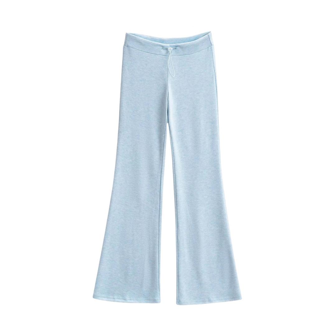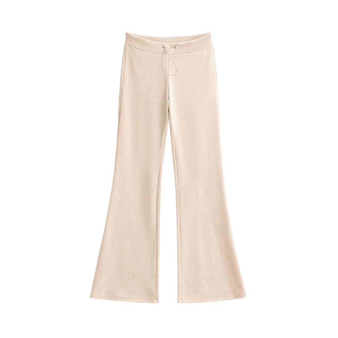 Pantalones de chándal microacampanados de tiro bajo con cordón estilo europeo y americano para mujer, retro, de color puro, corte ajustado, deportivos, casuales