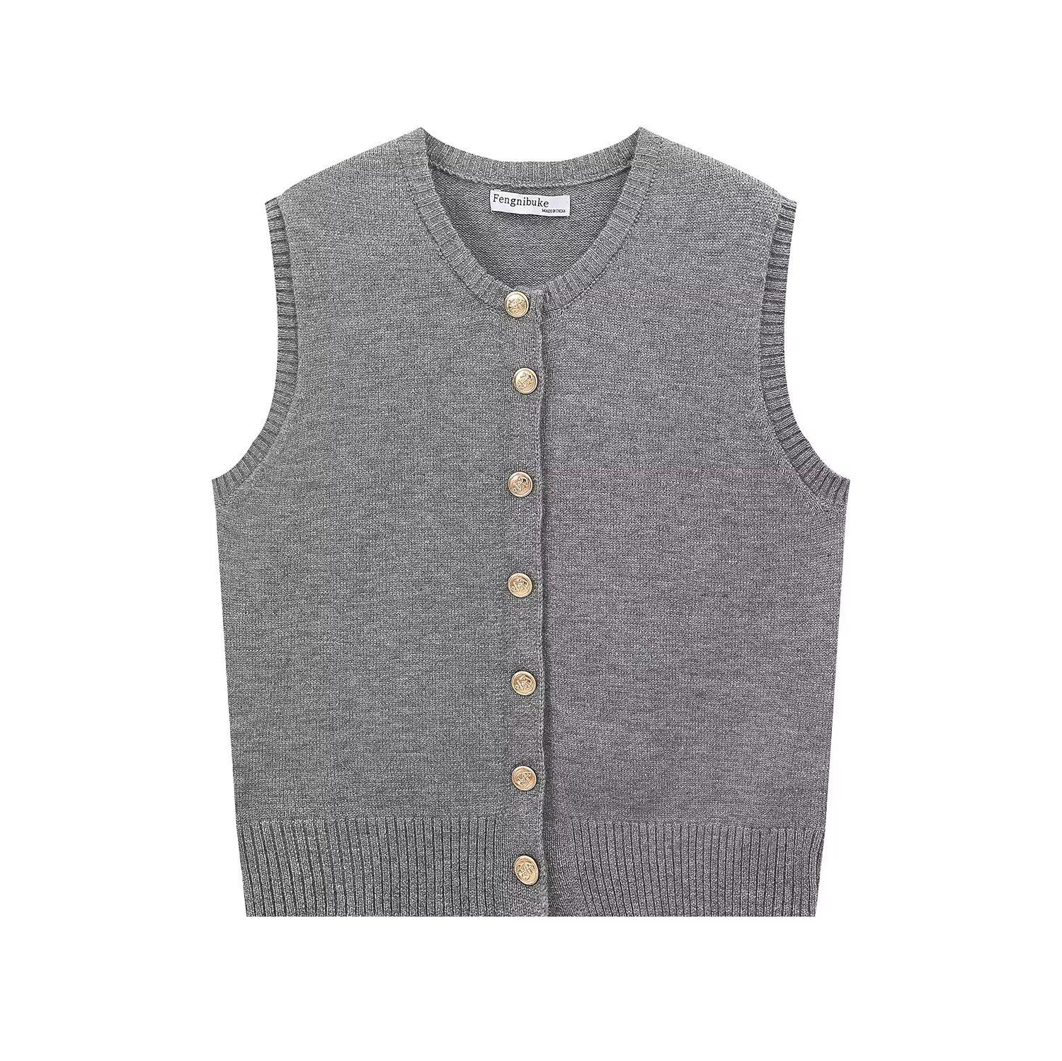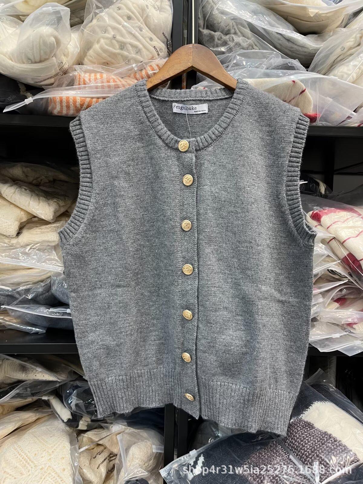 Amazon Europeo y Americano Venta al por Mayor Transfronteriza 2024 Otoño Nuevo Cárdigan Abotonado para Mujer Top Chaleco de Punto sin Mangas