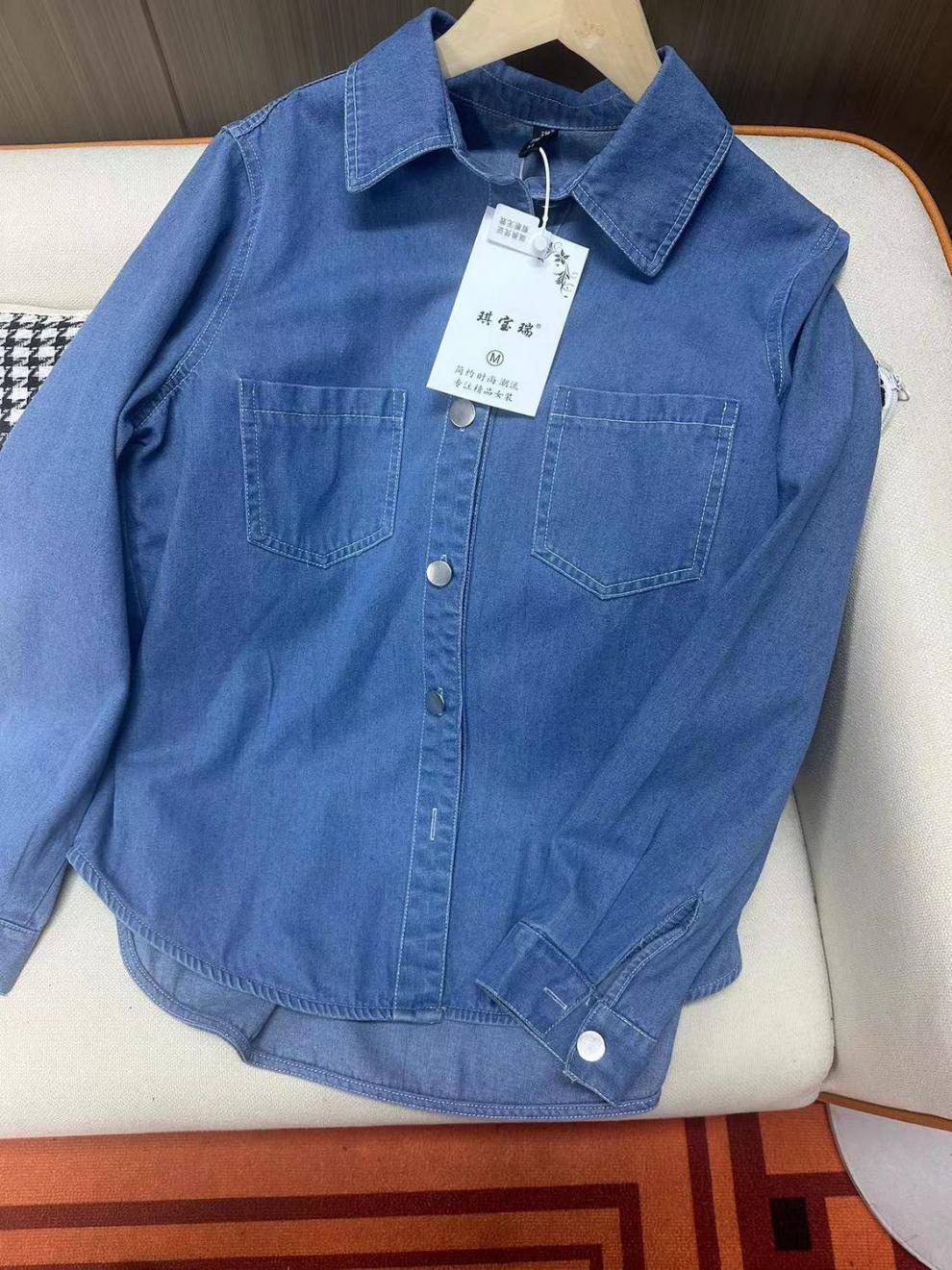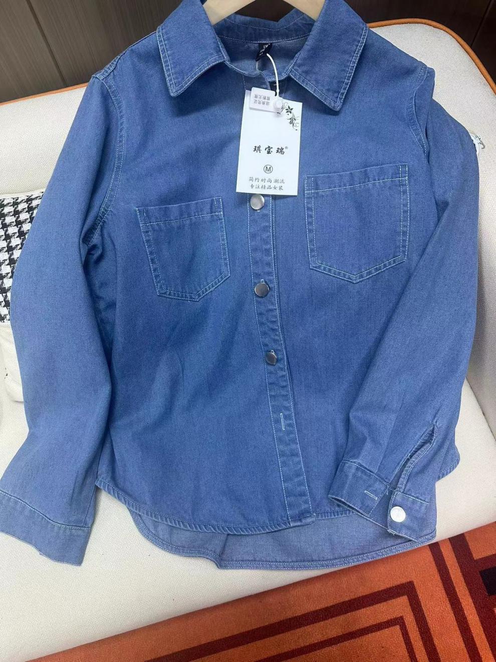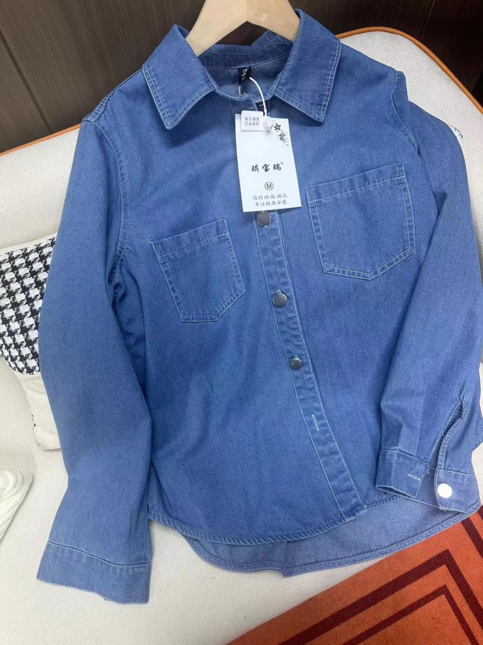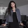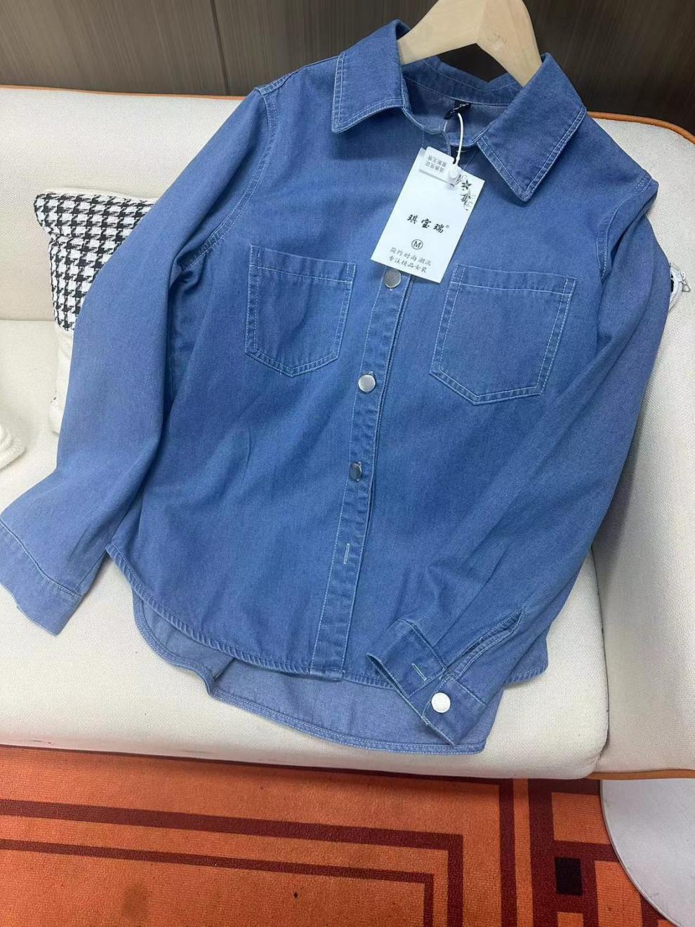 Camisa de mezclilla corta pequeña azul claro para hombro Mujer Primavera 2024 Estilo Hong Kong Nuevo Abrigo Top Estilo Hong Kong
