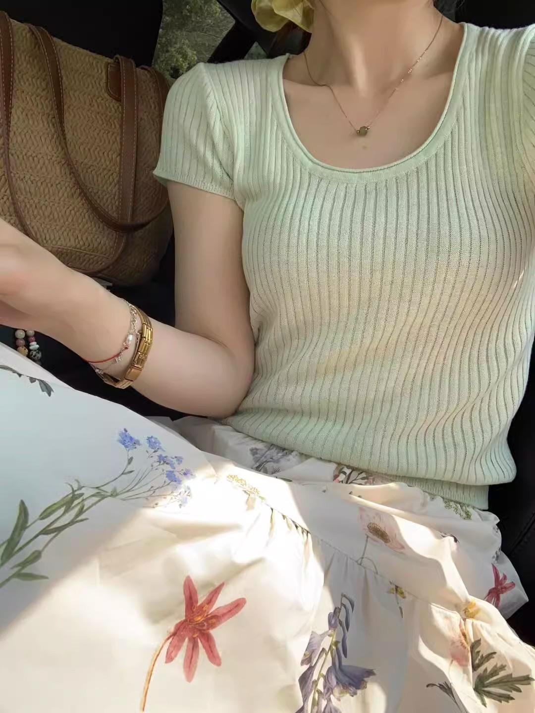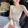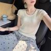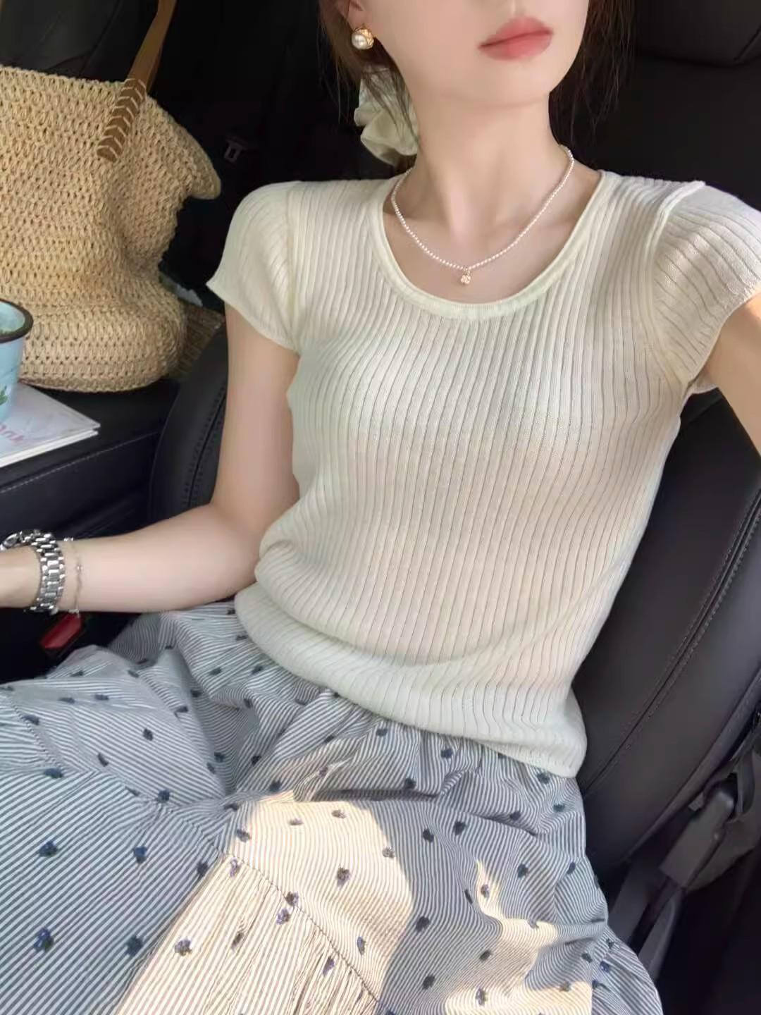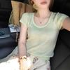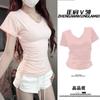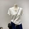 Playera de Manga Corta con Hombro Derecho Descubierto y Corte Ajustado Color Albaricoque para Mujer 2025 Nuevo Verano Ootd Wear Top Elegante de Nicho No Colisionante