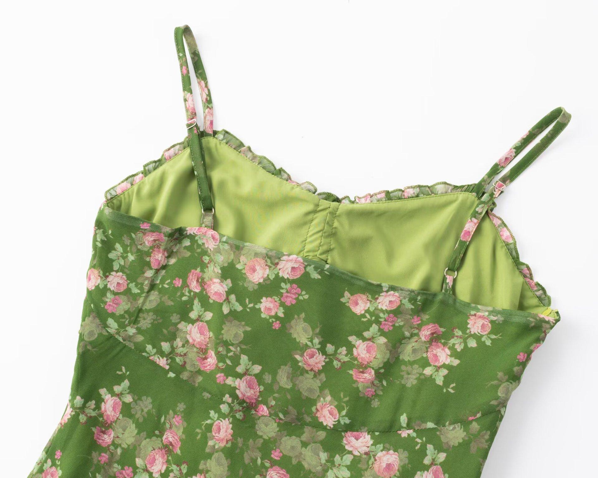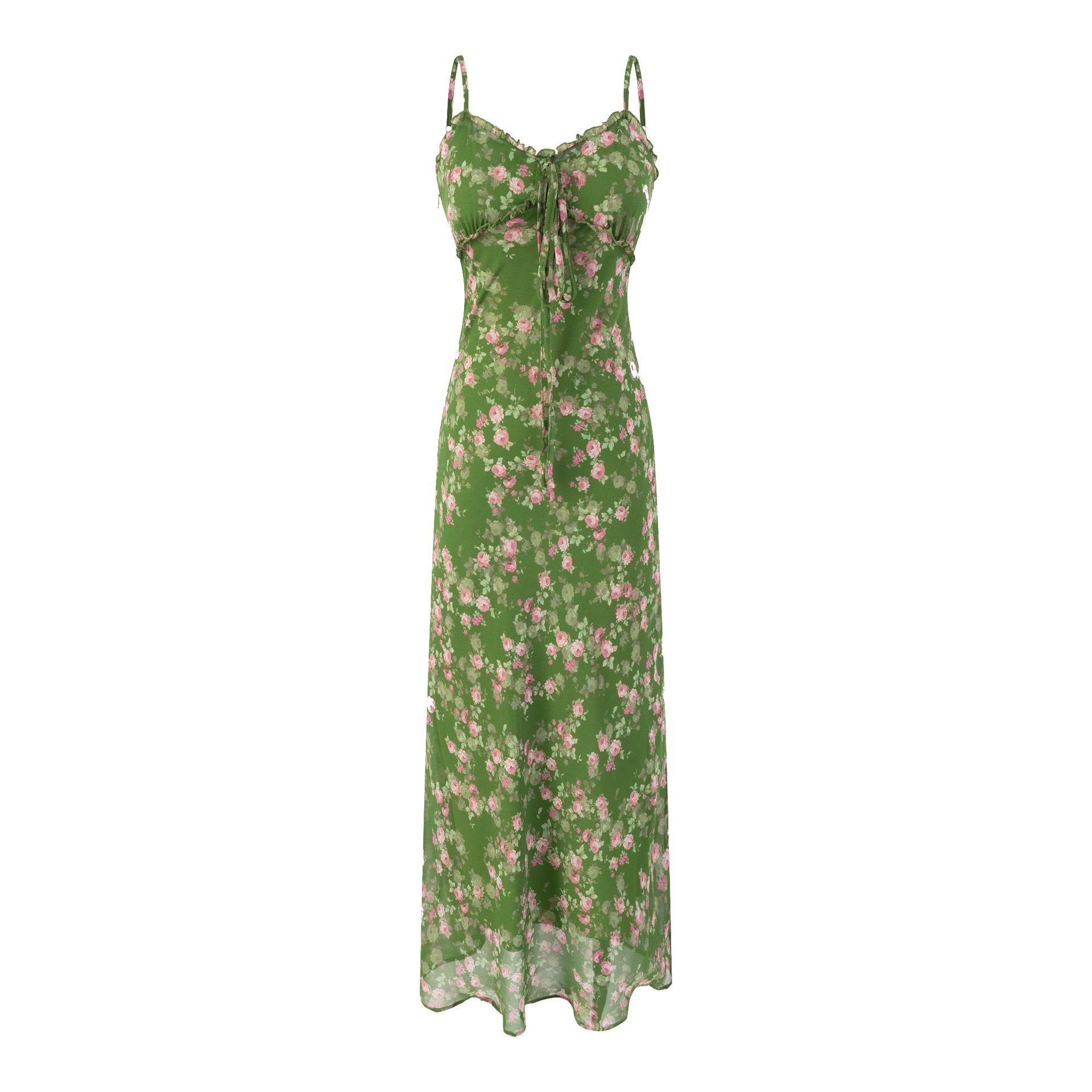 25152-Estilo Europeo y Americano Sexy Sexy Expuesto Mochila Falda de Cadera para Mujer 2025 Nuevo Vestido de Tirantes Floral de Encaje