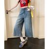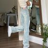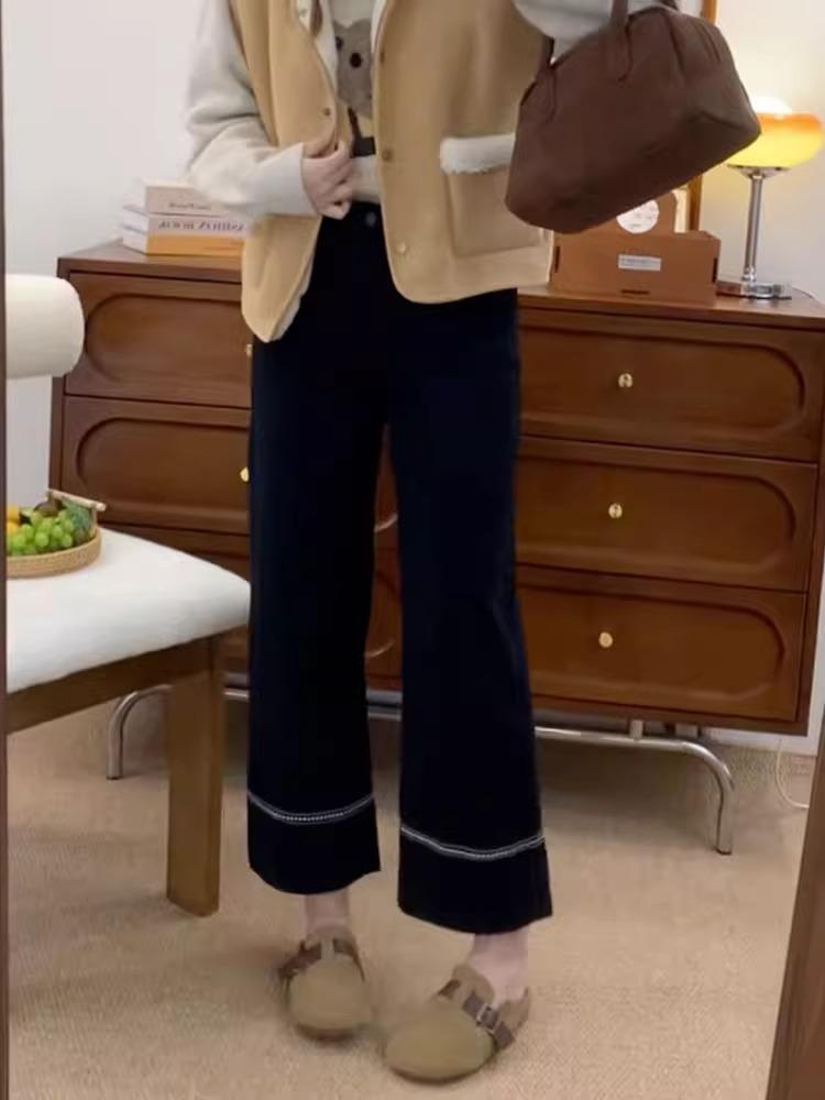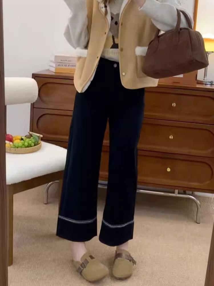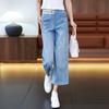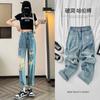 Jeans Patchwork Bordados para Mujer, Nuevo Estilo Primavera y Otoño, Talla Grande, Petite, Cintura Alta, Adelgazantes, Elásticos, Pantalones Rectos de Pierna Ancha