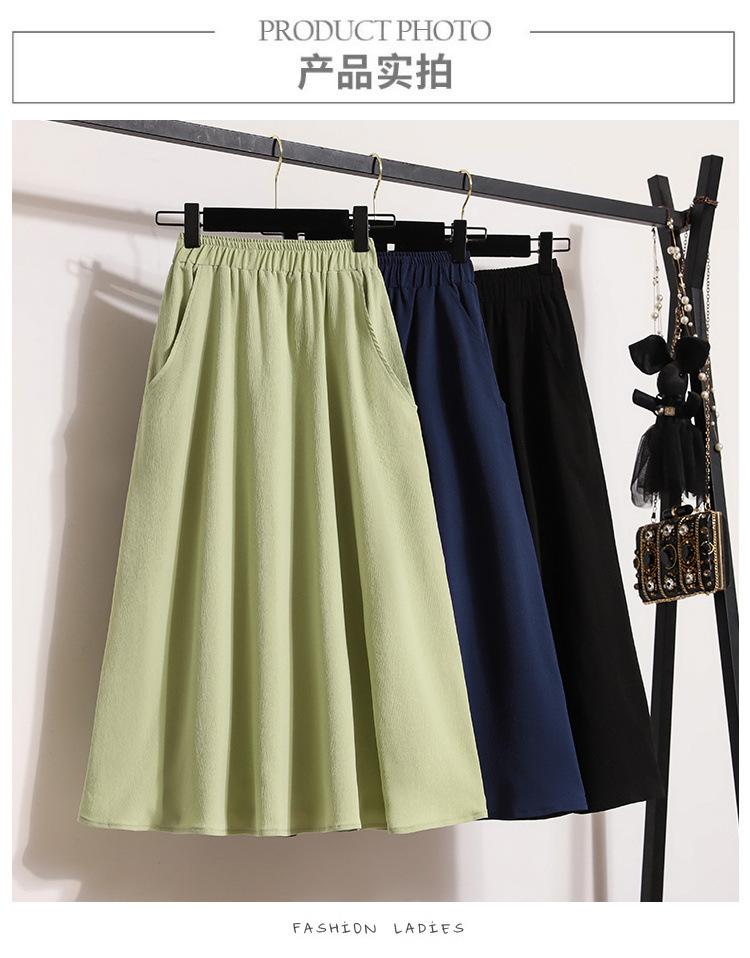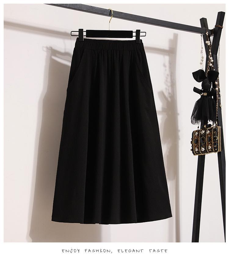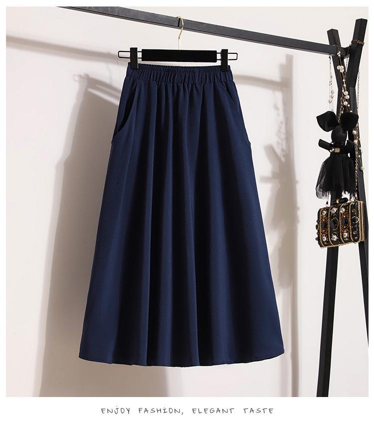 Dopamina bolsillo elástico falda de cintura alta largo midi vuelo amplio transpirable verano falda delgada color combina con todo