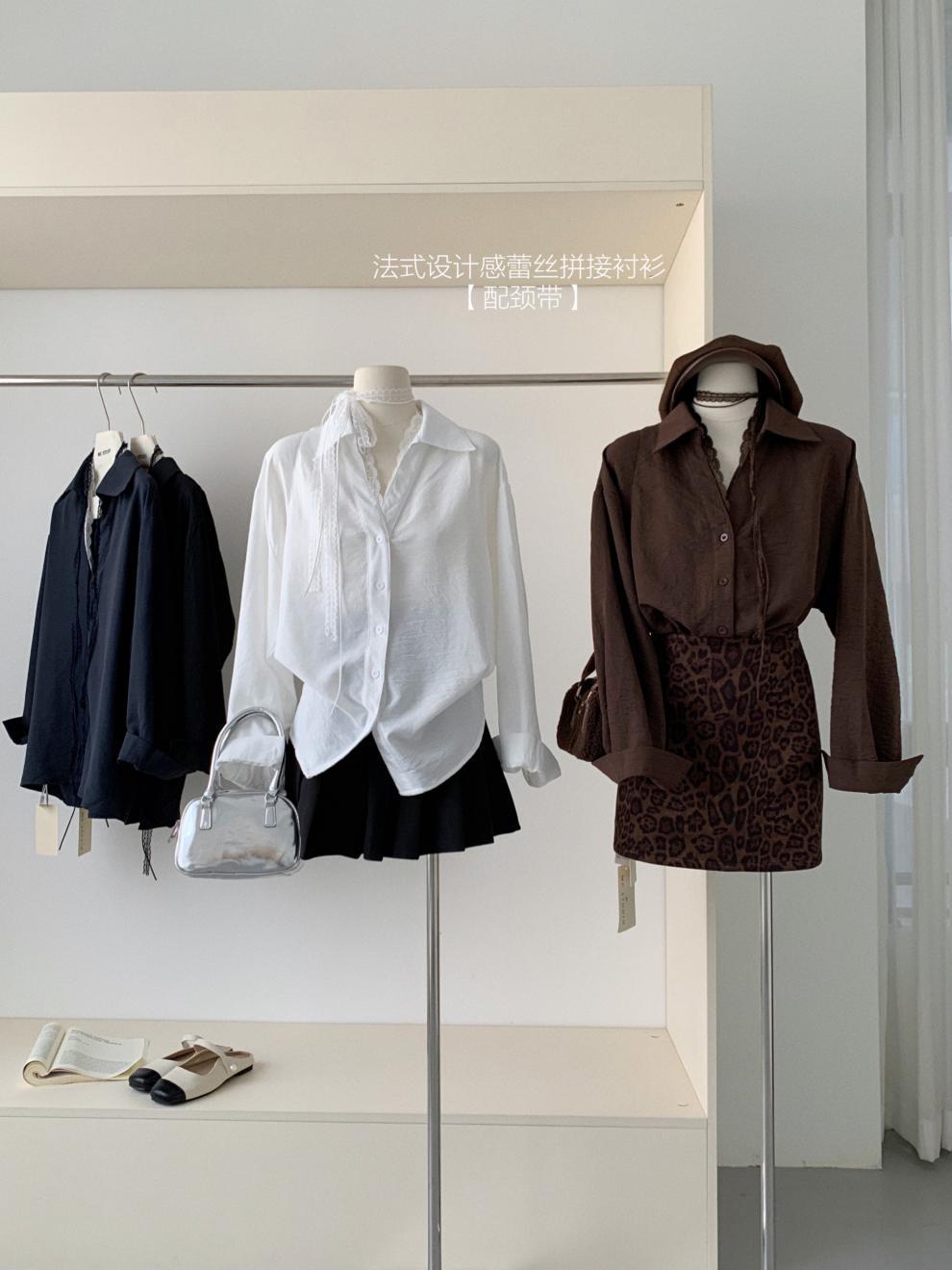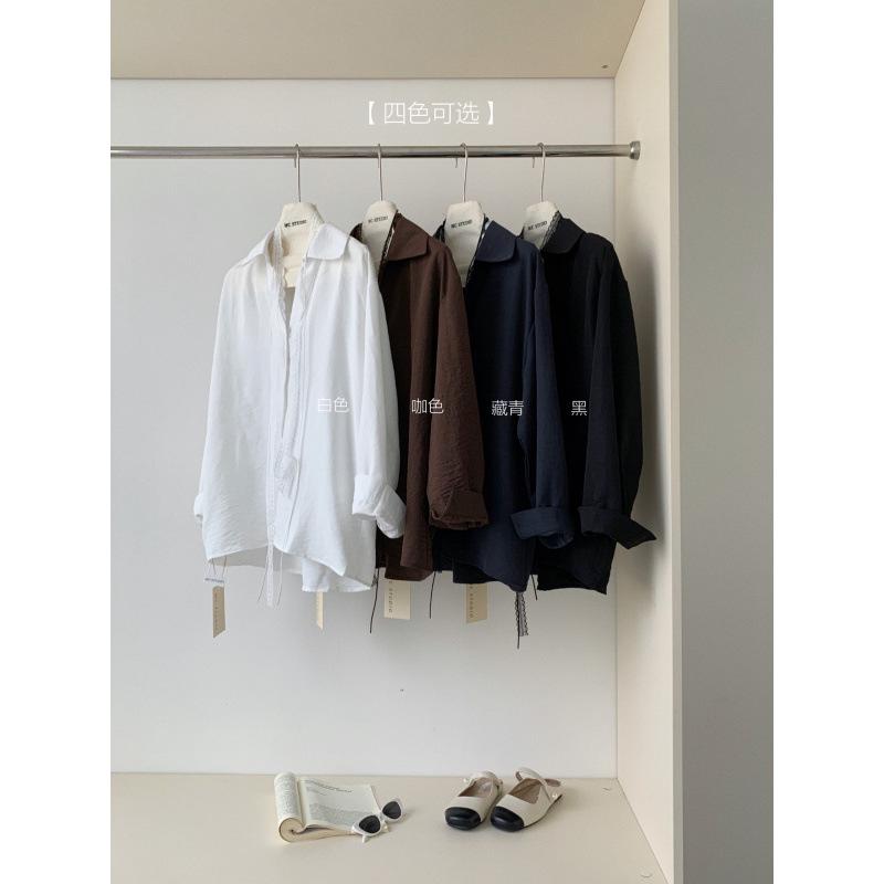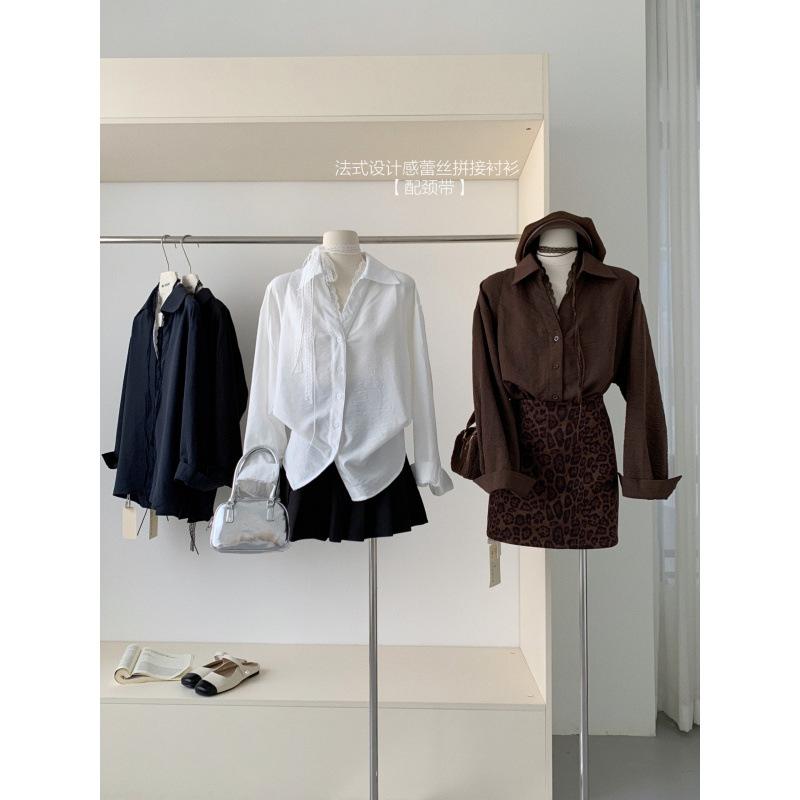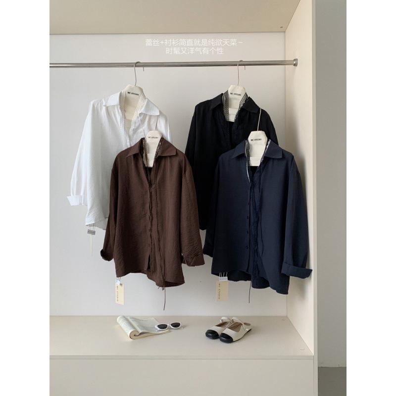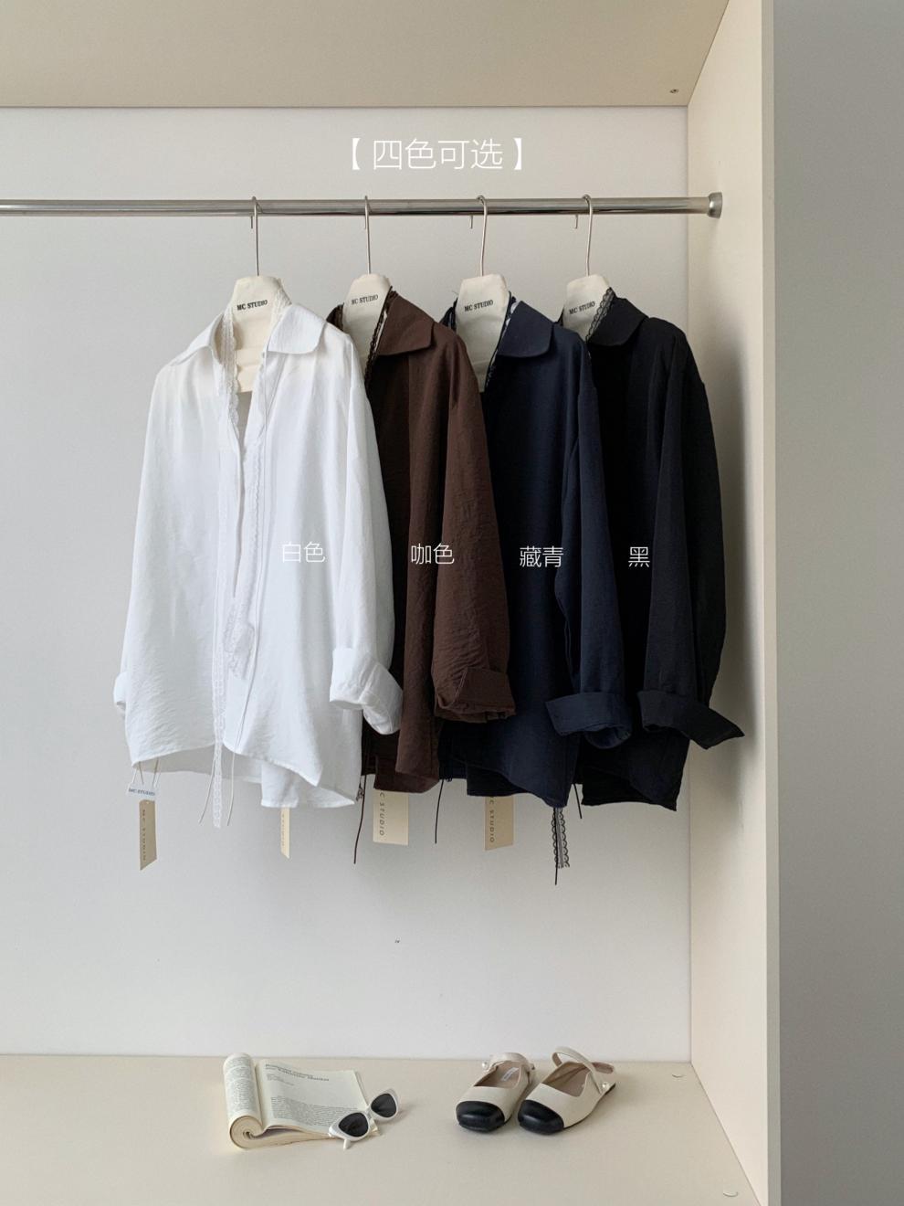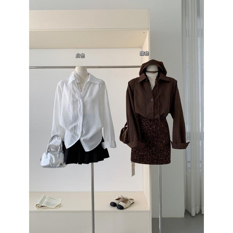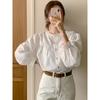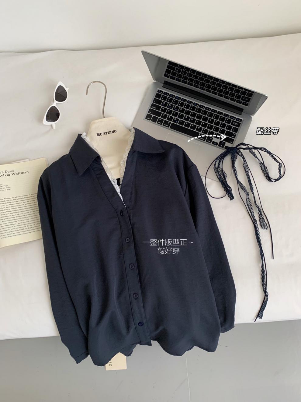 Estilo Coreano Sentido del Diseño Cuello Pequeño V Profundo con Tirante de Encaje Camisa de Manga Larga para Mujer Otoño Suelta Reductora de Edad Camisa Chic