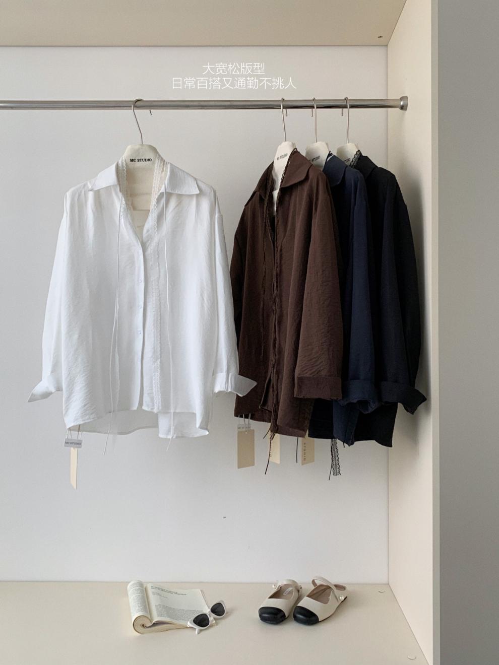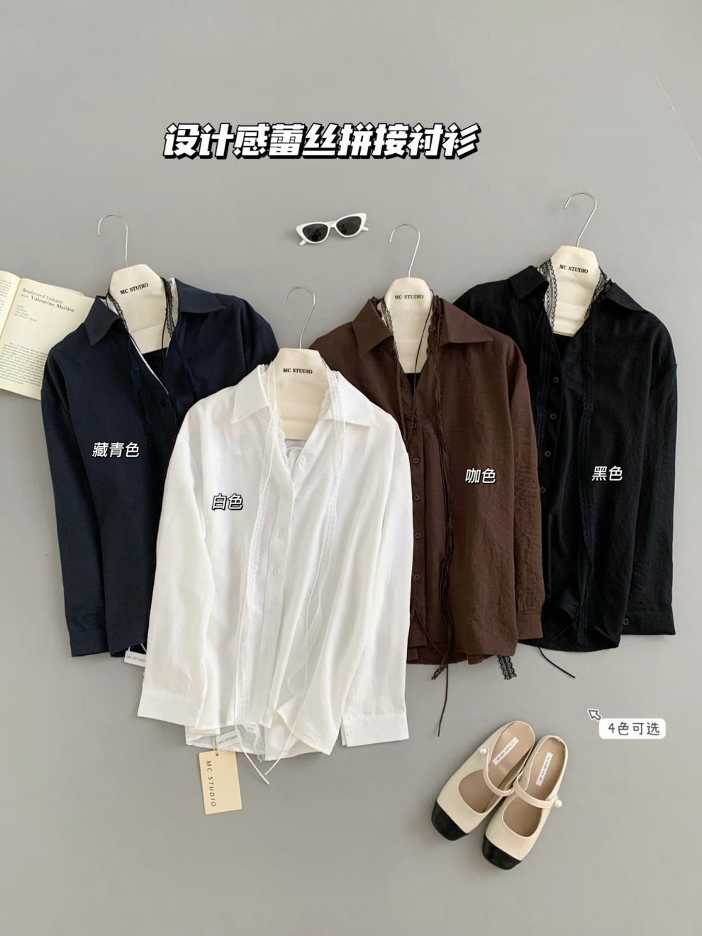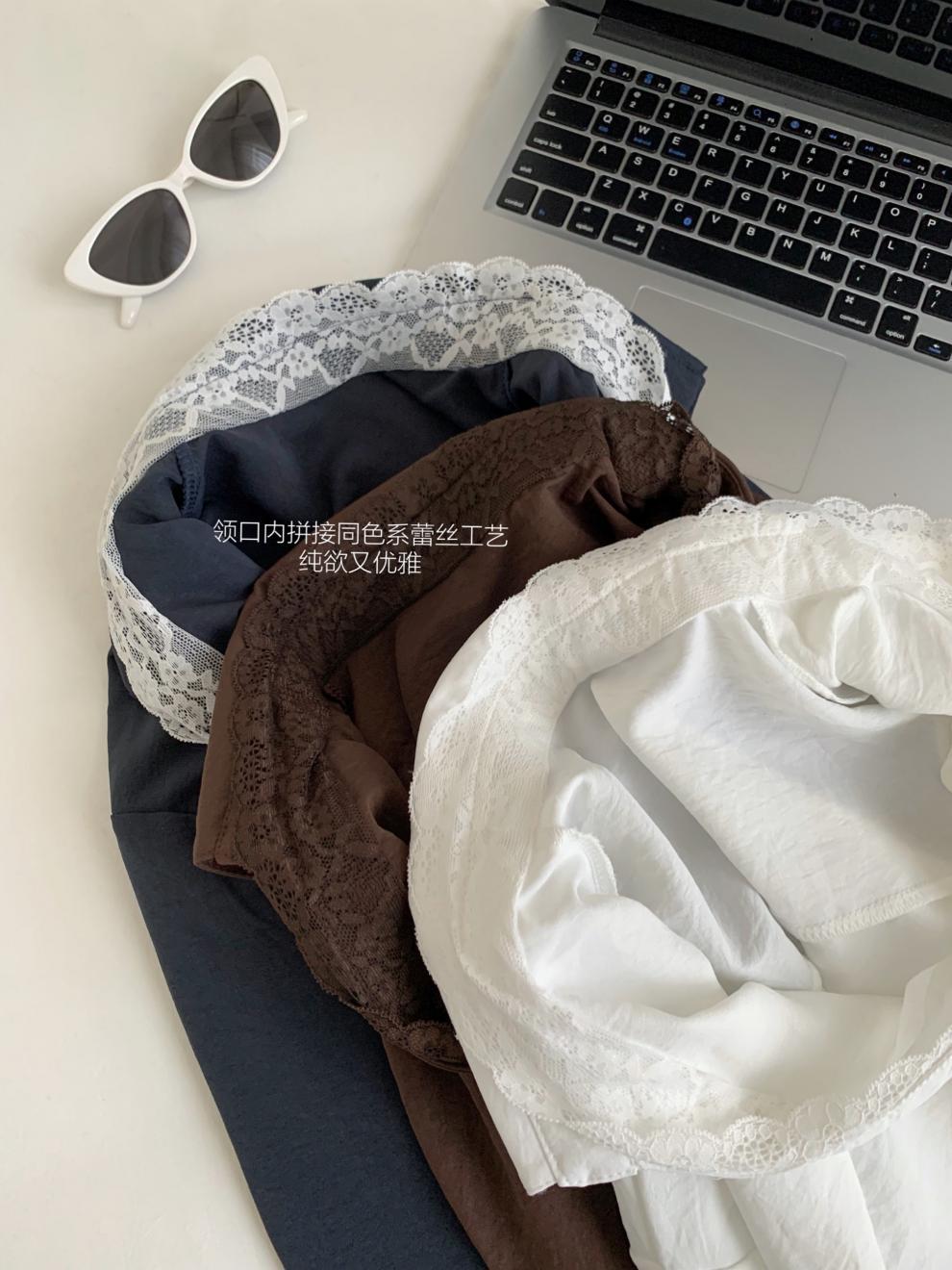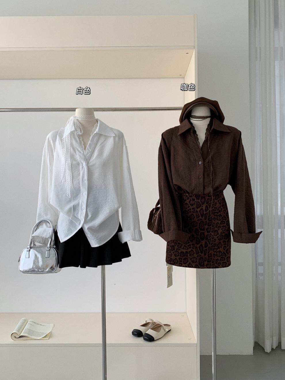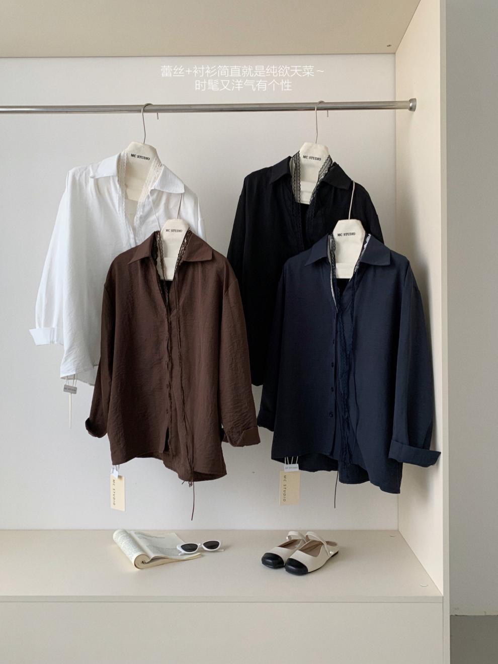 Estilo Coreano Sentido del Diseño Cuello Pequeño V Profundo con Tirante de Encaje Camisa de Manga Larga para Mujer Otoño Suelta Reductora de Edad Camisa Chic