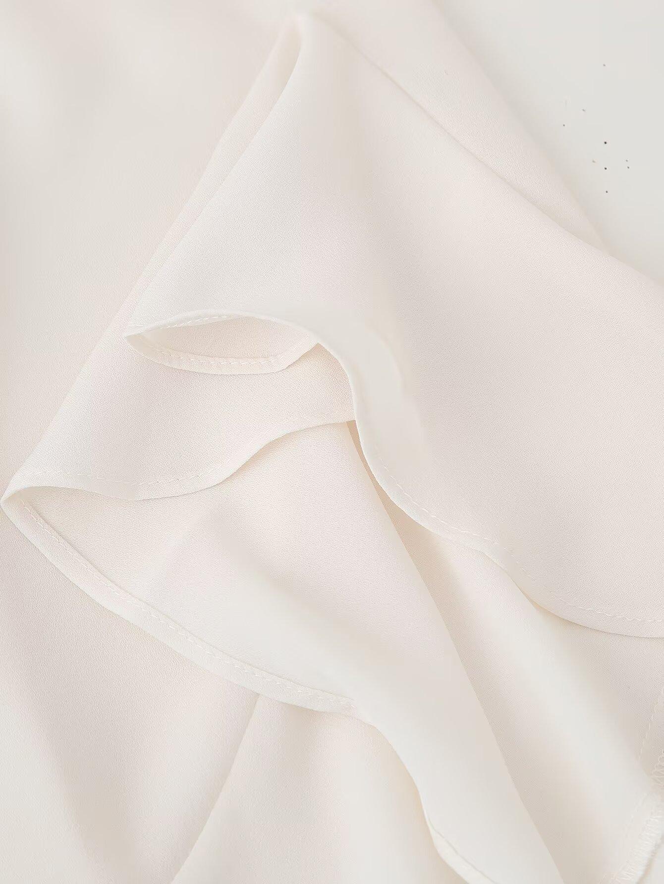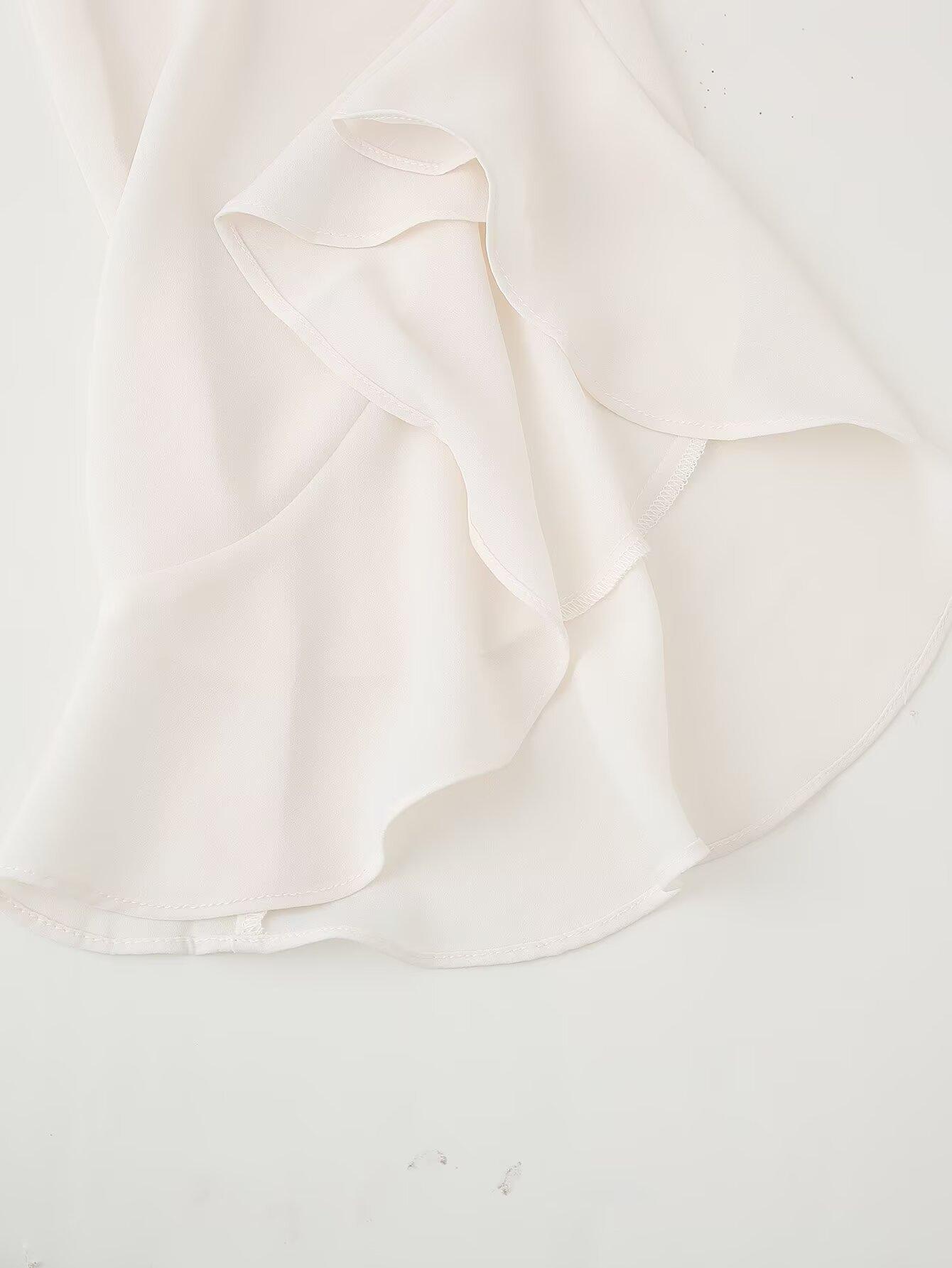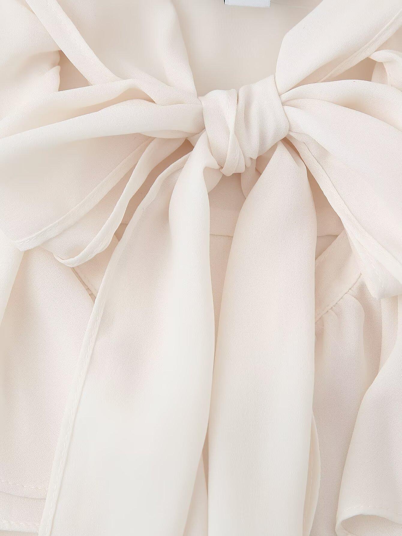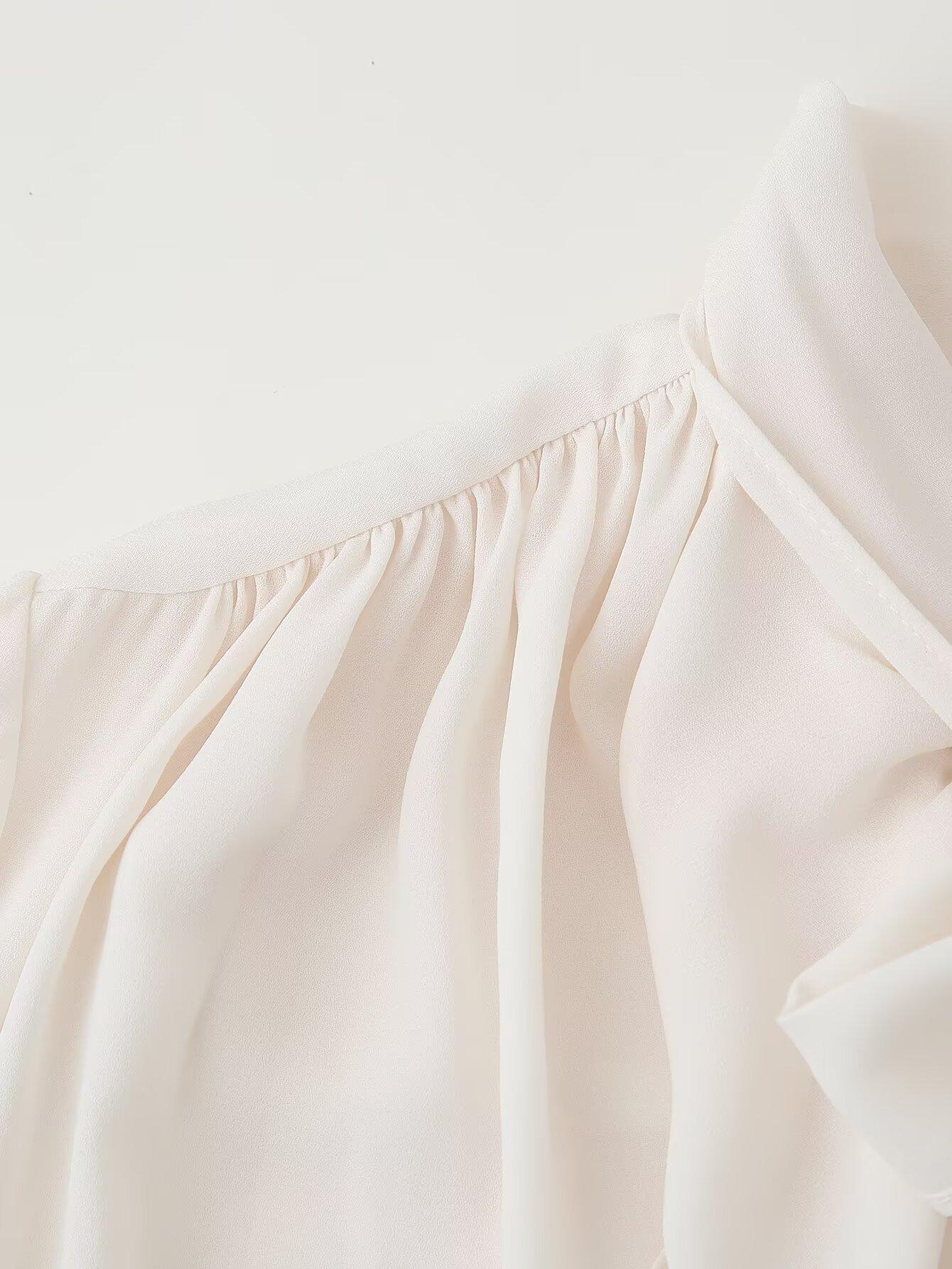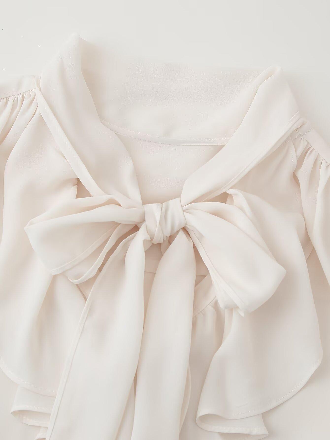 Exportación Transfronteriza Ropa de Mujer 2025 Verano Moda Europea y Americana Camisa Holgada con Cuello de Volantes y Lazo D16827