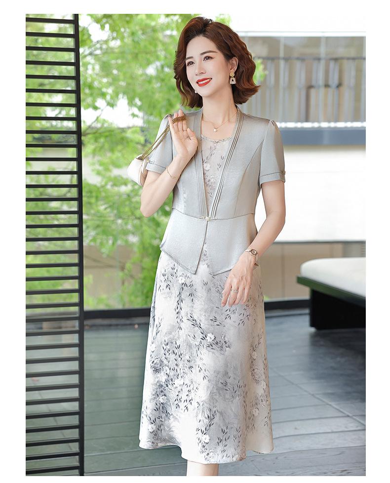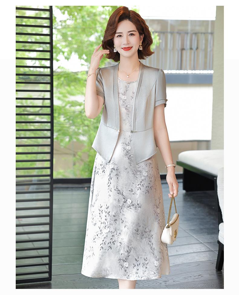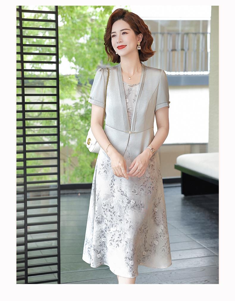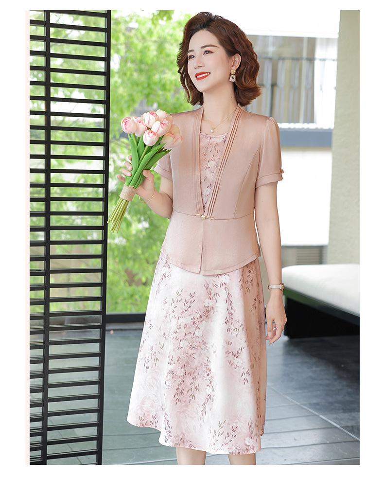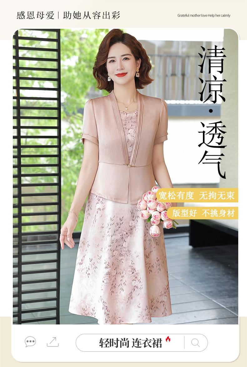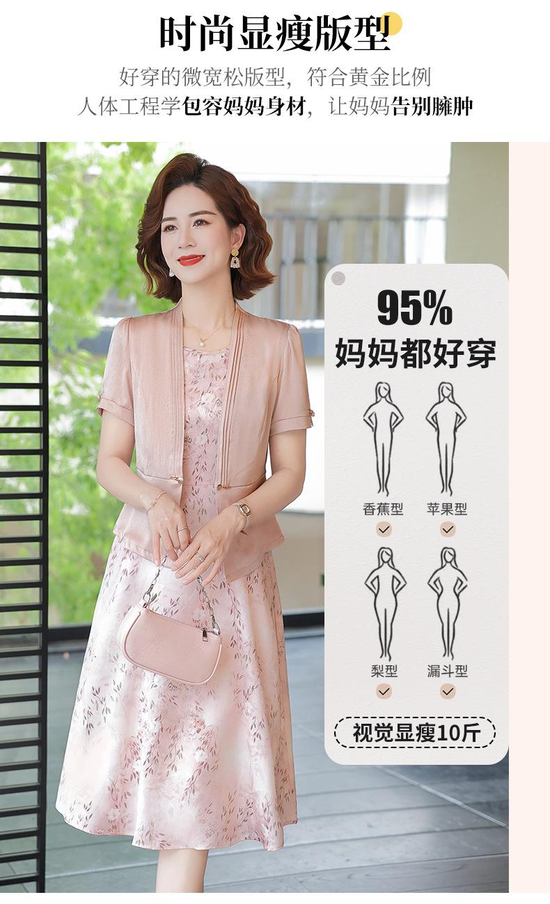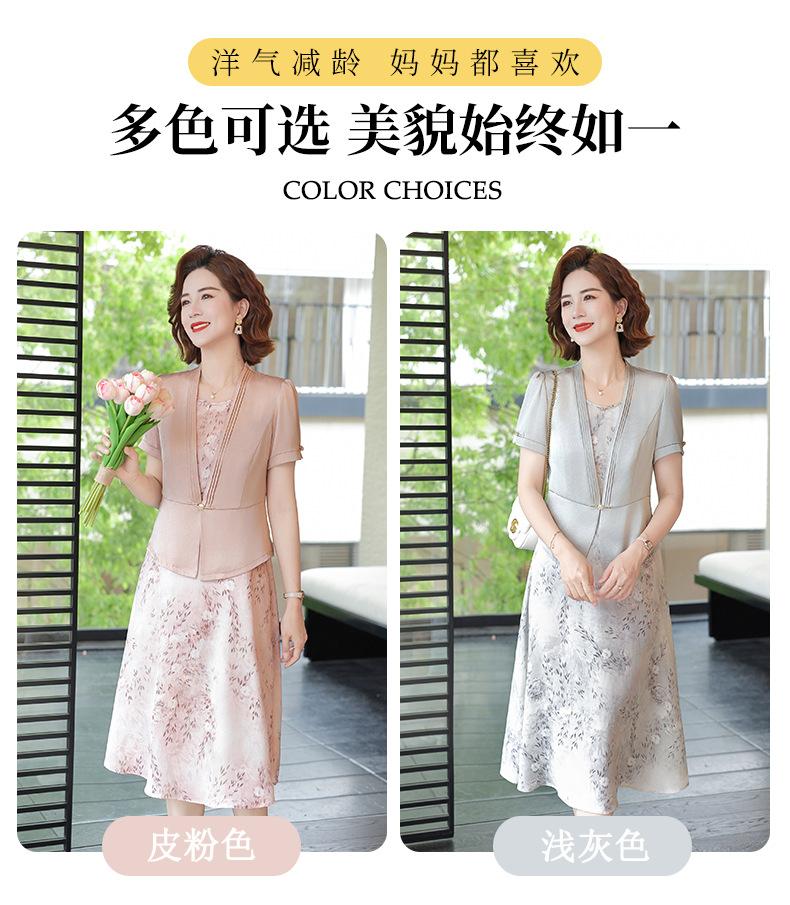 Venta al por Mayor Física Mamá Verano Traje de Vestido de Manga Corta Mujeres de Mediana Edad de 50 Años Elegante con Clase Traje Vestido