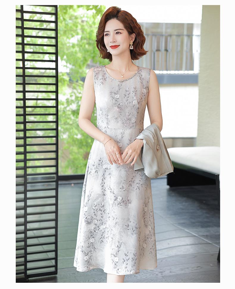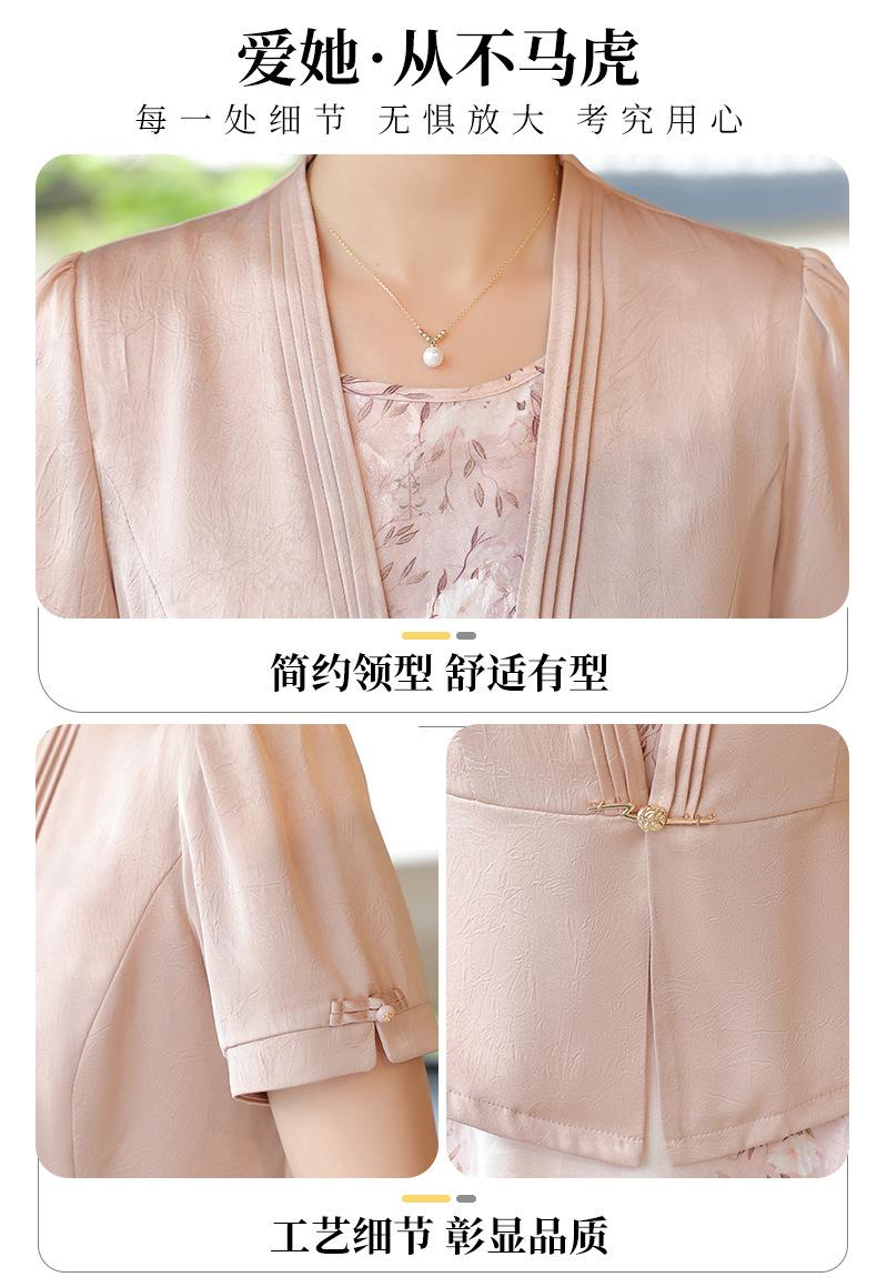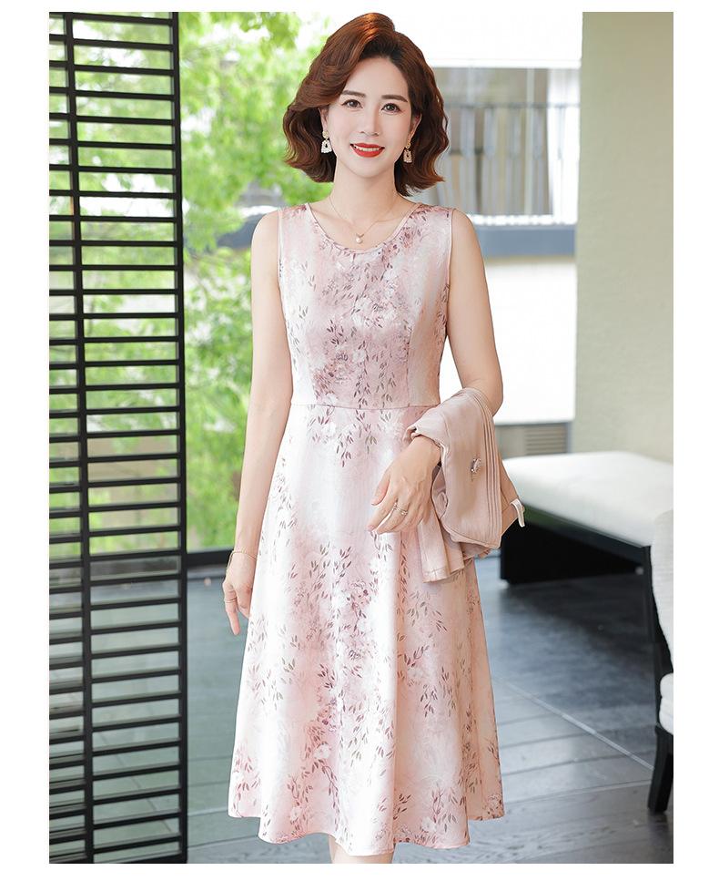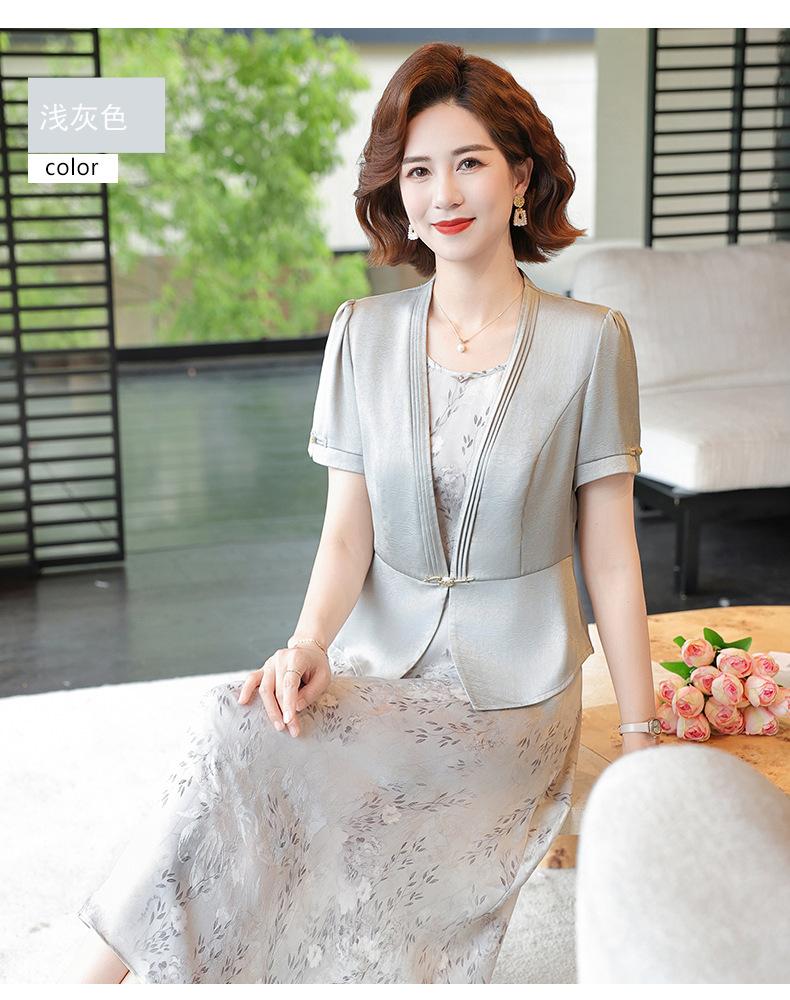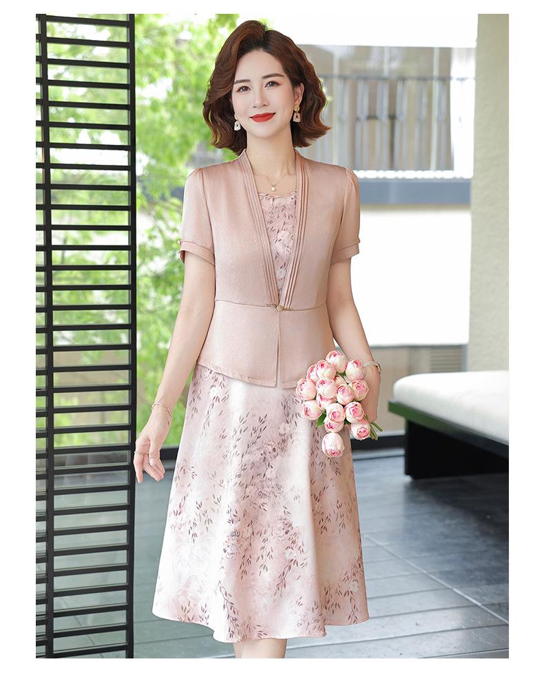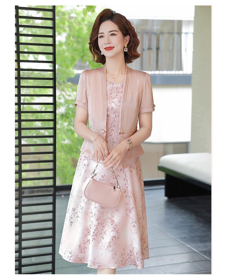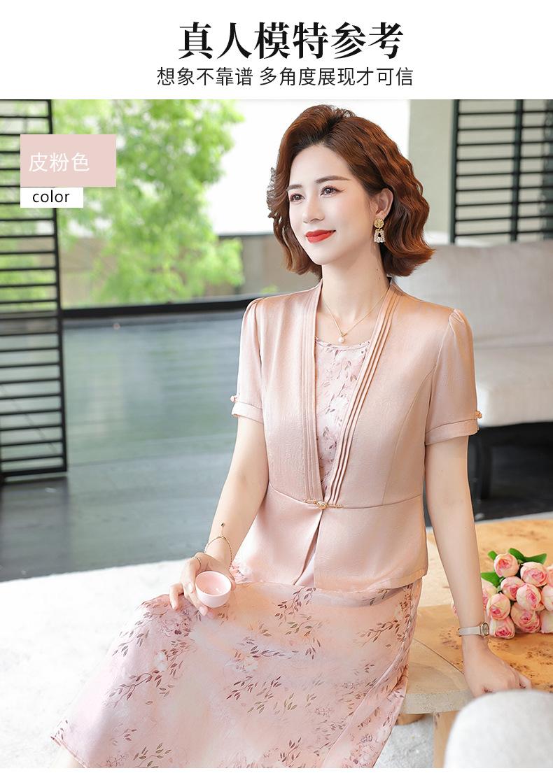 Venta al por Mayor Física Mamá Verano Traje de Vestido de Manga Corta Mujeres de Mediana Edad de 50 Años Elegante con Clase Traje Vestido