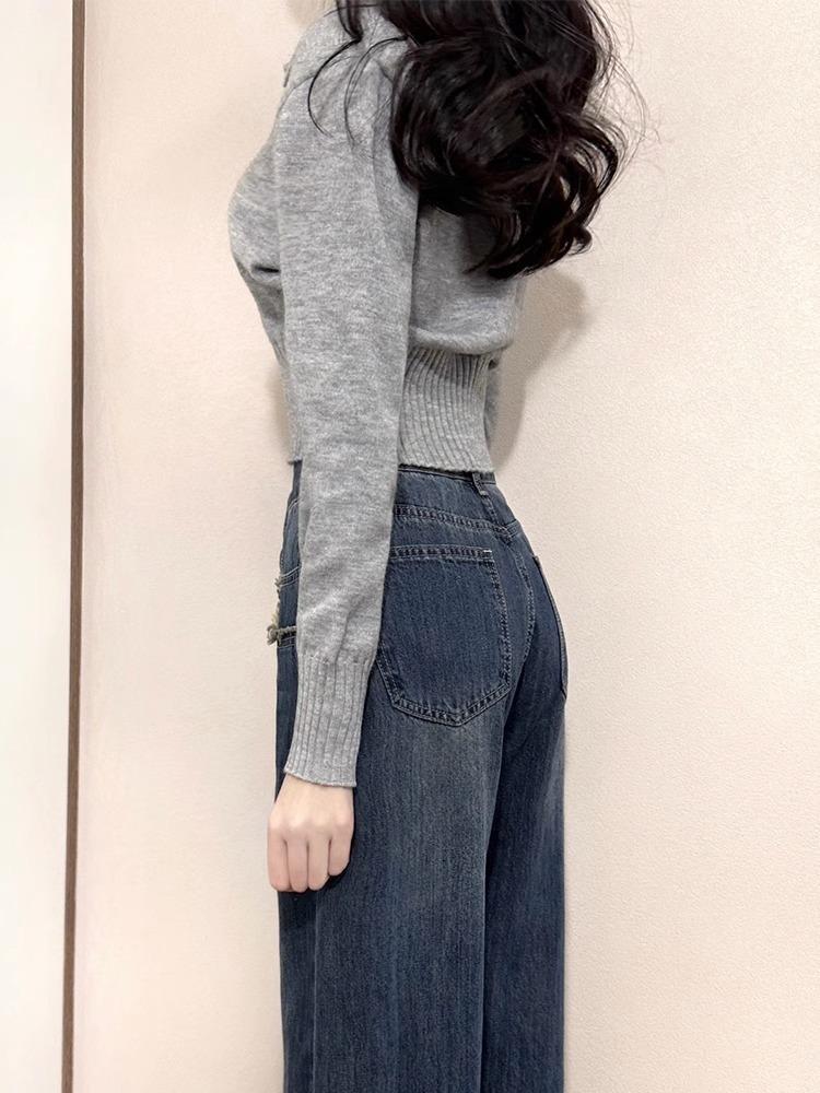 Suéter Básico de Punto Simple con Solapa Estilo Coreano Ropa para Principios de Otoño Nuevo Ajustado Adelgazante Combinable Básico Elegante
