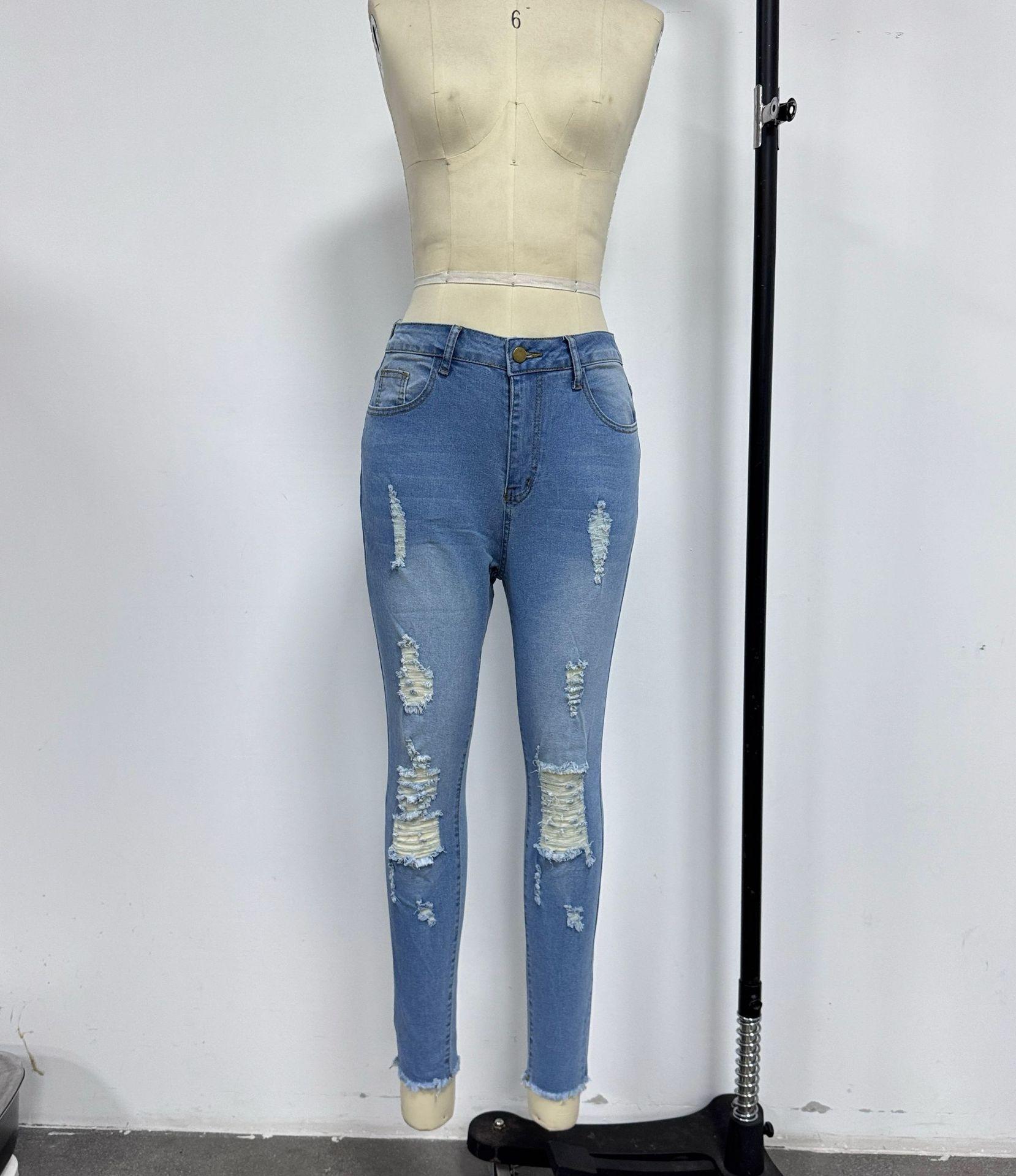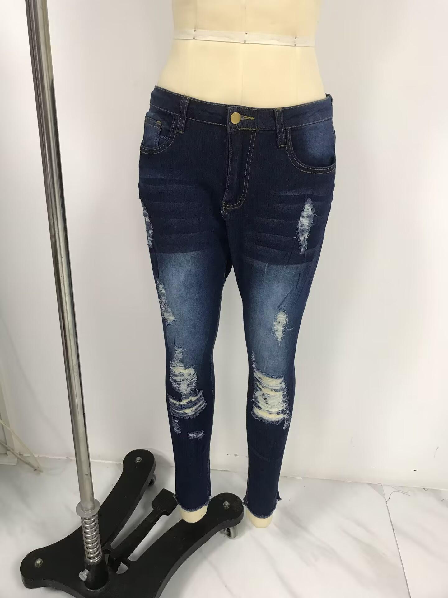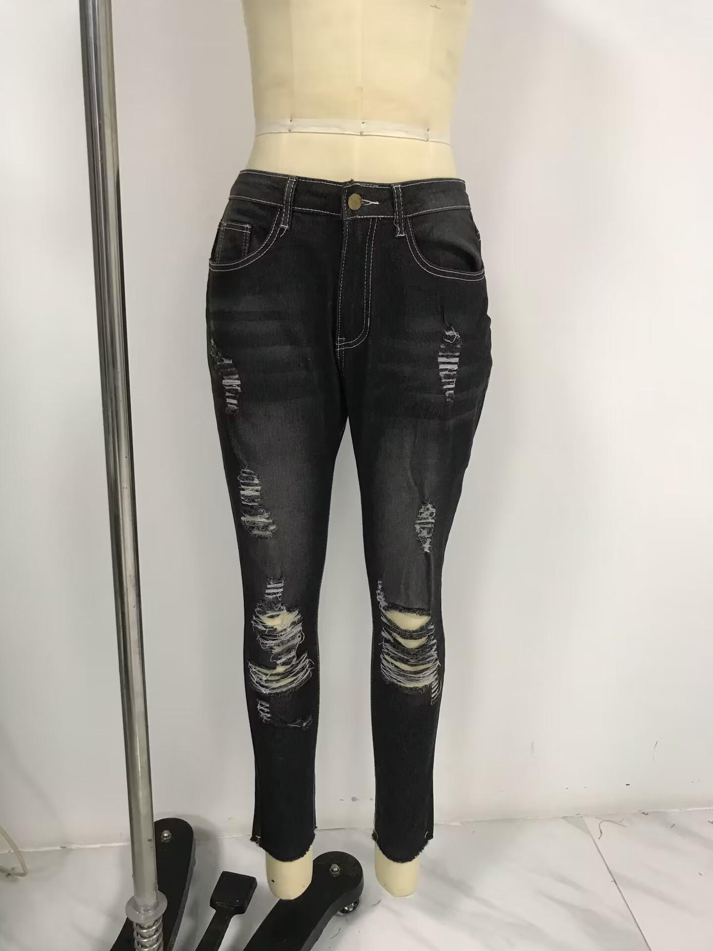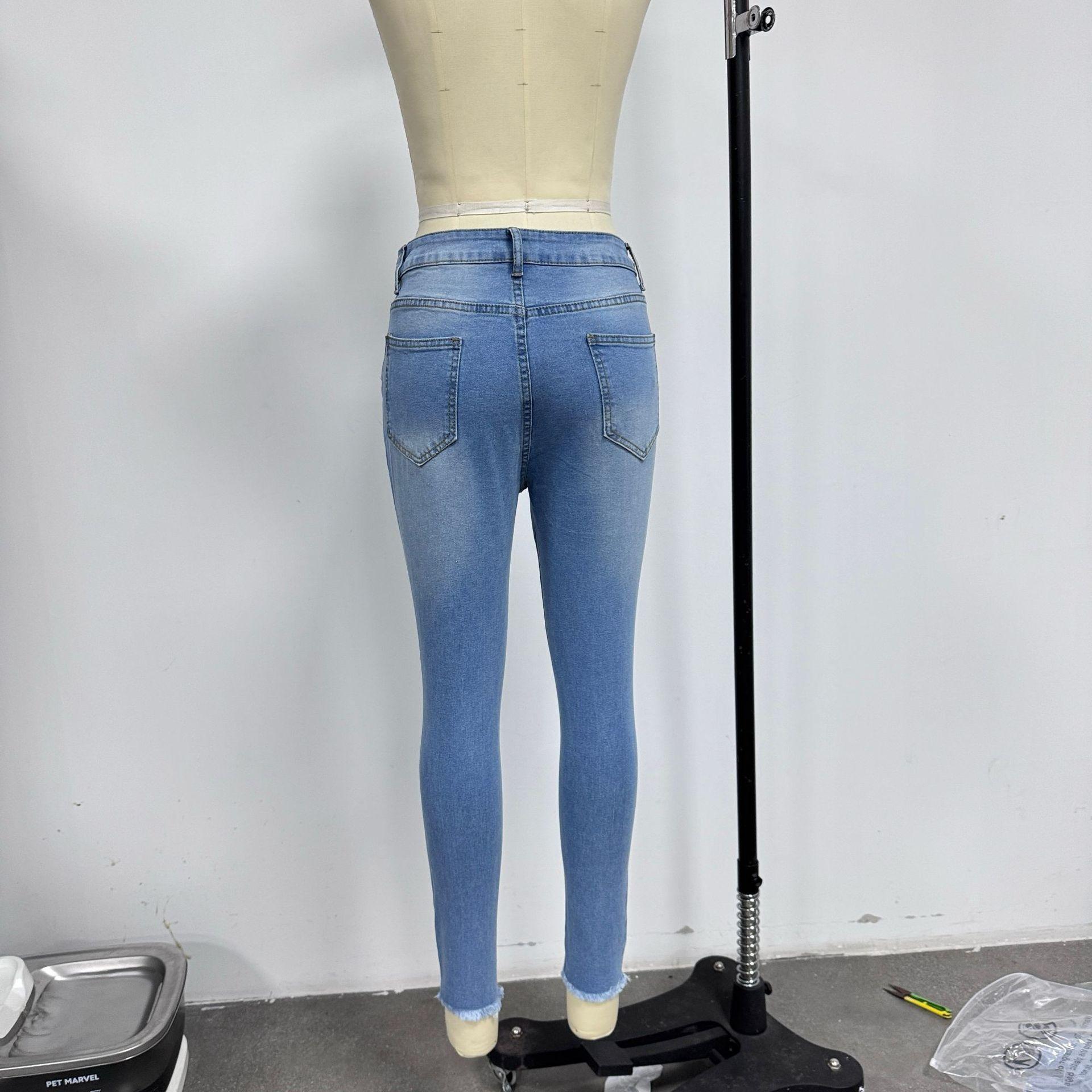 Suministro Transfronterizo de Comercio Exterior Europeo y Americano Jeans Rotos Elásticos de Corte Ajustado para Mujer