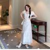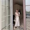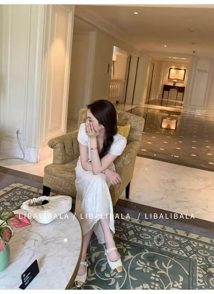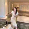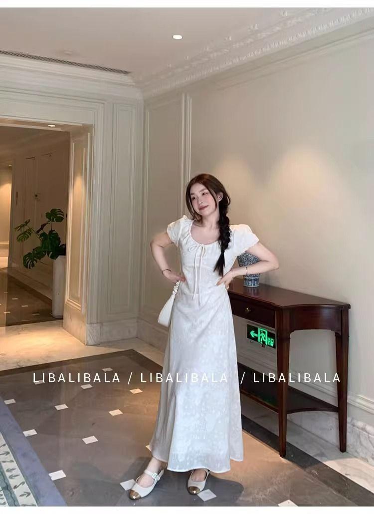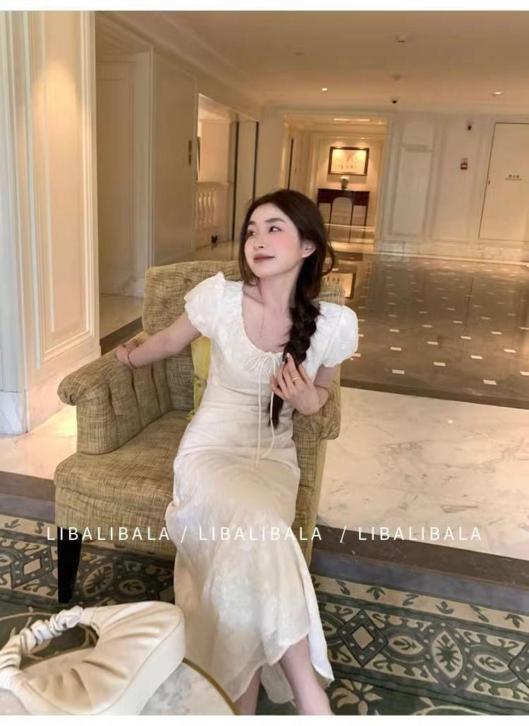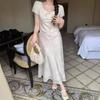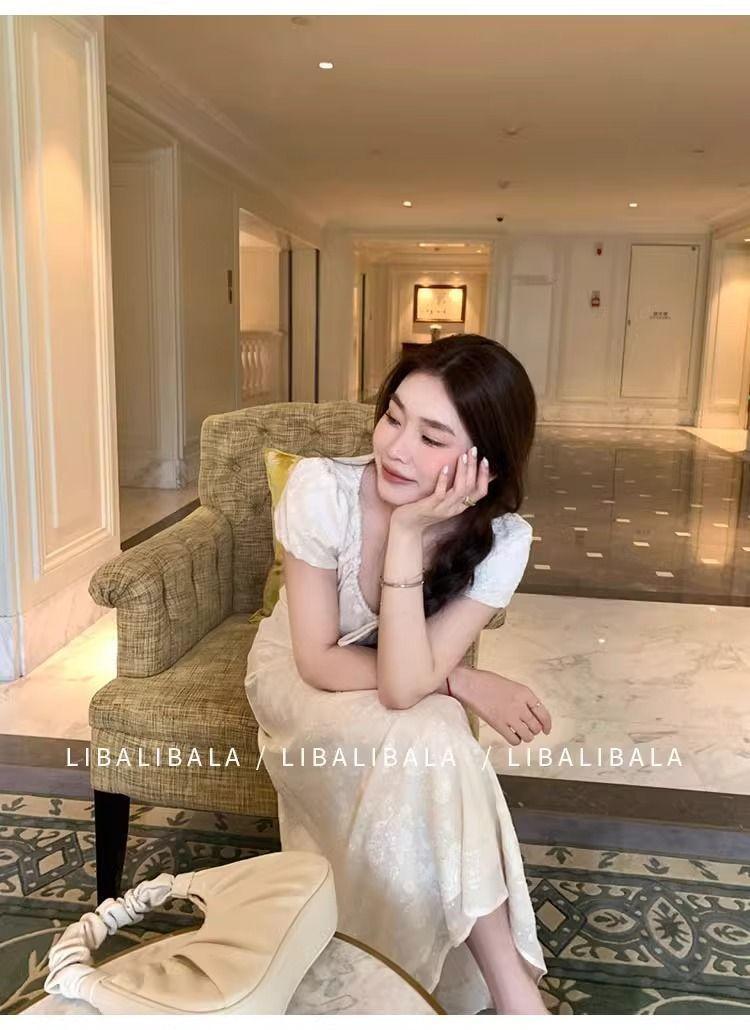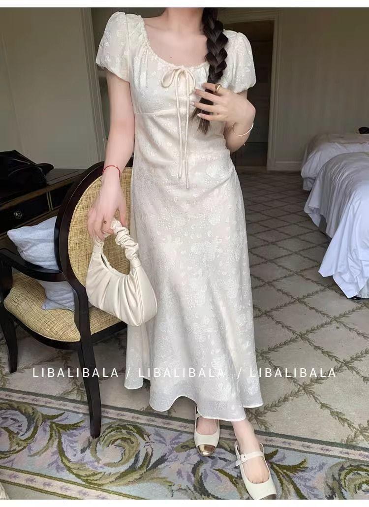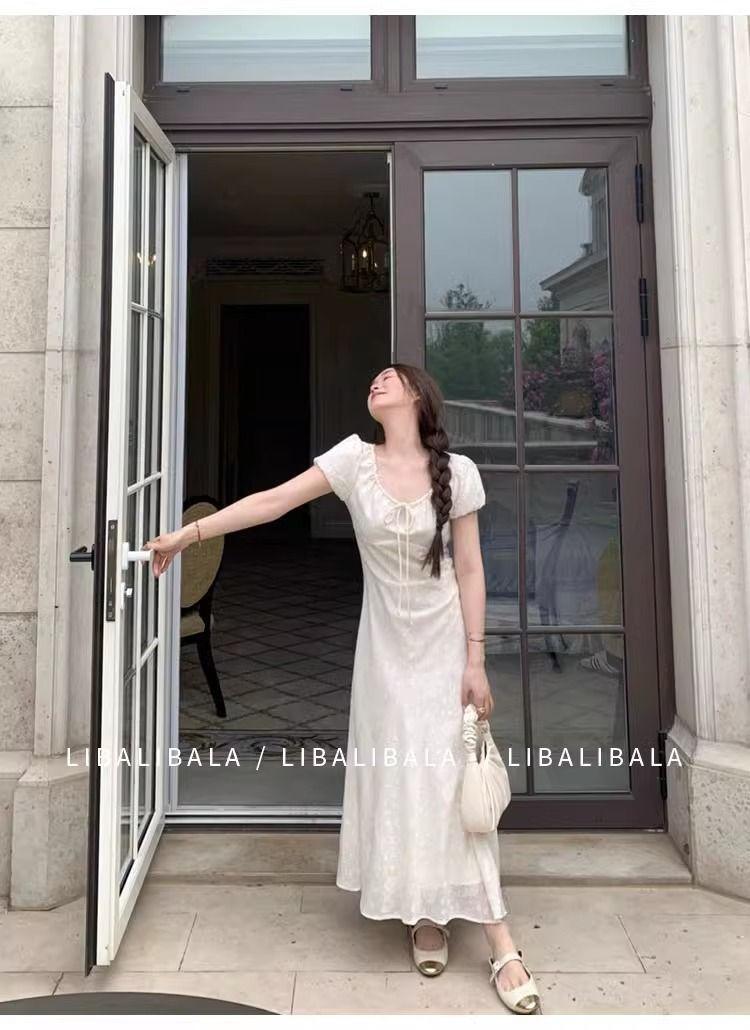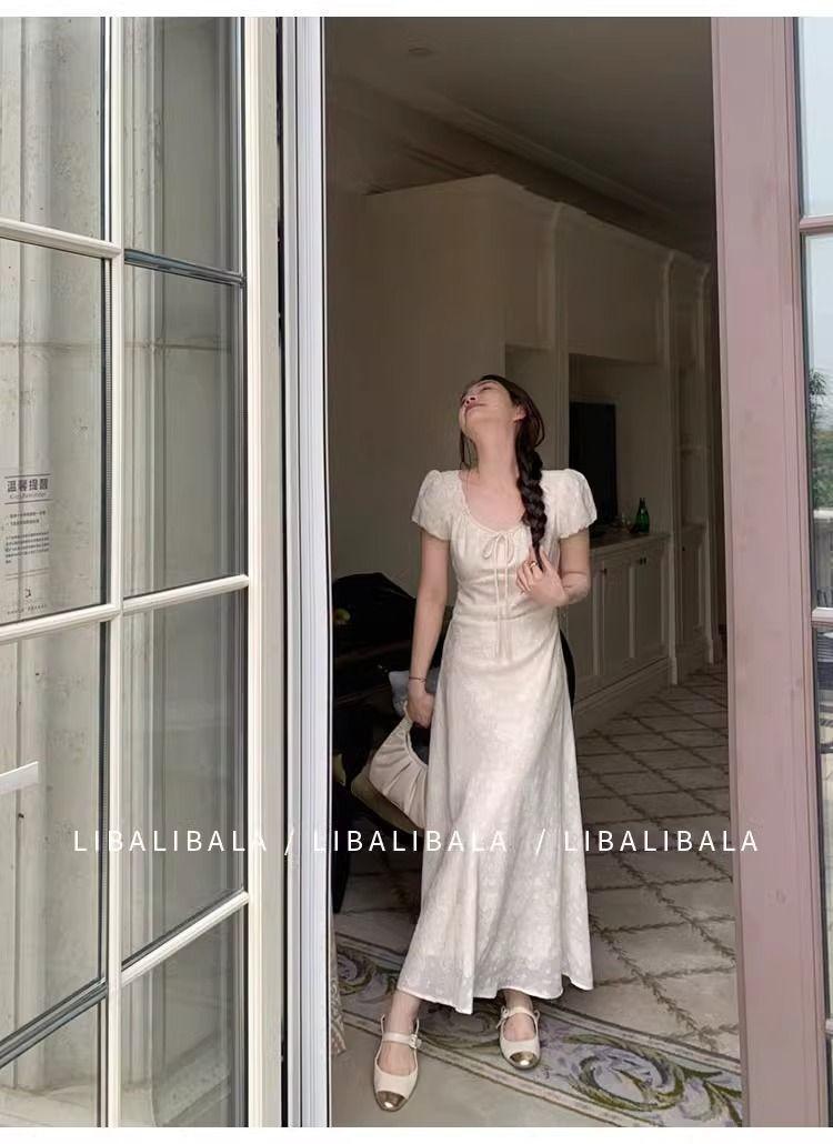 Vestido de manga corta estilo francés para mujer en verano, suave y entallado, falda larga Primer Amor, albaricoque, favorecedor, cintura falda línea A