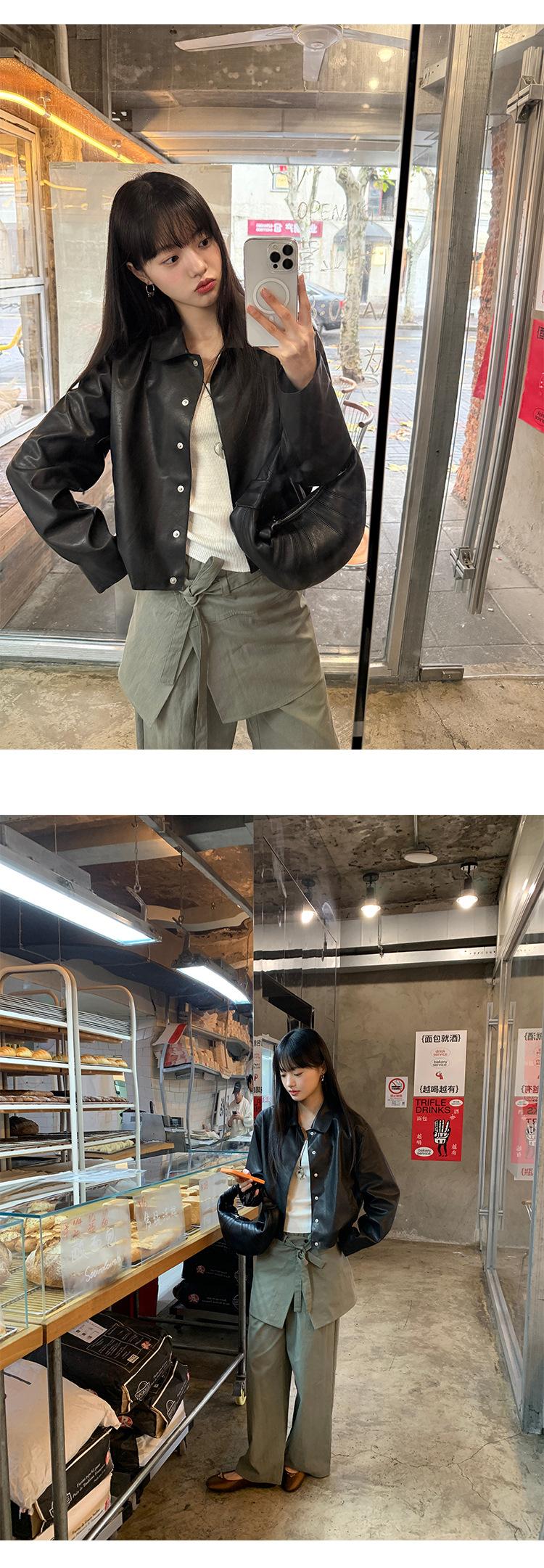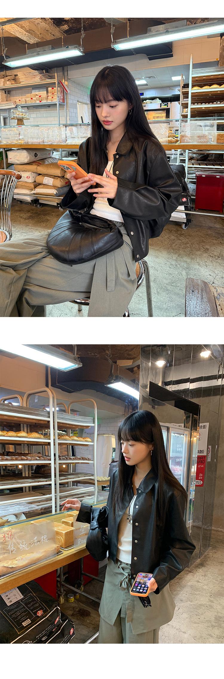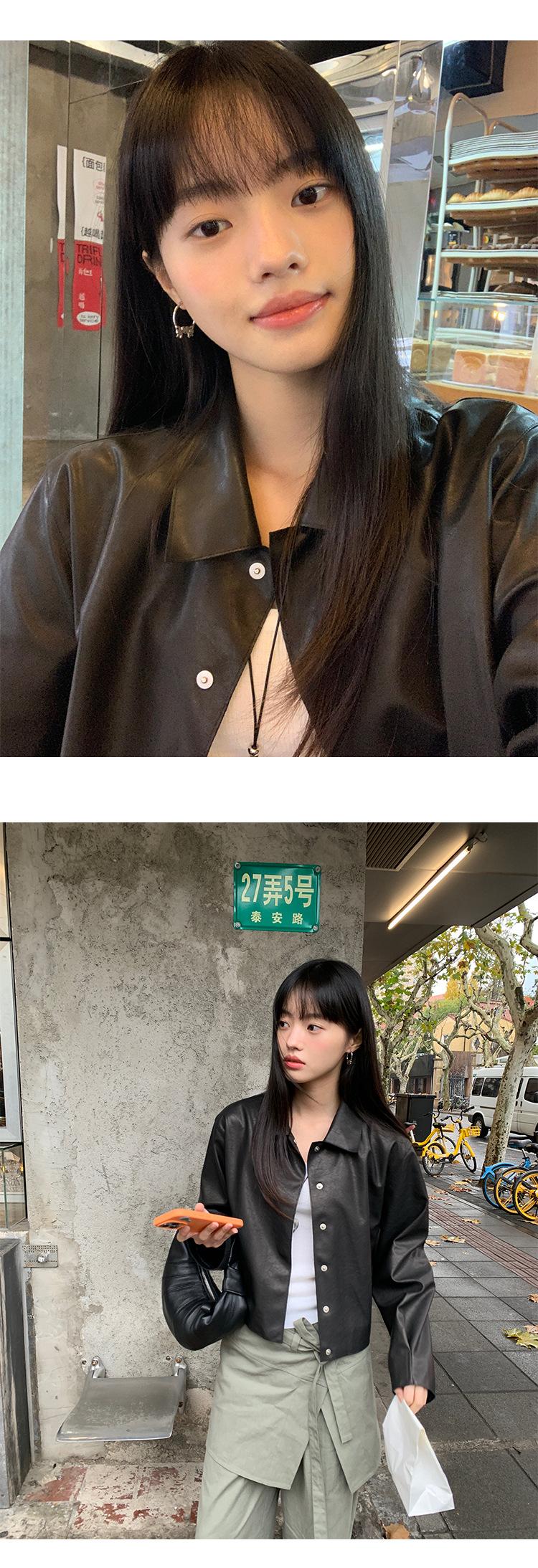 Chaqueta Corta de Cuero Fu para Mujer 2025 Primavera y Otoño Nueva Chaqueta de Solapa de Alta Gama para Mujer Estilo Simple 3736A