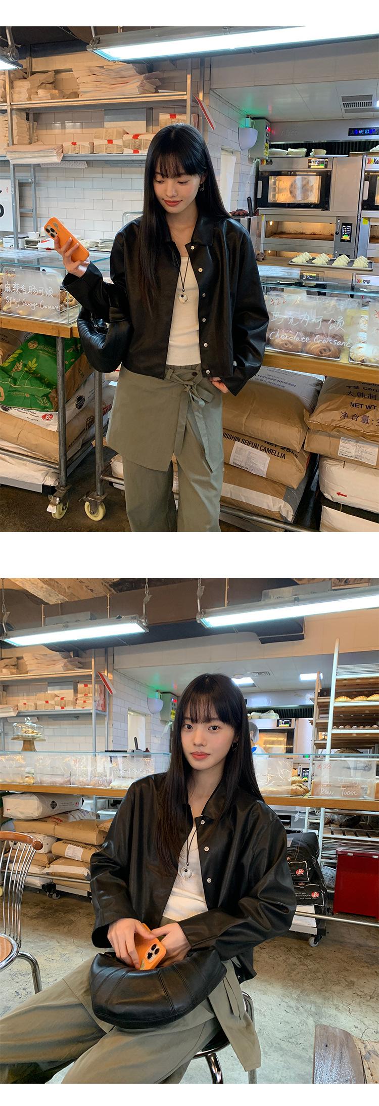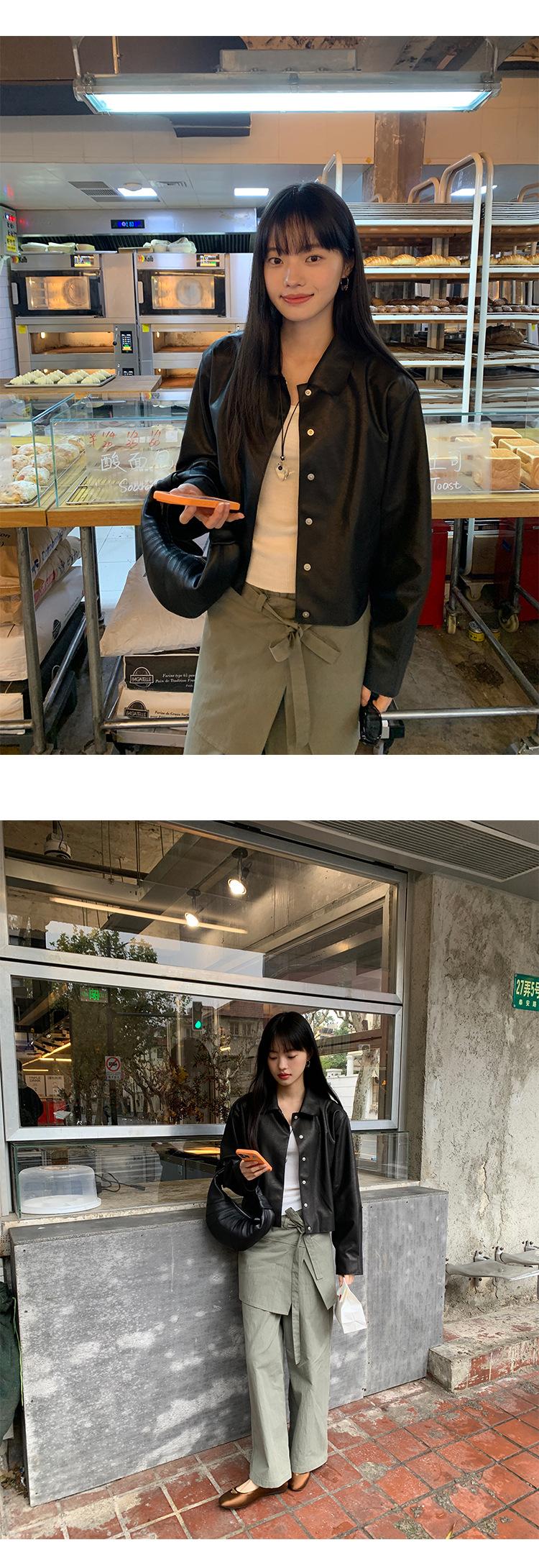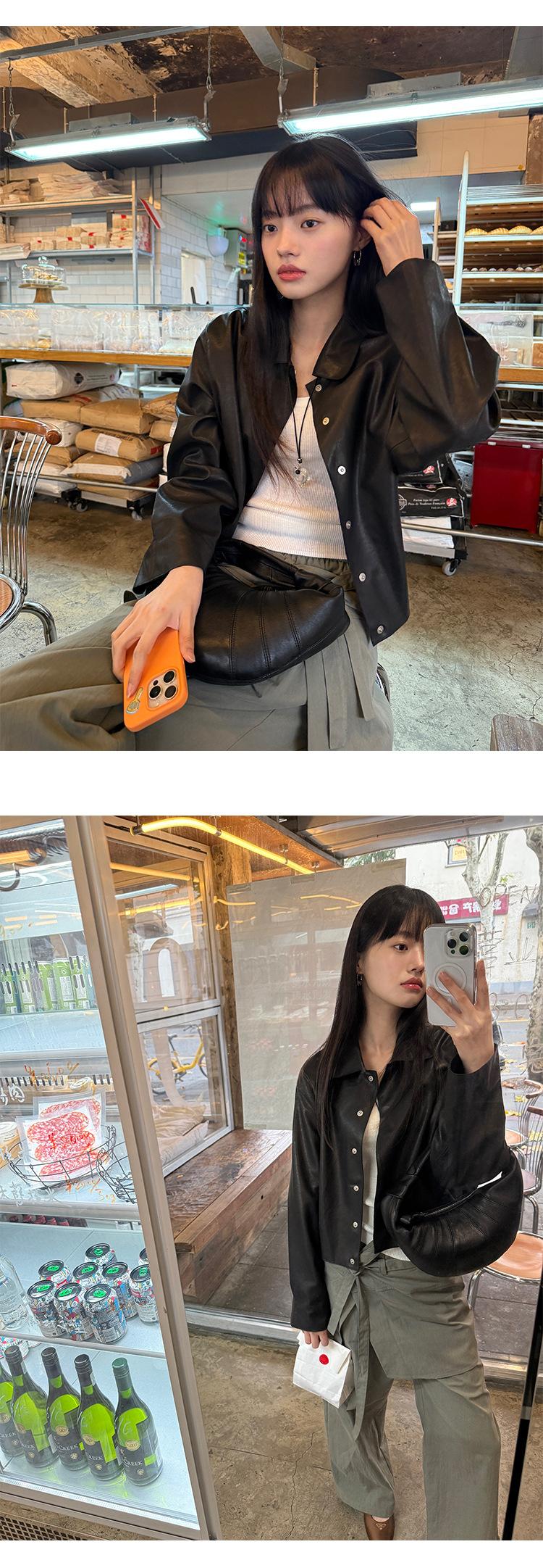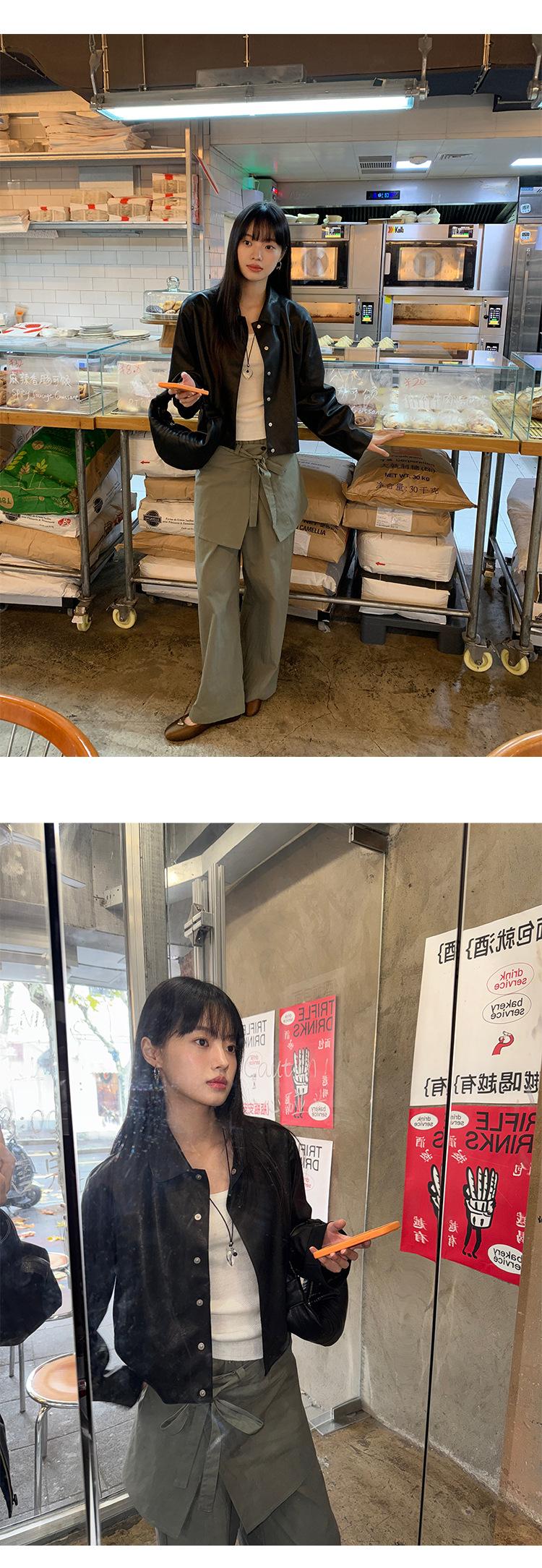 Chaqueta Corta de Cuero Fu para Mujer 2025 Primavera y Otoño Nueva Chaqueta de Solapa de Alta Gama para Mujer Estilo Simple 3736A