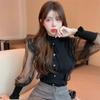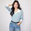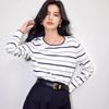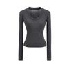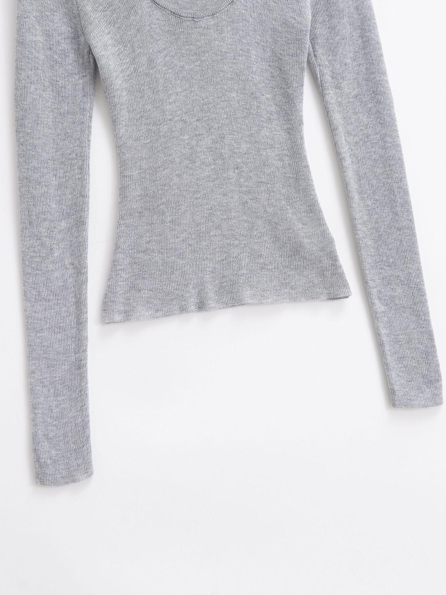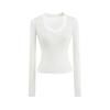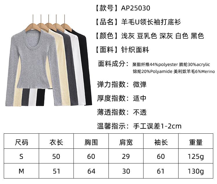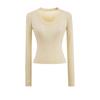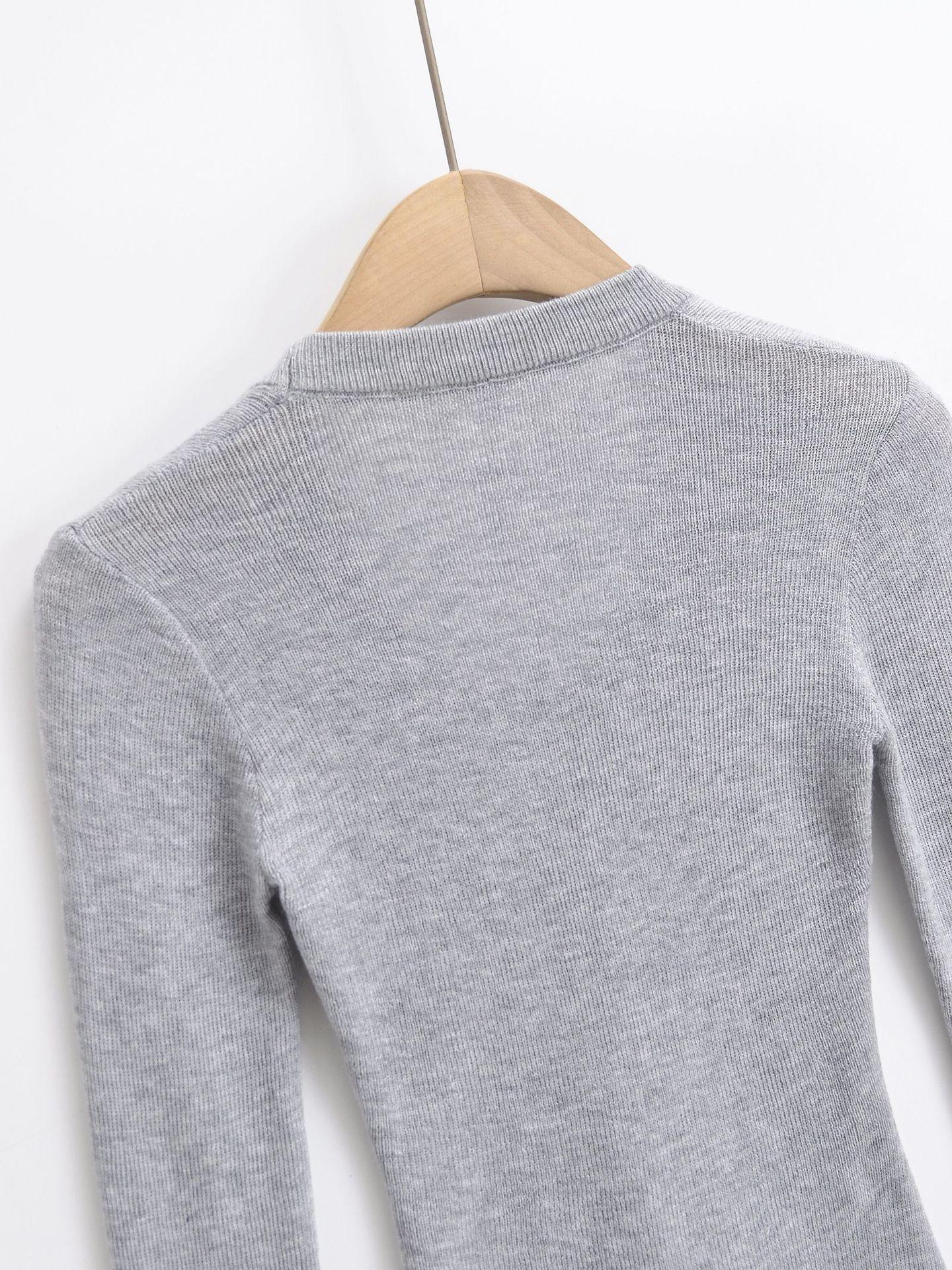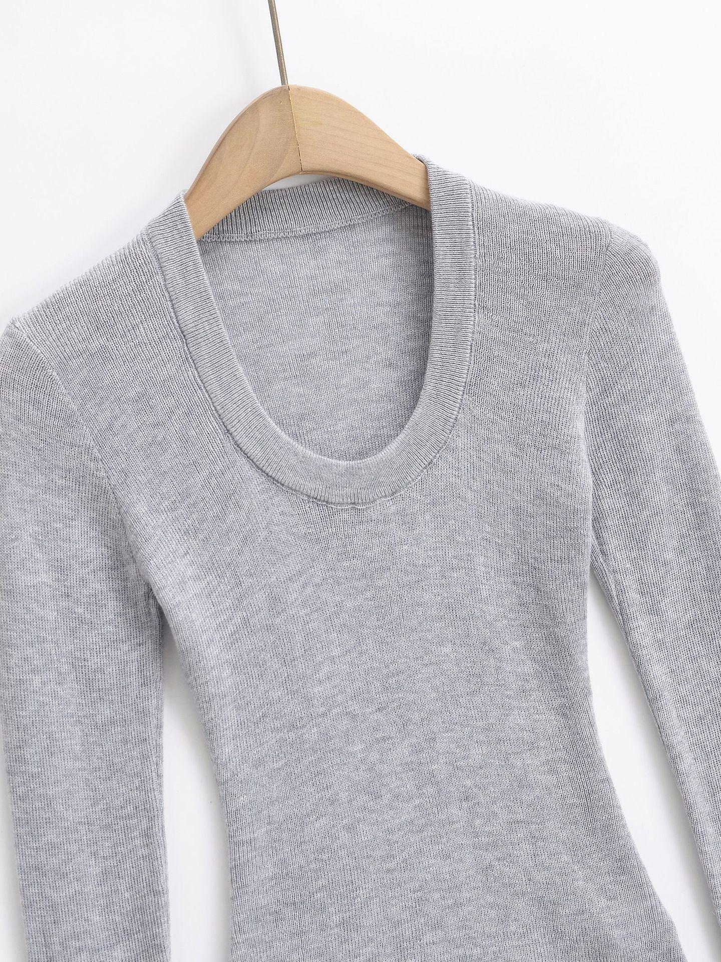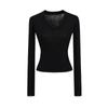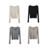 25030-2025 Nueva Moda Sexy Manga Larga Tejido Camisa Chaqueta Mujer Cuello Redondo Francés Ajustado Cuello U Suéter