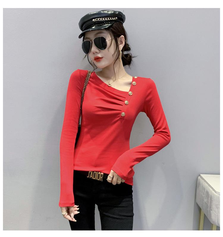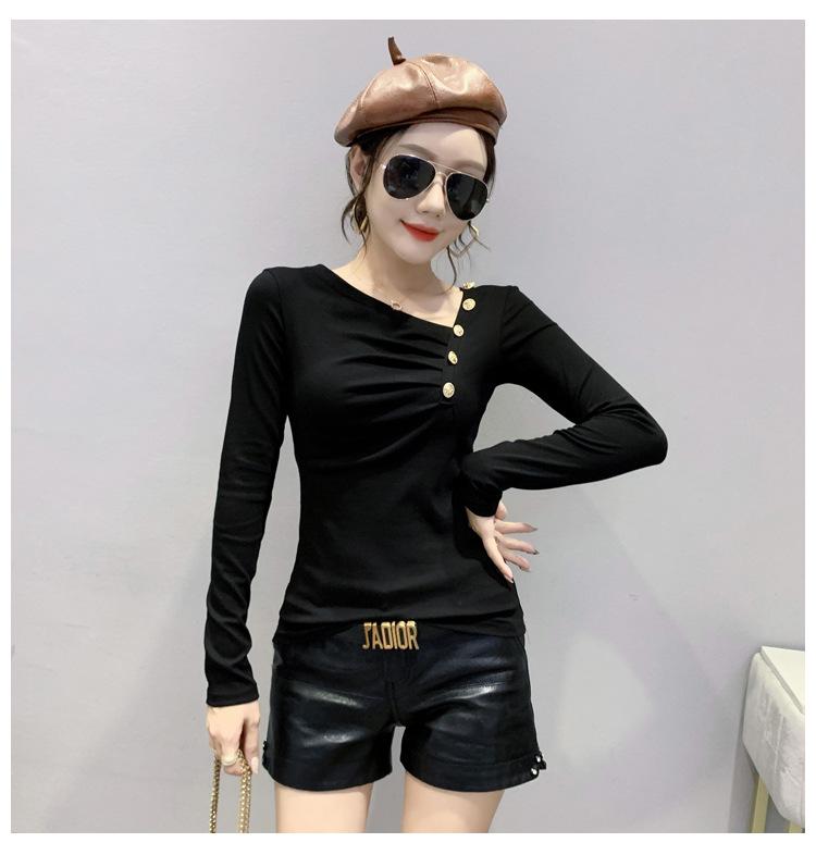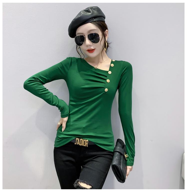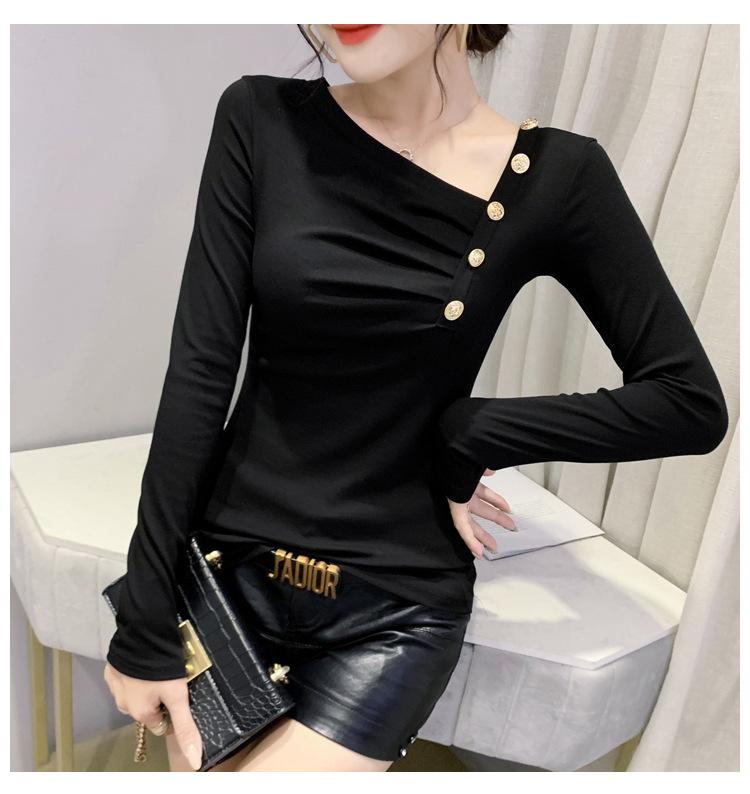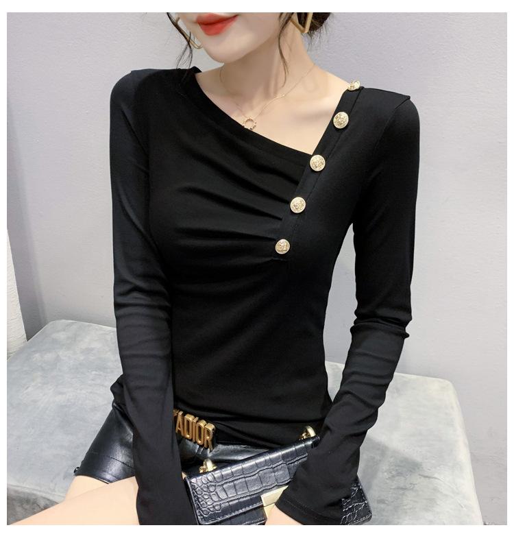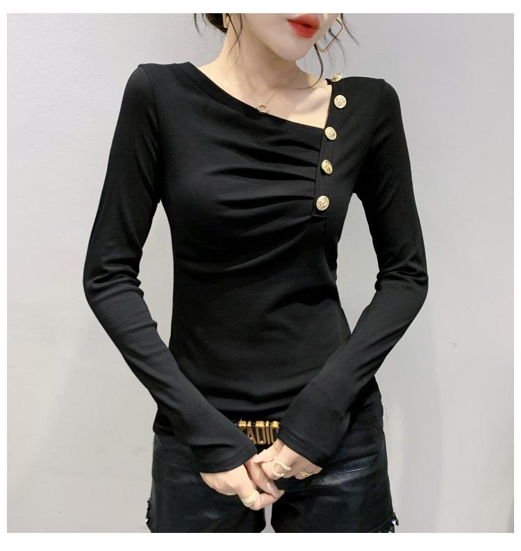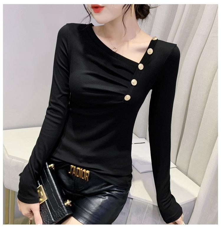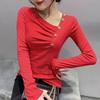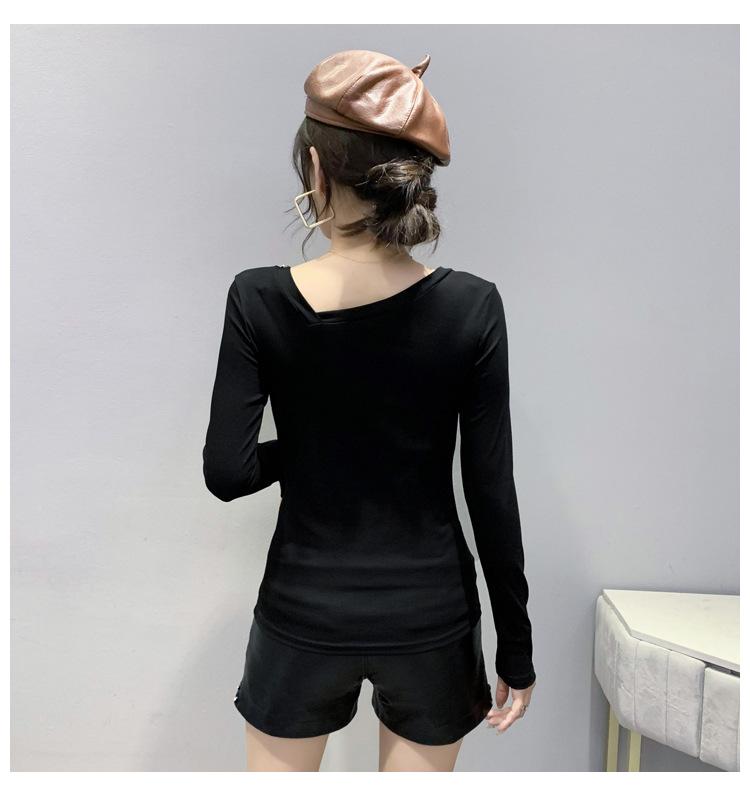 Estación Europea Otoño e Invierno Nuevo Sentido del Diseño Moda Manga Larga Ajustado Estilo Occidental Camiseta Base Top Camiseta Mujer