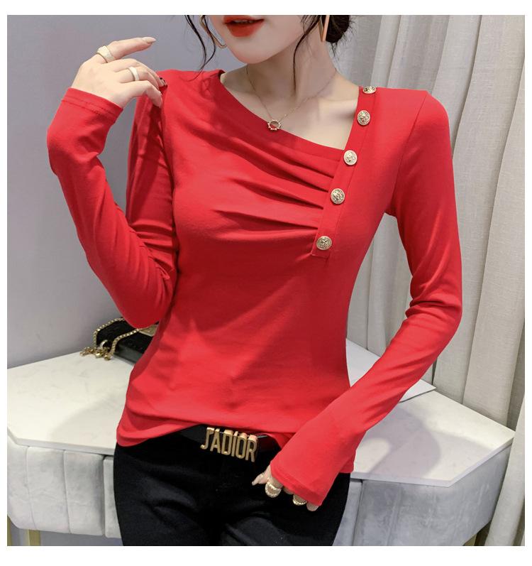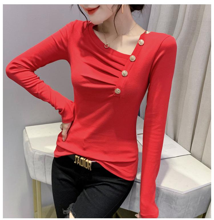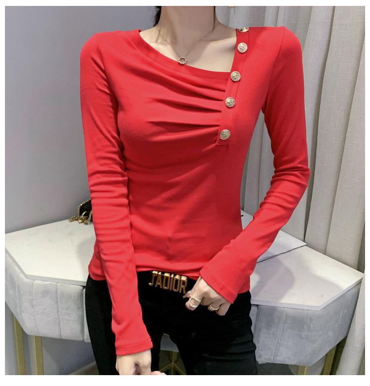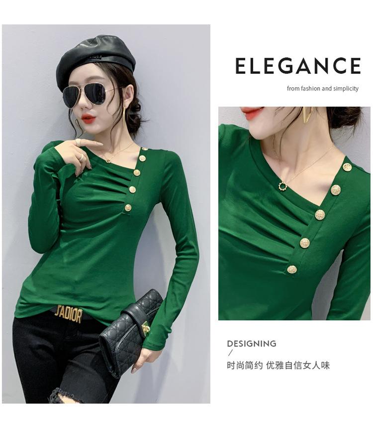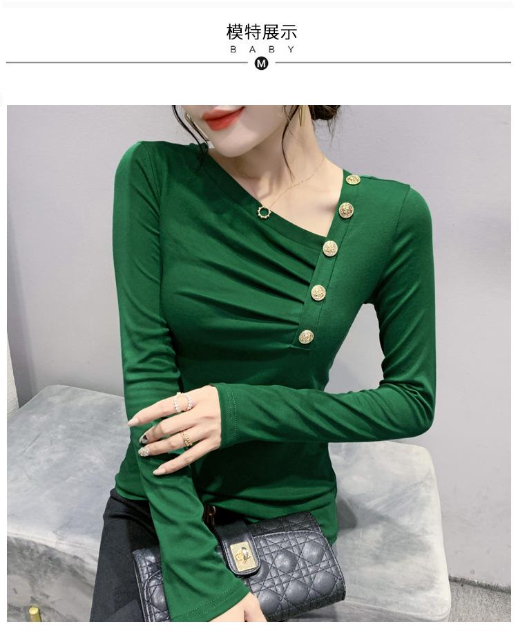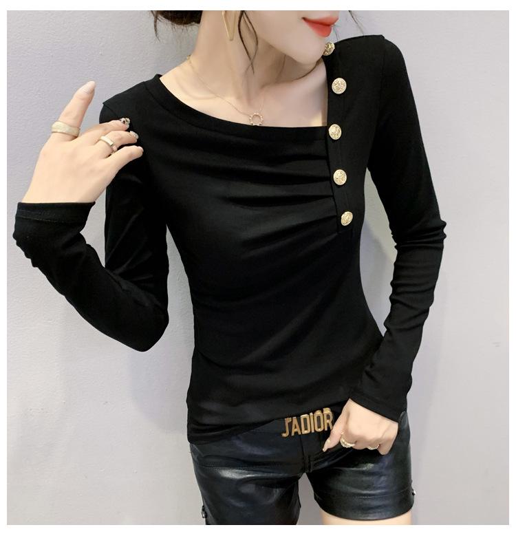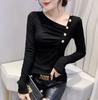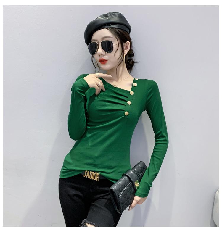 Estación Europea Otoño e Invierno Nuevo Sentido del Diseño Moda Manga Larga Ajustado Estilo Occidental Camiseta Base Top Camiseta Mujer