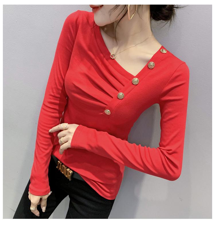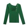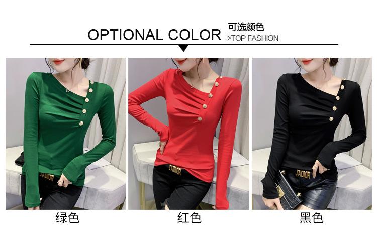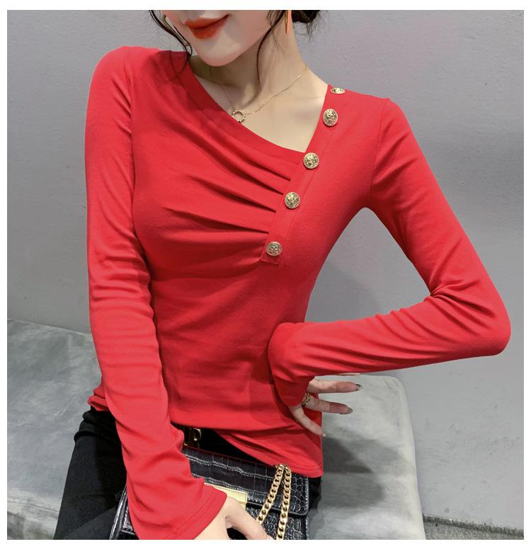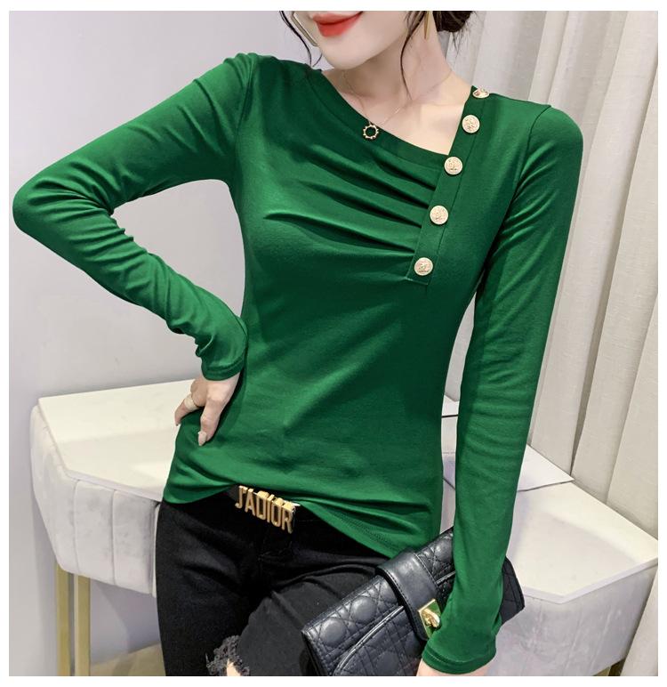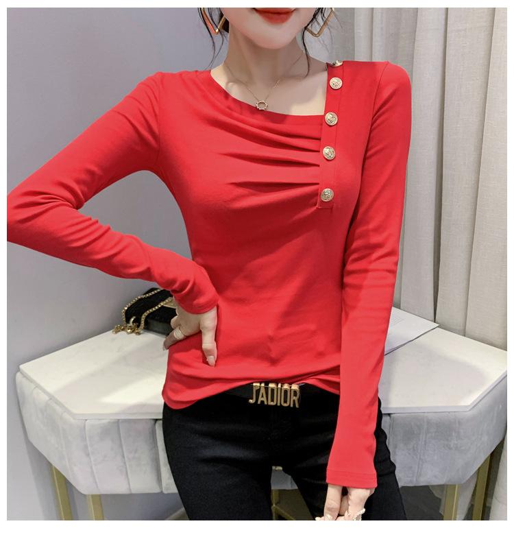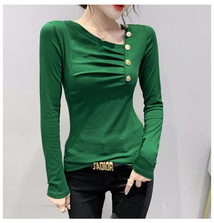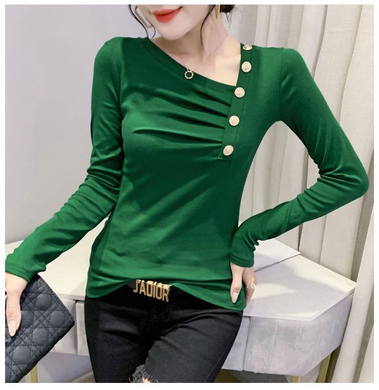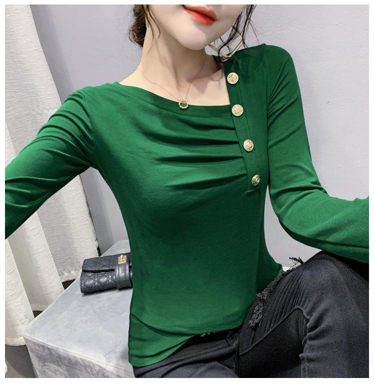 Estación Europea Otoño e Invierno Nuevo Sentido del Diseño Moda Manga Larga Ajustado Estilo Occidental Camiseta Base Top Camiseta Mujer