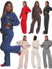211468 -1 Novo Estilo Outono e Inverno Personalizado Europeu e Americano Cor Pura Gola Redonda Manga Longa Moletom Moda Feminina Casual Calças Terno
