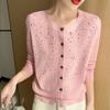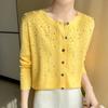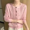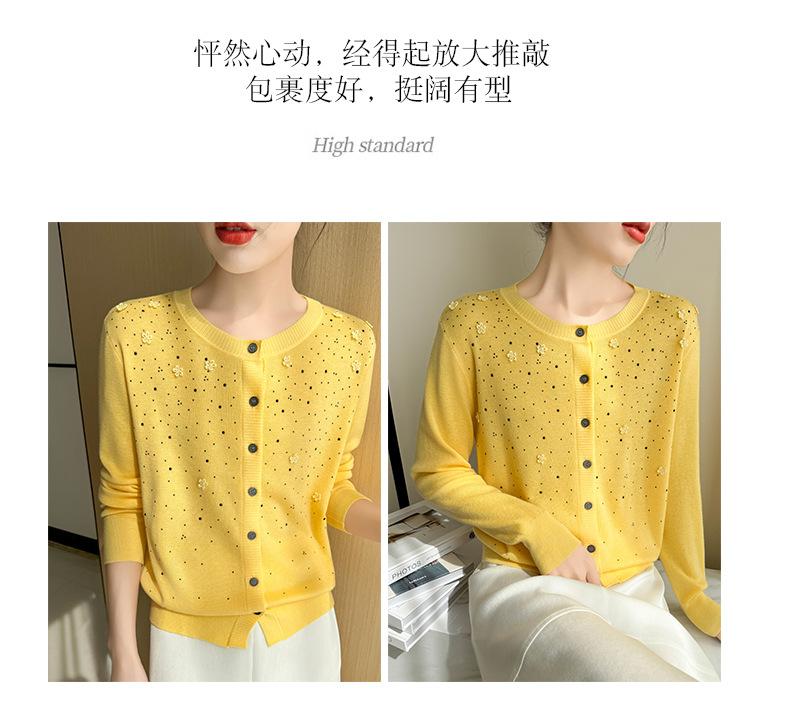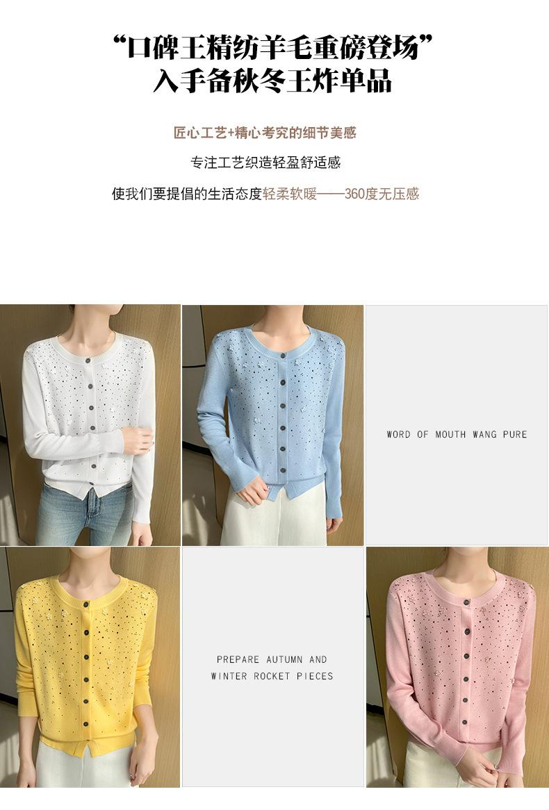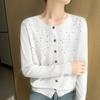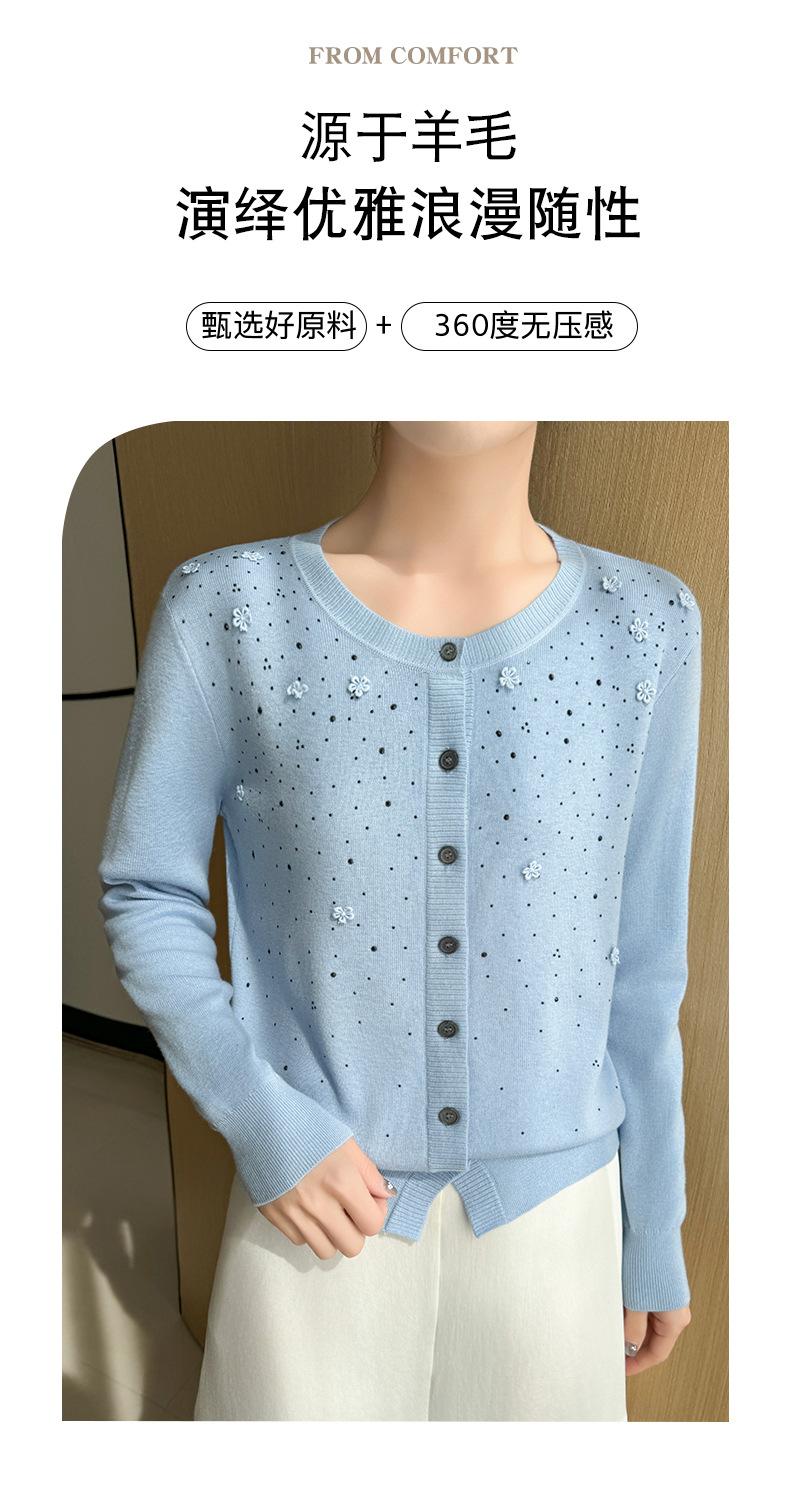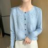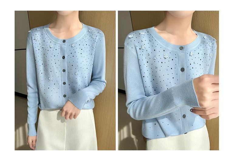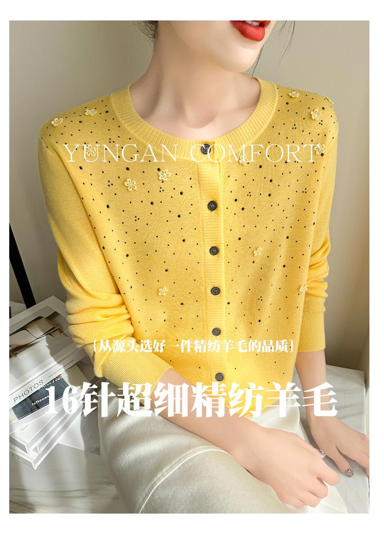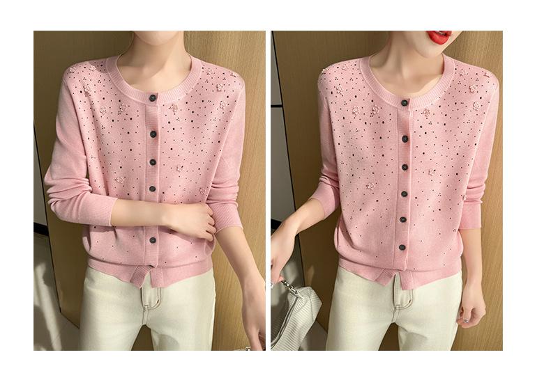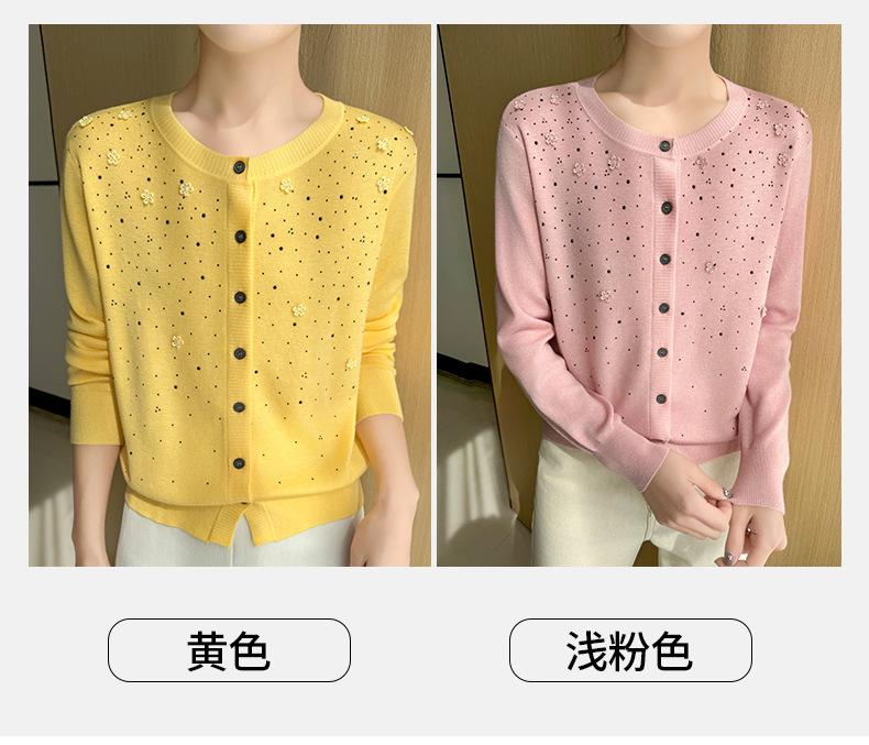 Cárdigan de Lana Fina Bordado Pesado para Mujer, Suéter Chaqueta de Punto de Manga Larga con Cuello Redondo y Pedrería, Top Holgado para Exterior