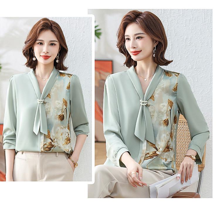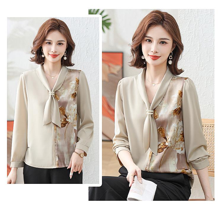 Blusa de gasa de moda para mujeres de mediana edad y mayores 2025, Camisa básica elegante de primavera y verano para mamá