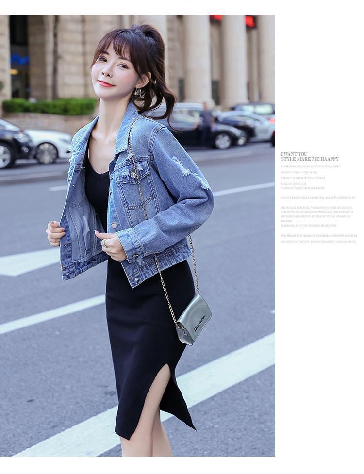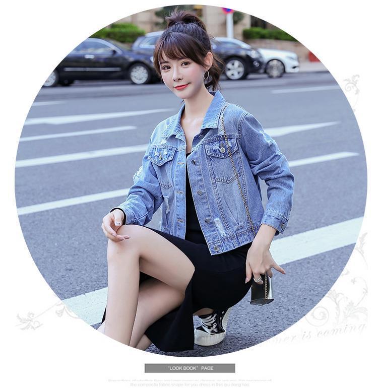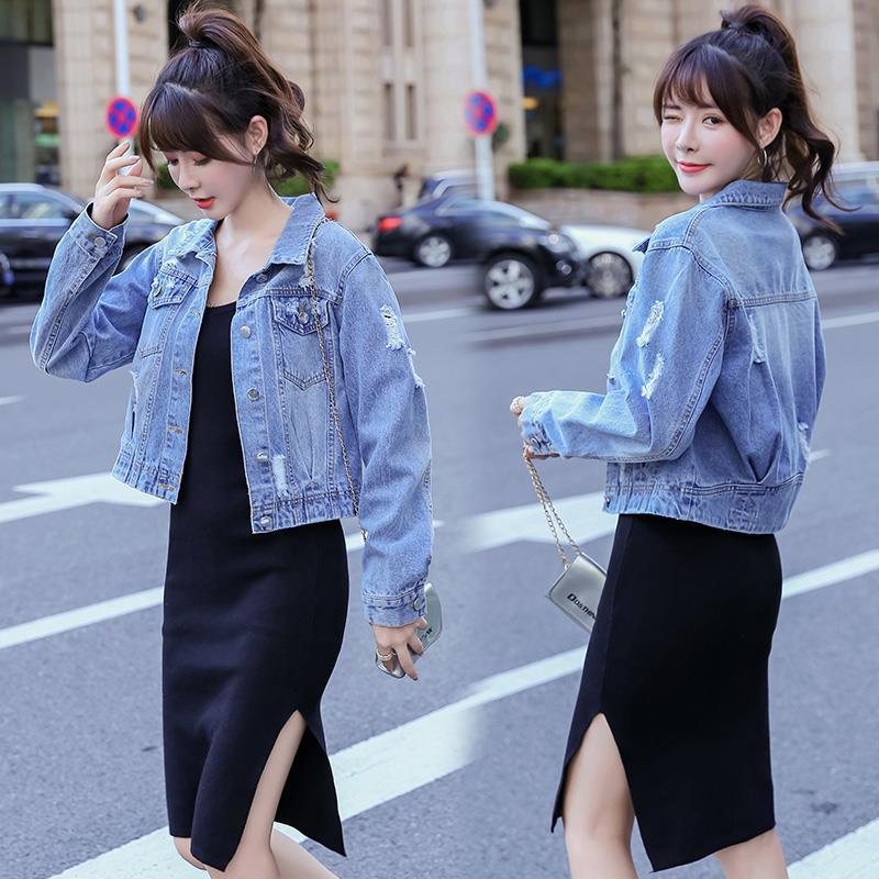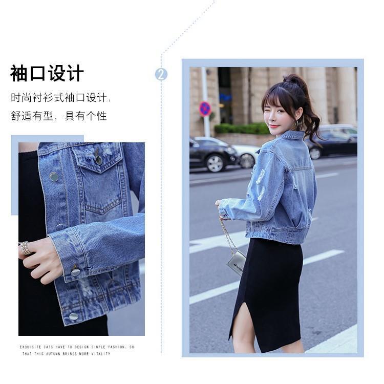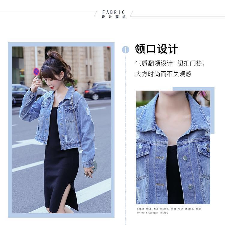 2025 Primavera y Otoño Nuevo Estilo Coreano Tops de Mezclilla Rotos para Mujer Casual Temperamento Más Fácil de Combinar Tops Cortos Pequeños Top