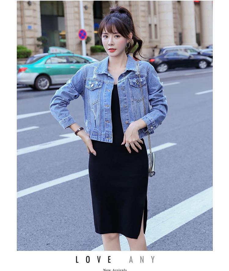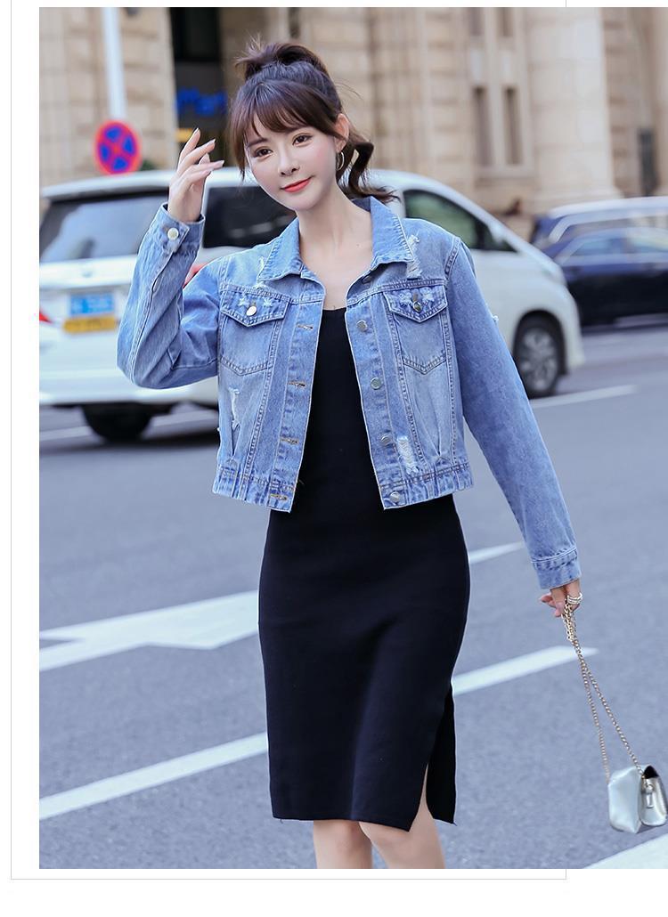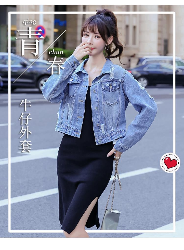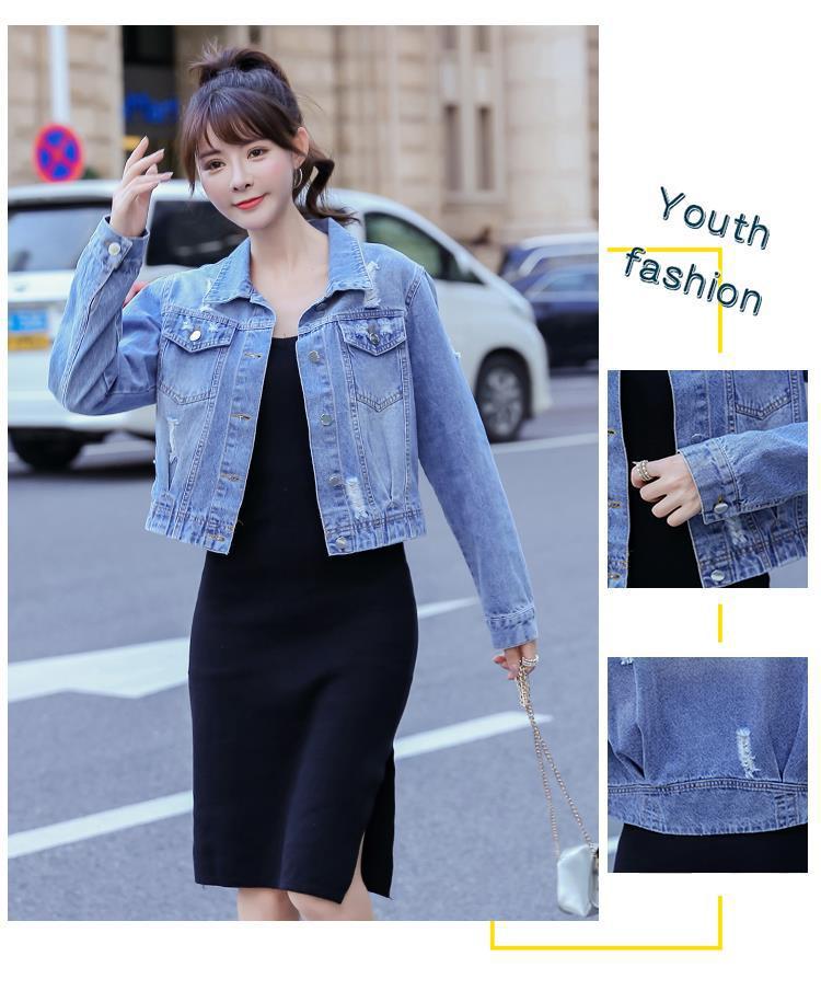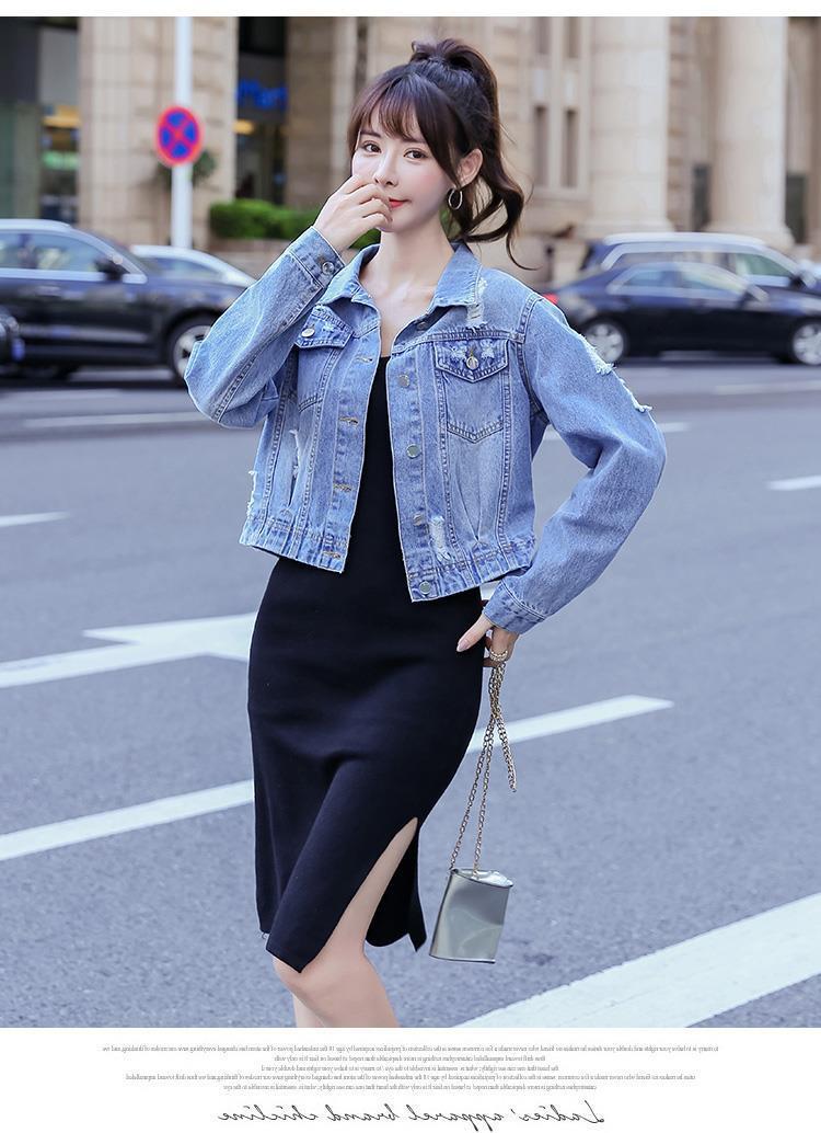 2025 Primavera y Otoño Nuevo Estilo Coreano Tops de Mezclilla Rotos para Mujer Casual Temperamento Más Fácil de Combinar Tops Cortos Pequeños Top