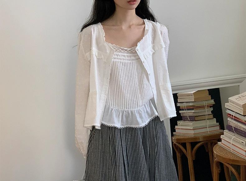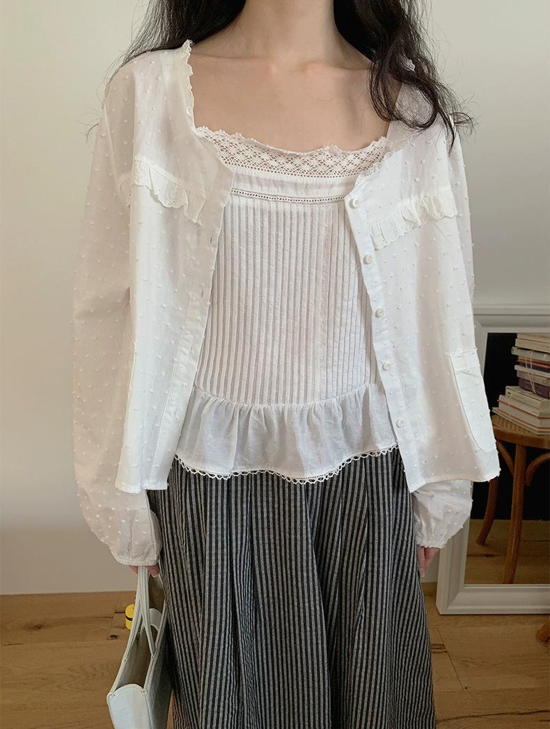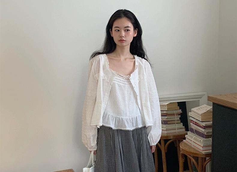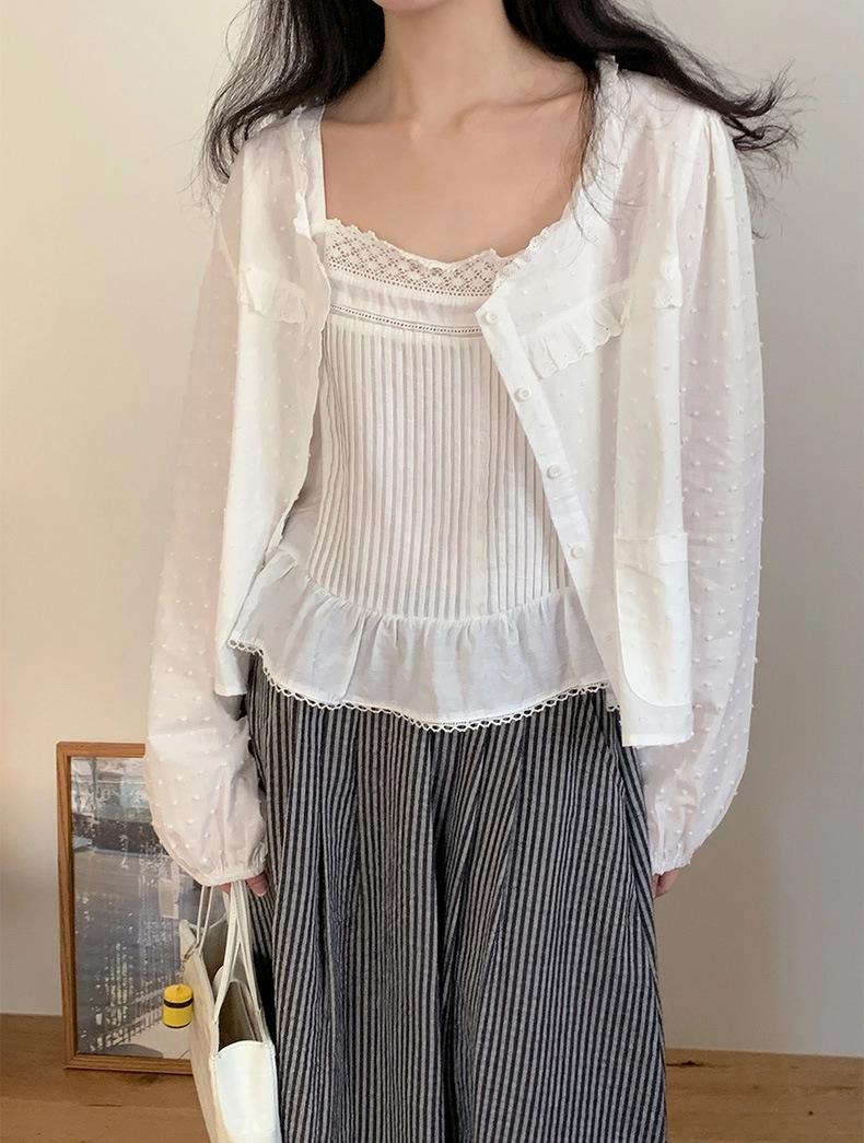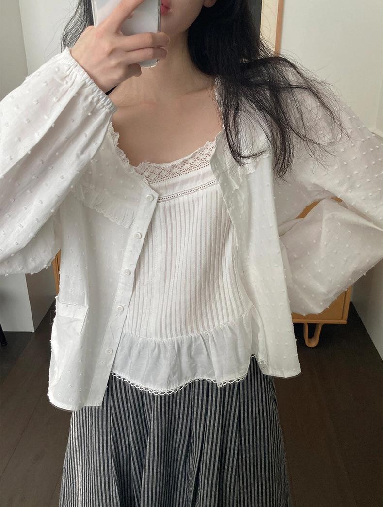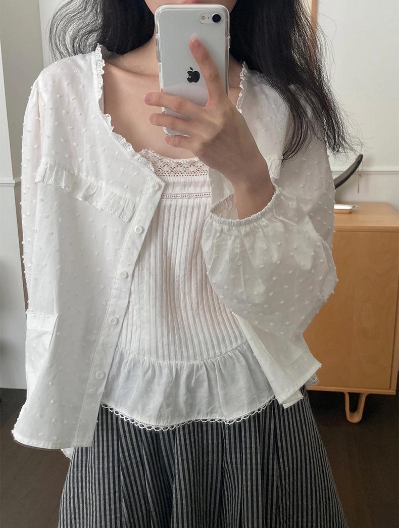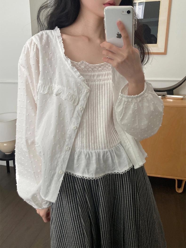 En Stock Verano 2025 Nuevo Coreano Dongdaemun Encaje de Punto Pequeño Tridimensional Camisa de Manga Larga Top Ropa Exterior