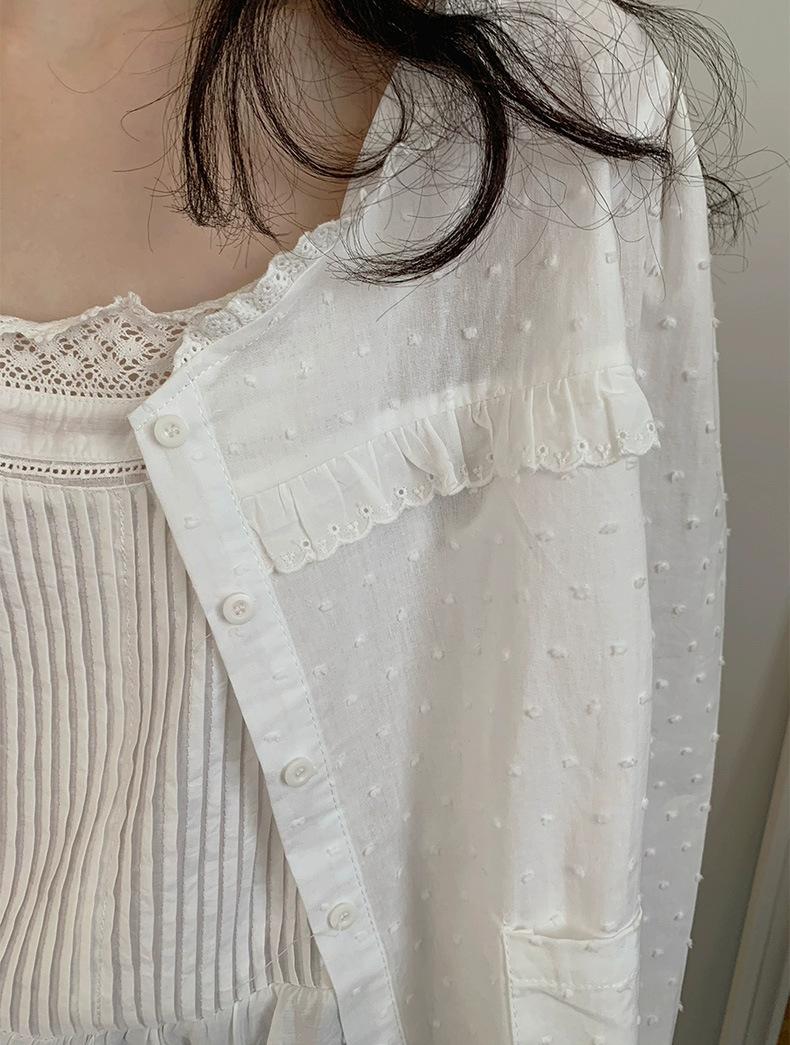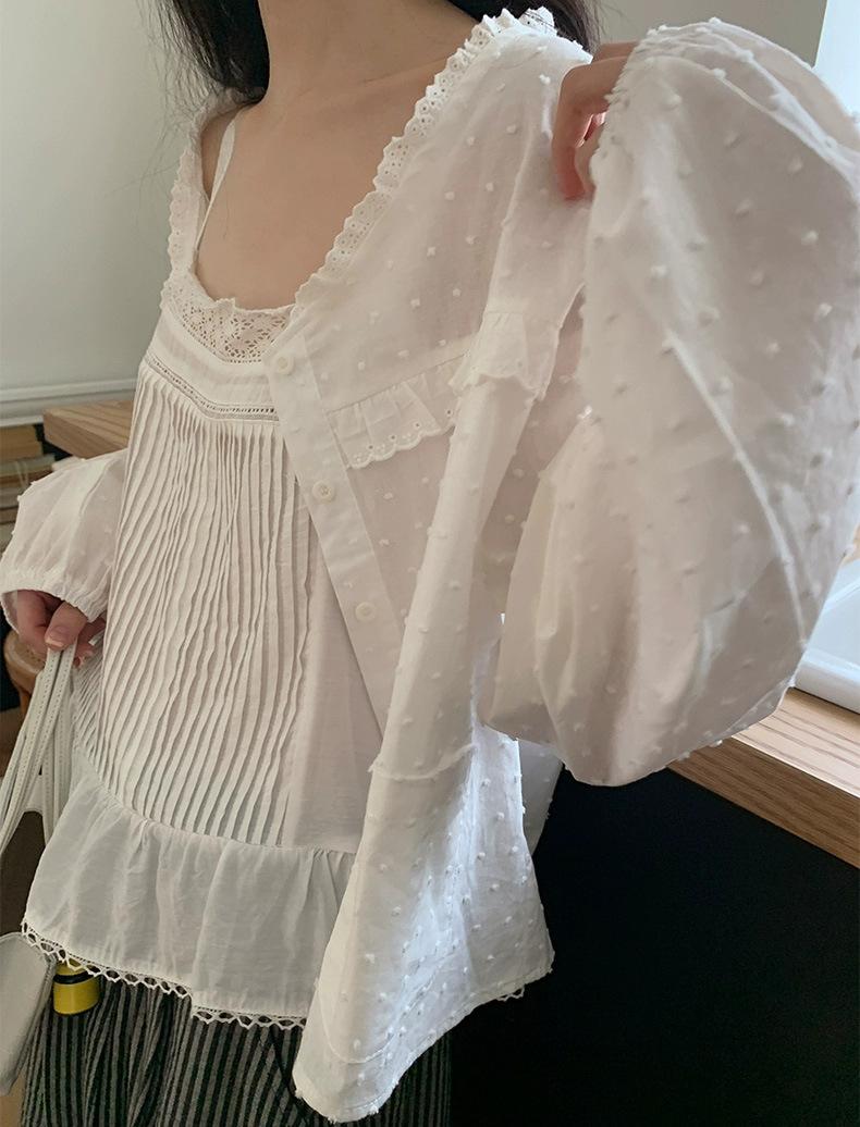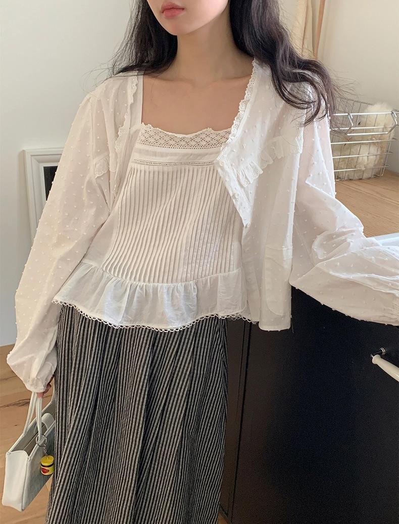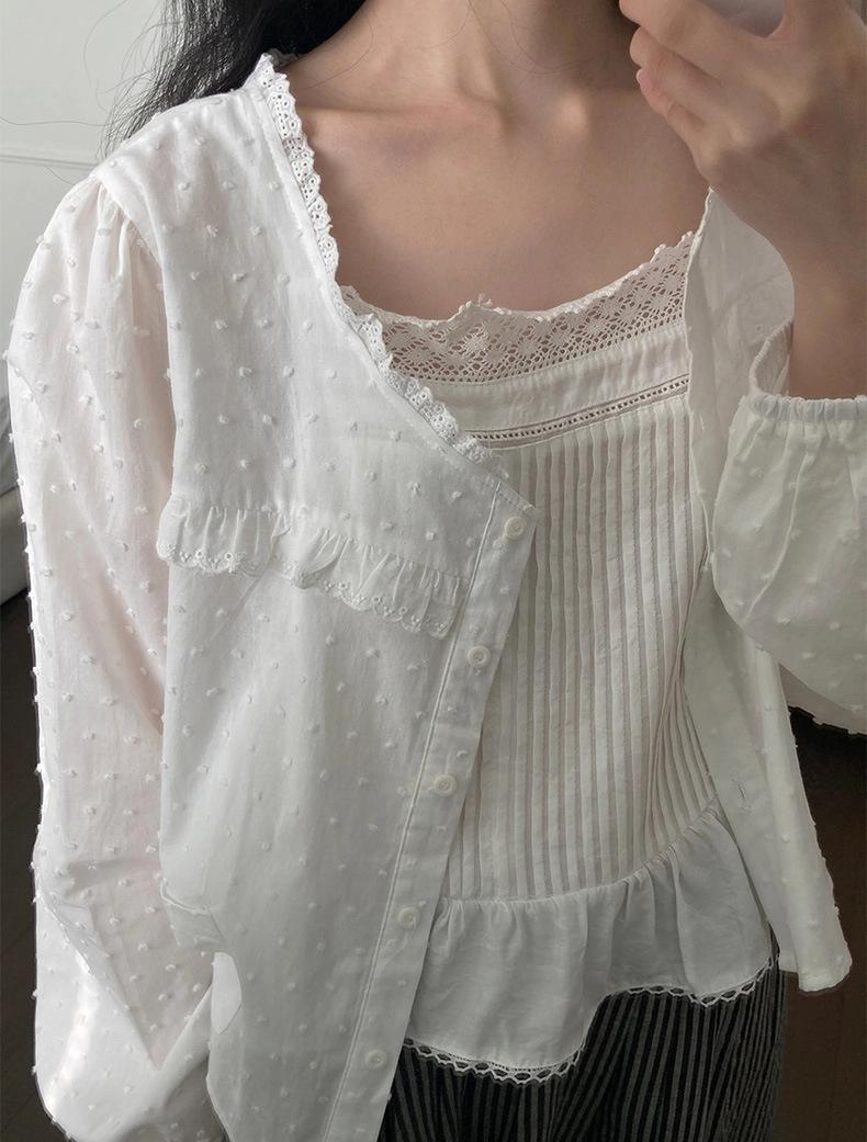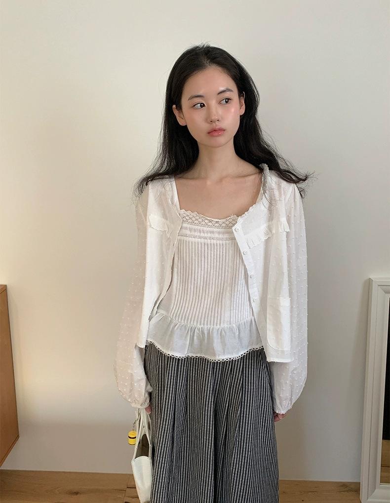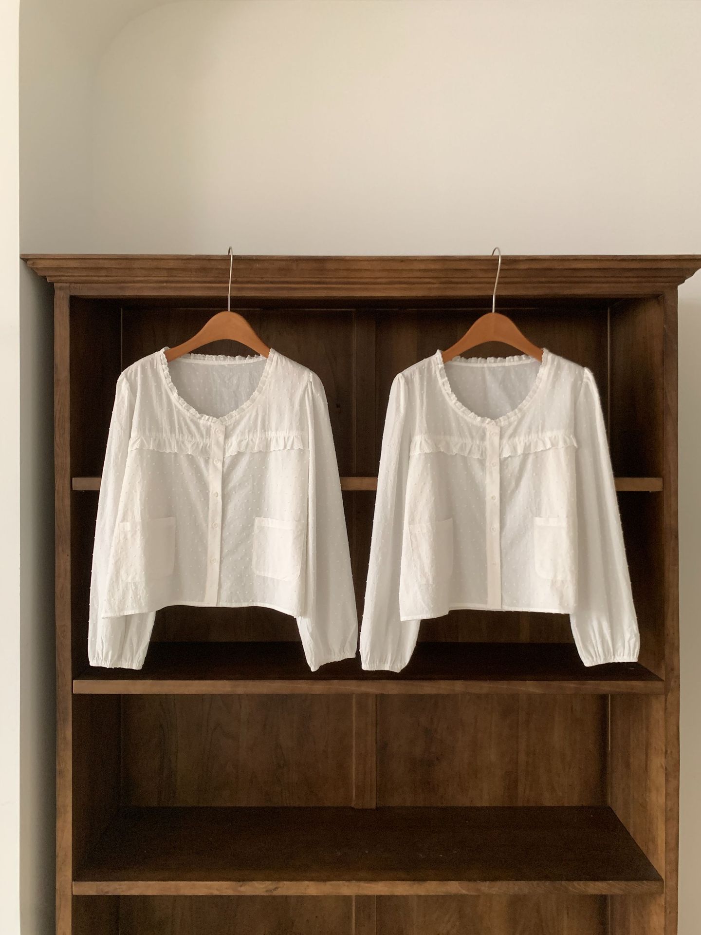 En Stock Verano 2025 Nuevo Coreano Dongdaemun Encaje de Punto Pequeño Tridimensional Camisa de Manga Larga Top Ropa Exterior