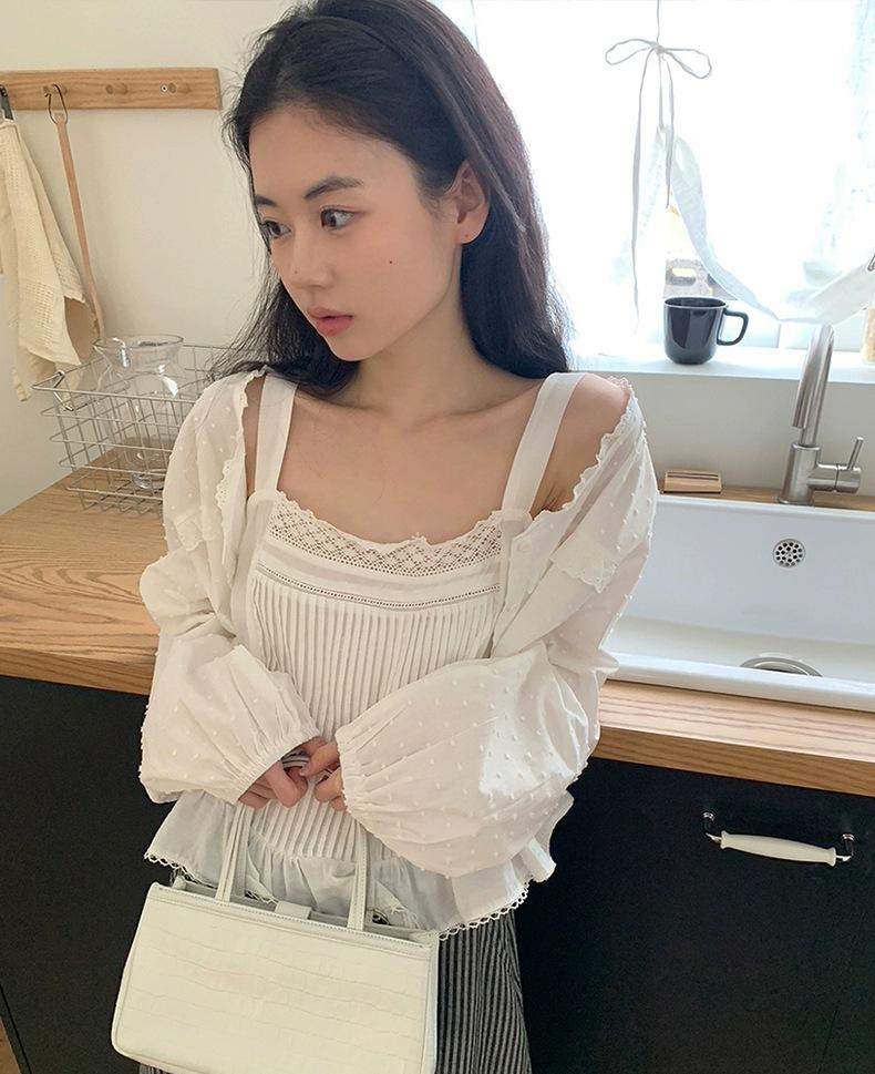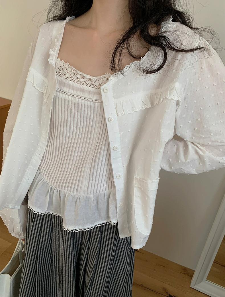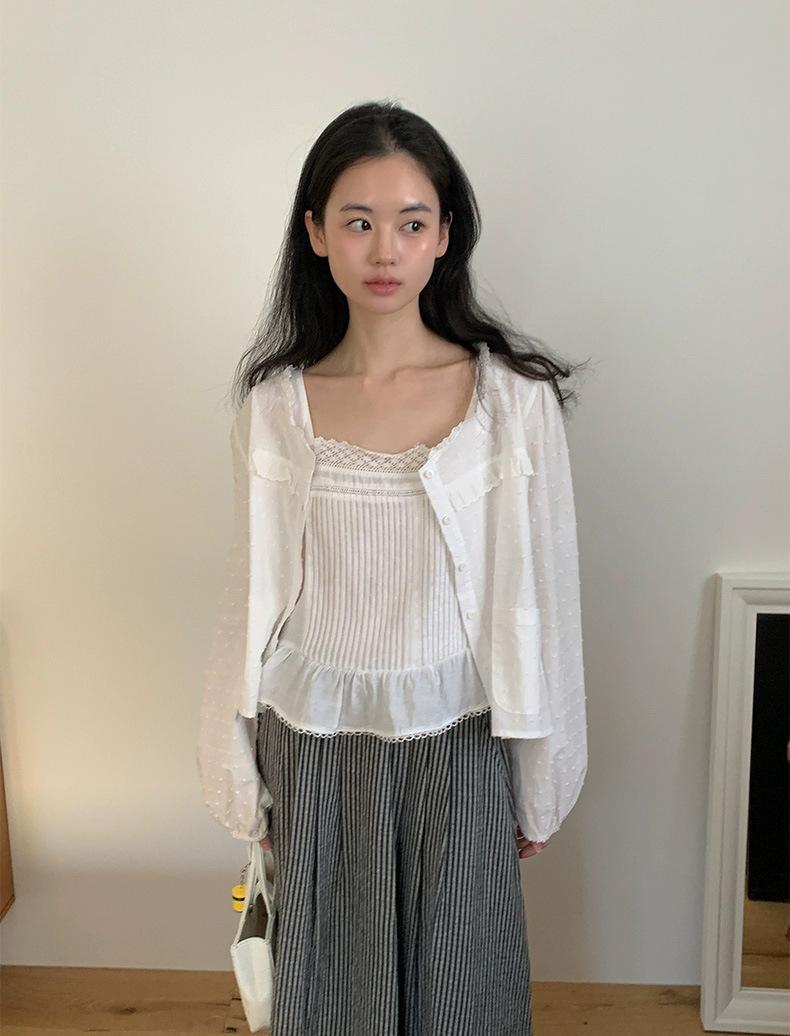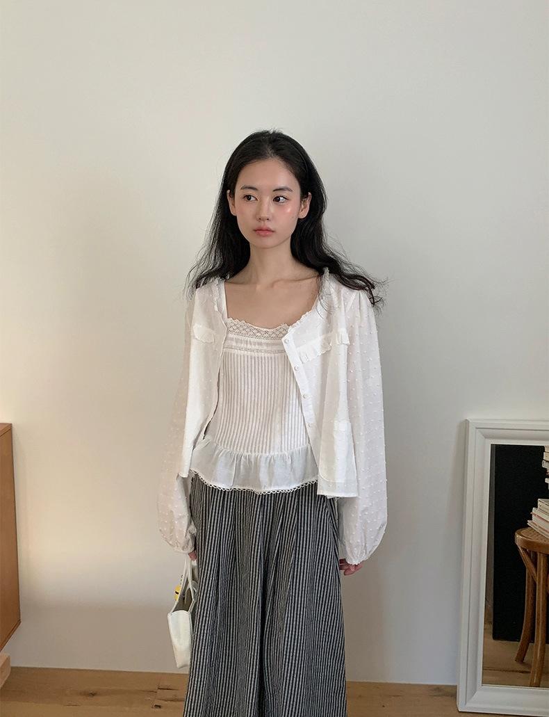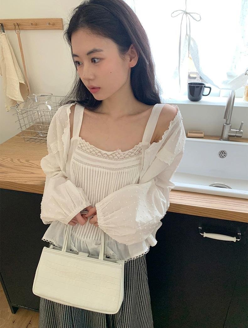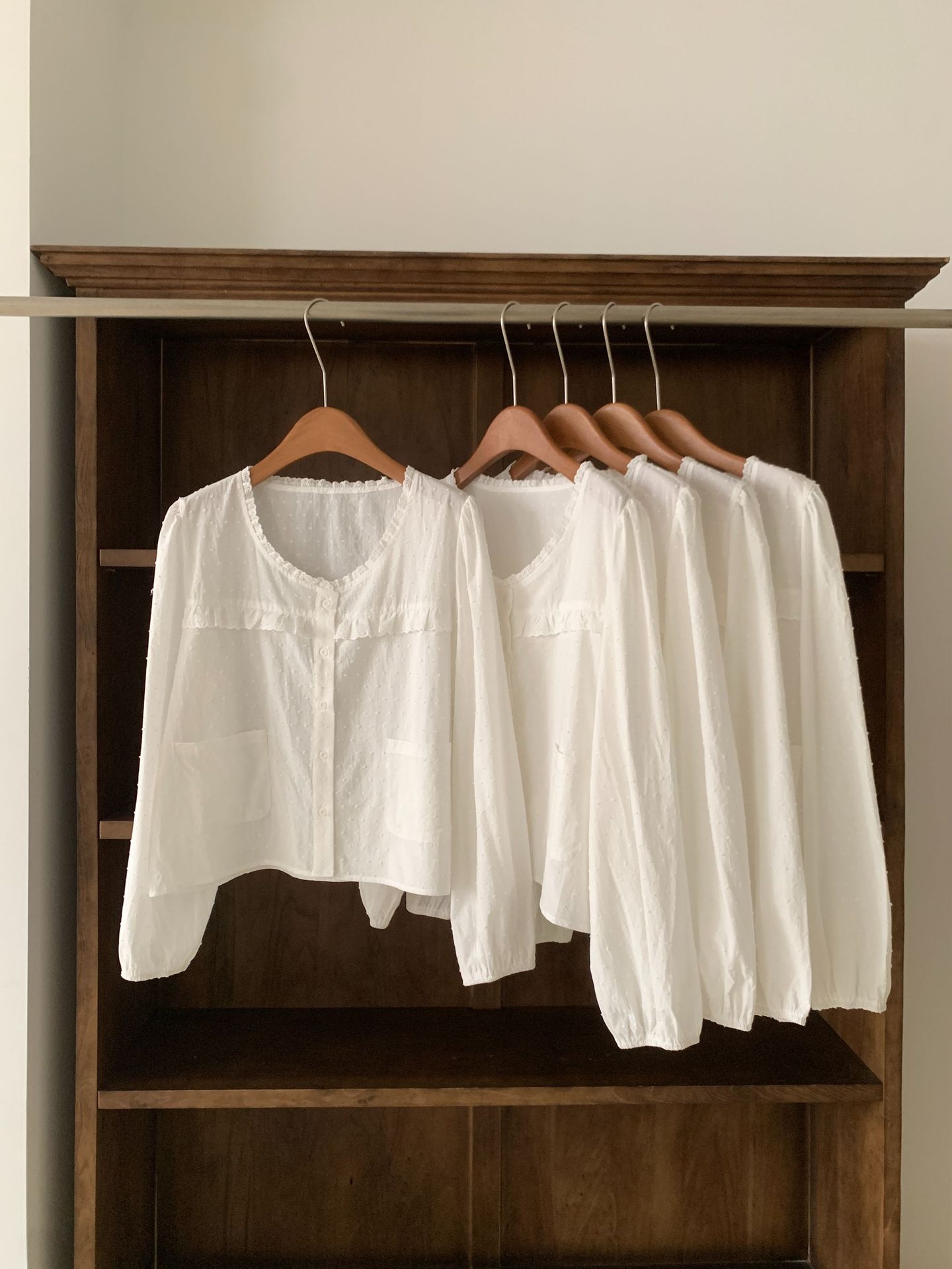 En Stock Verano 2025 Nuevo Coreano Dongdaemun Encaje de Punto Pequeño Tridimensional Camisa de Manga Larga Top Ropa Exterior
