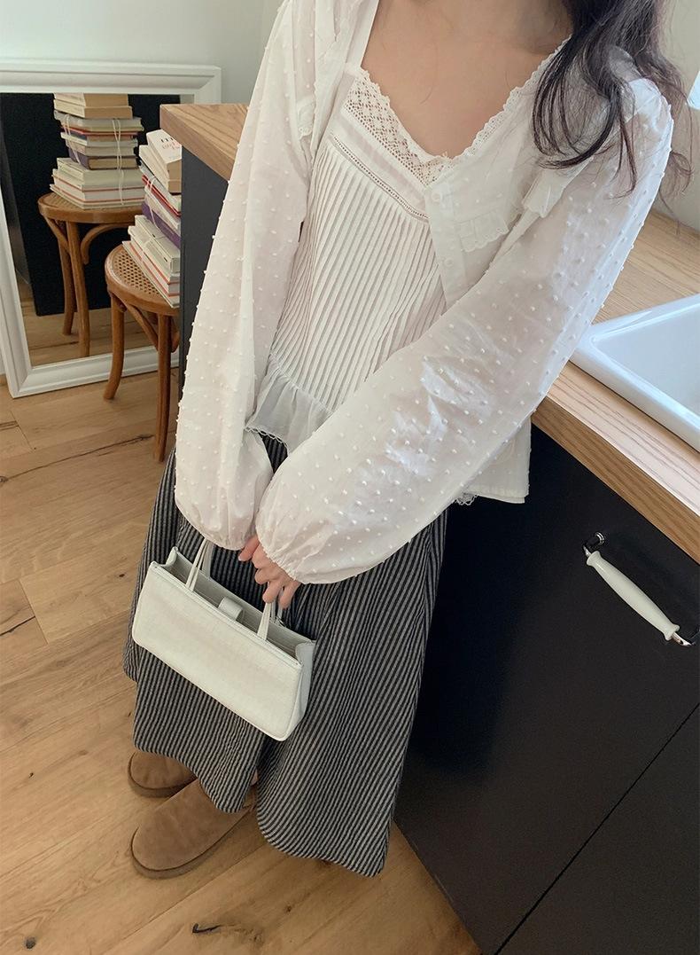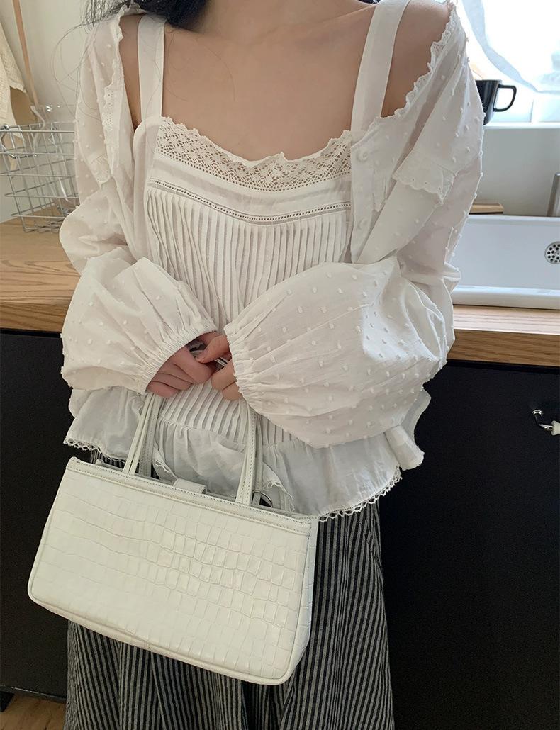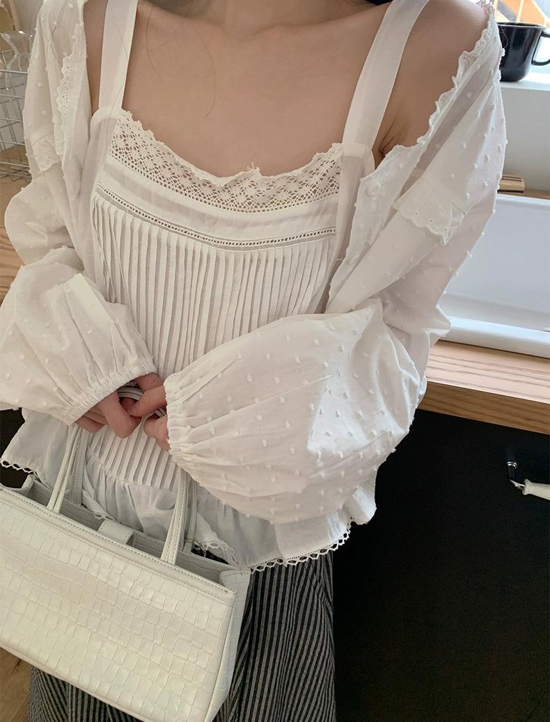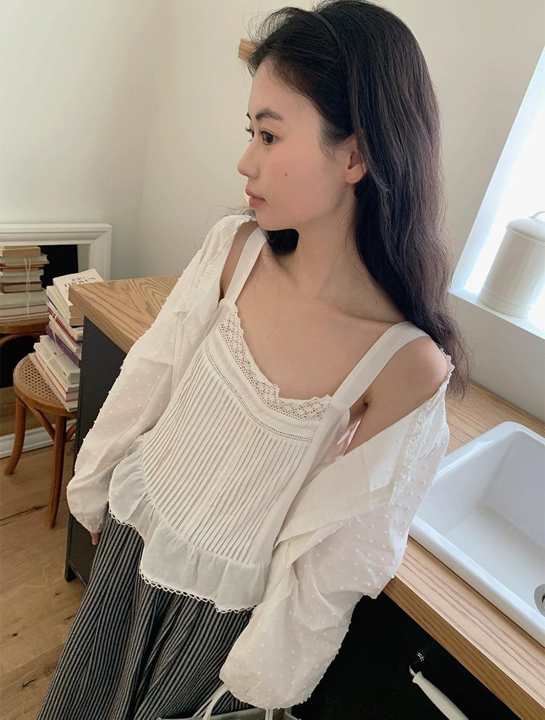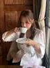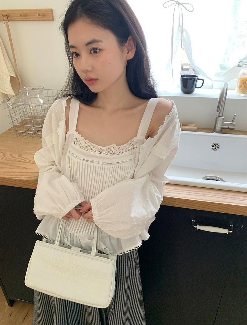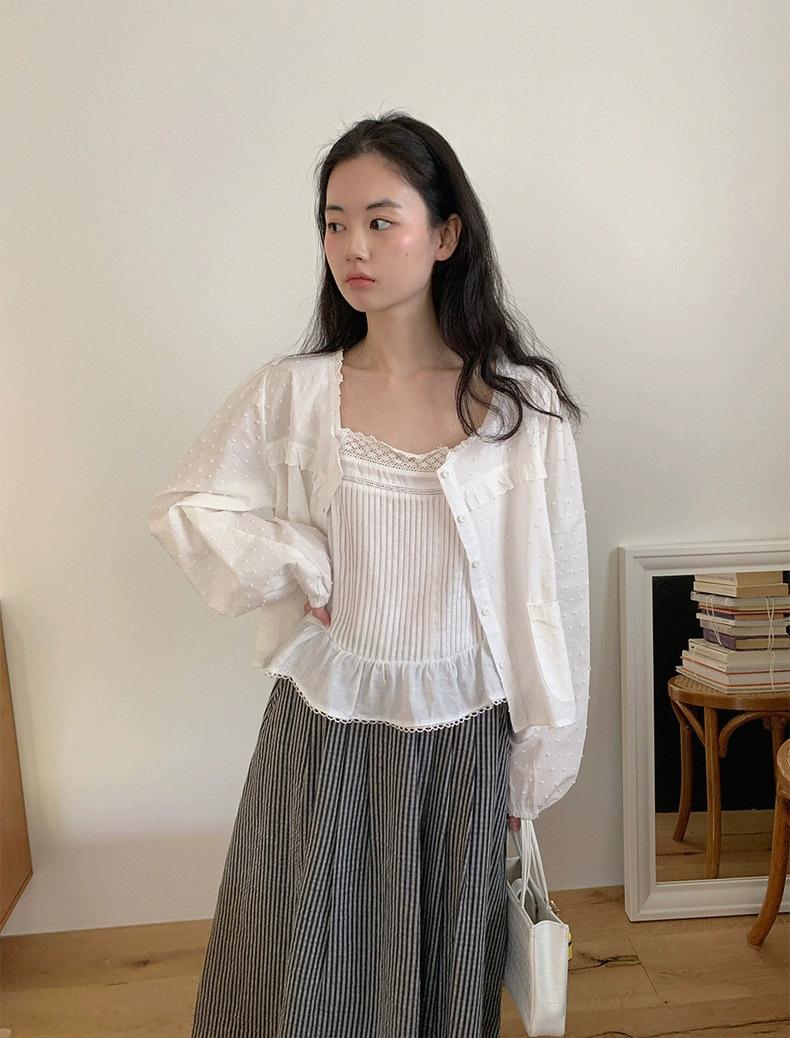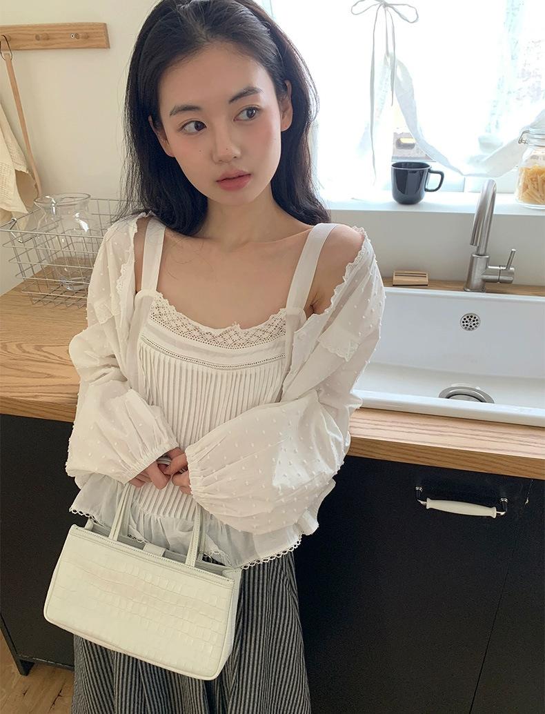 En Stock Verano 2025 Nuevo Coreano Dongdaemun Encaje de Punto Pequeño Tridimensional Camisa de Manga Larga Top Ropa Exterior