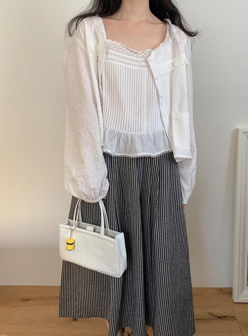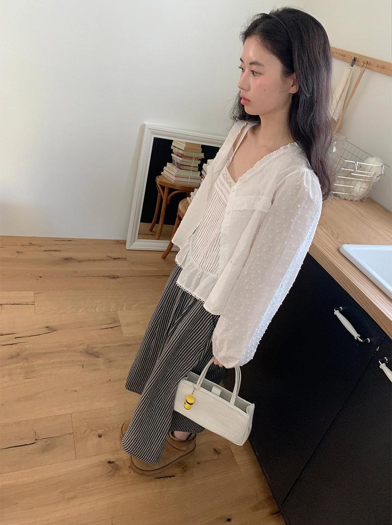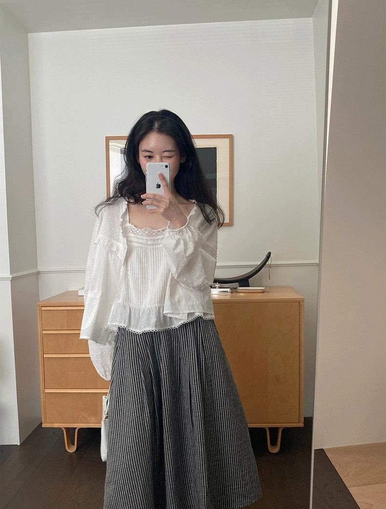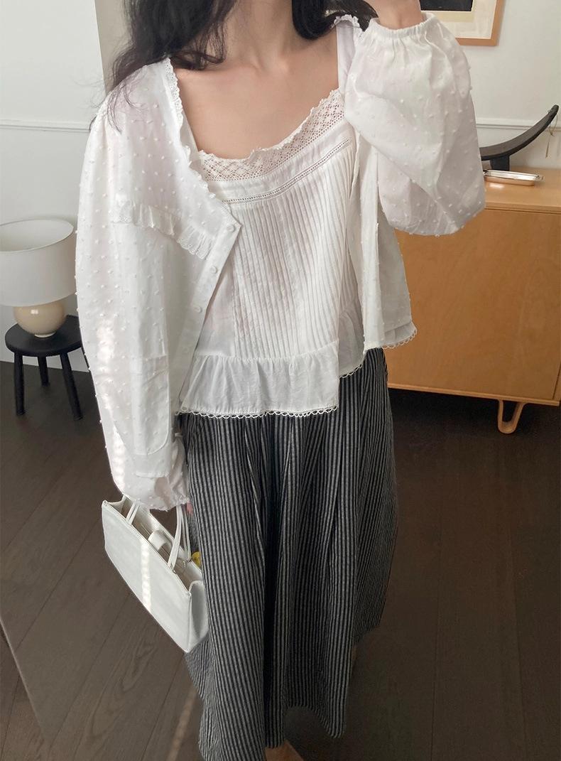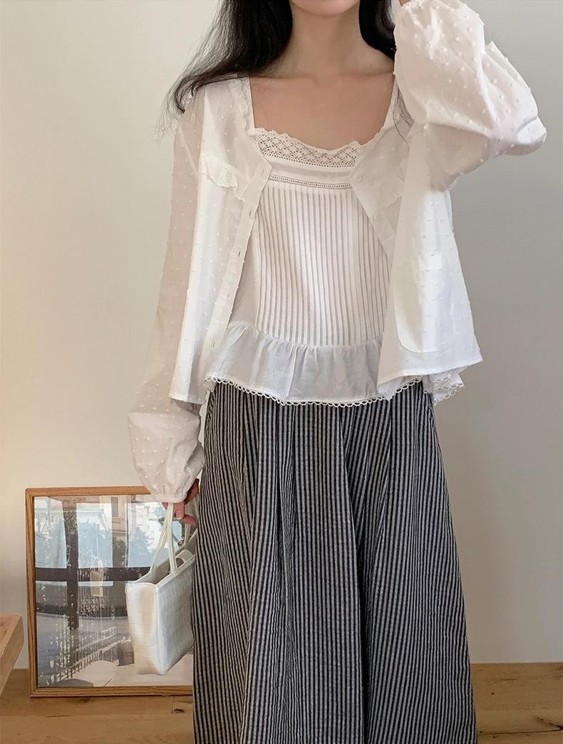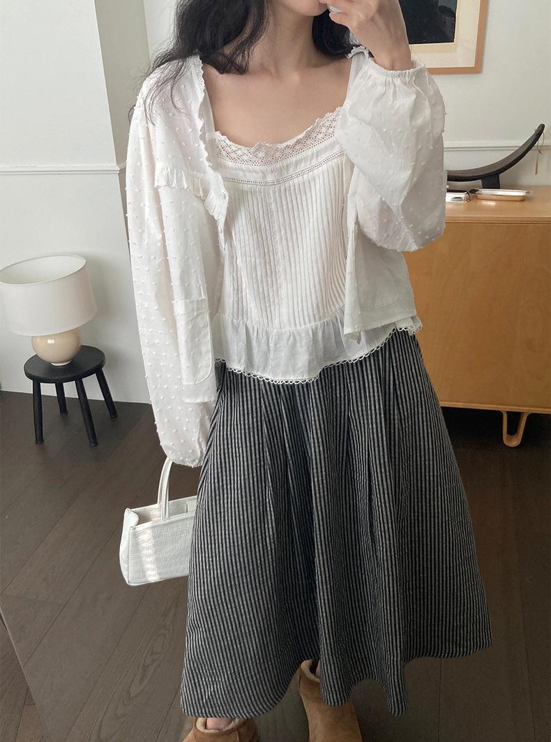 En Stock Verano 2025 Nuevo Coreano Dongdaemun Encaje de Punto Pequeño Tridimensional Camisa de Manga Larga Top Ropa Exterior