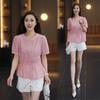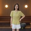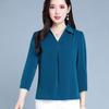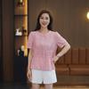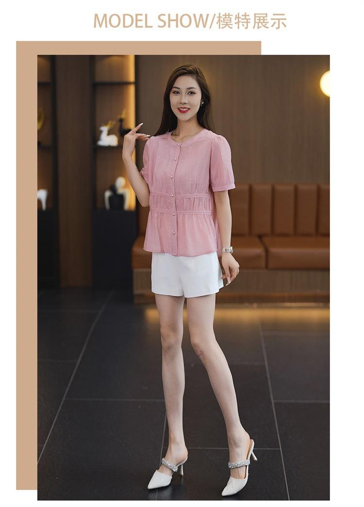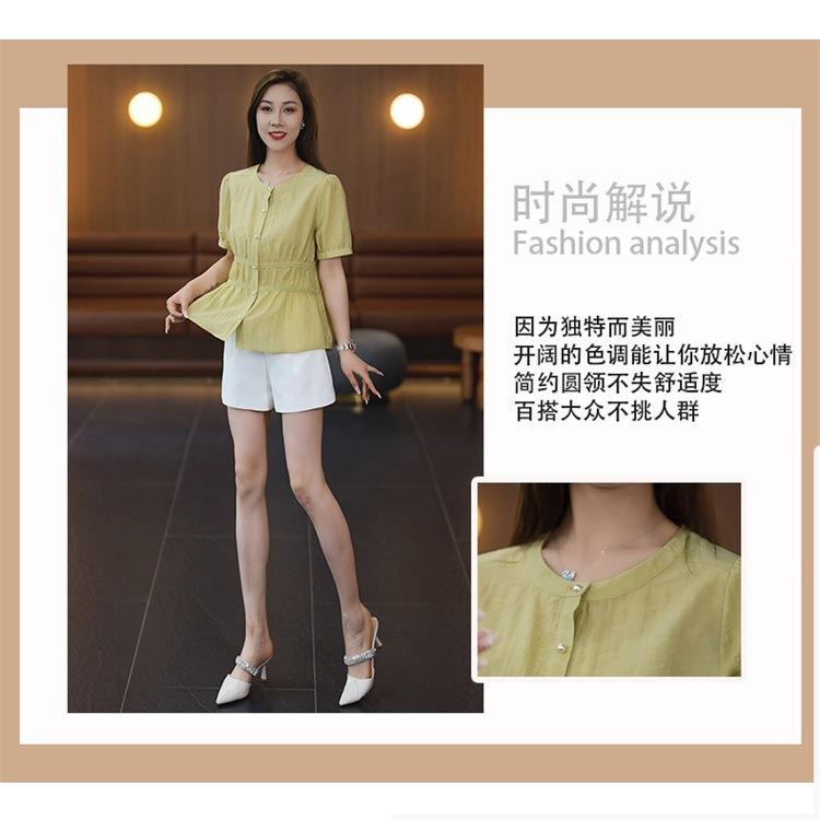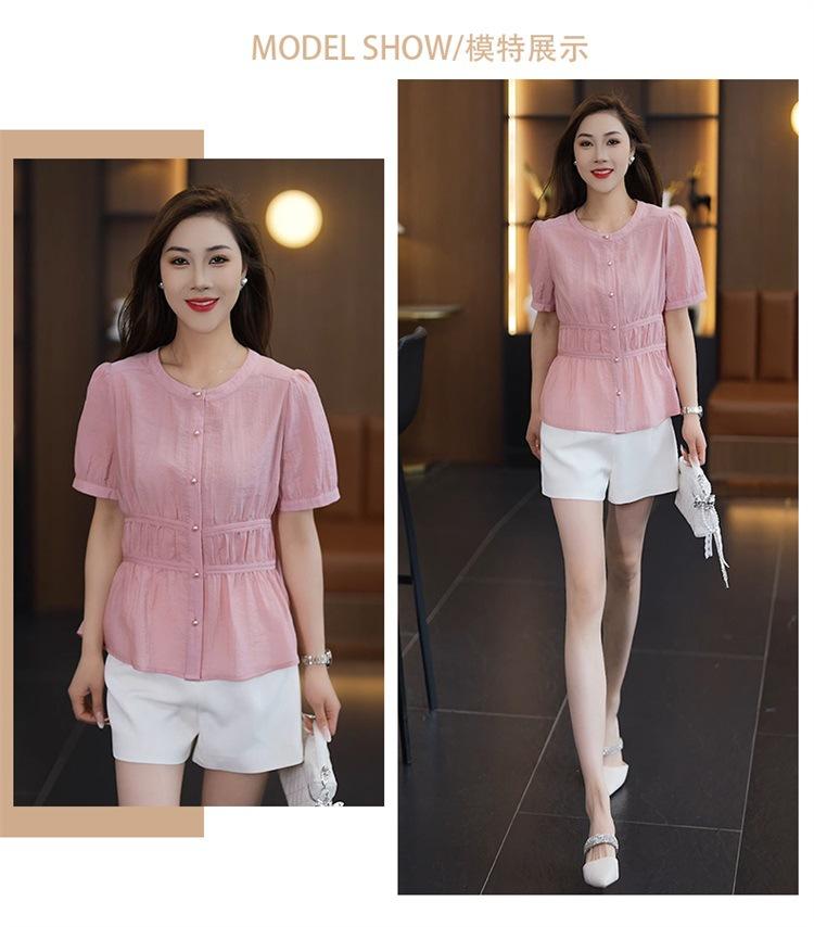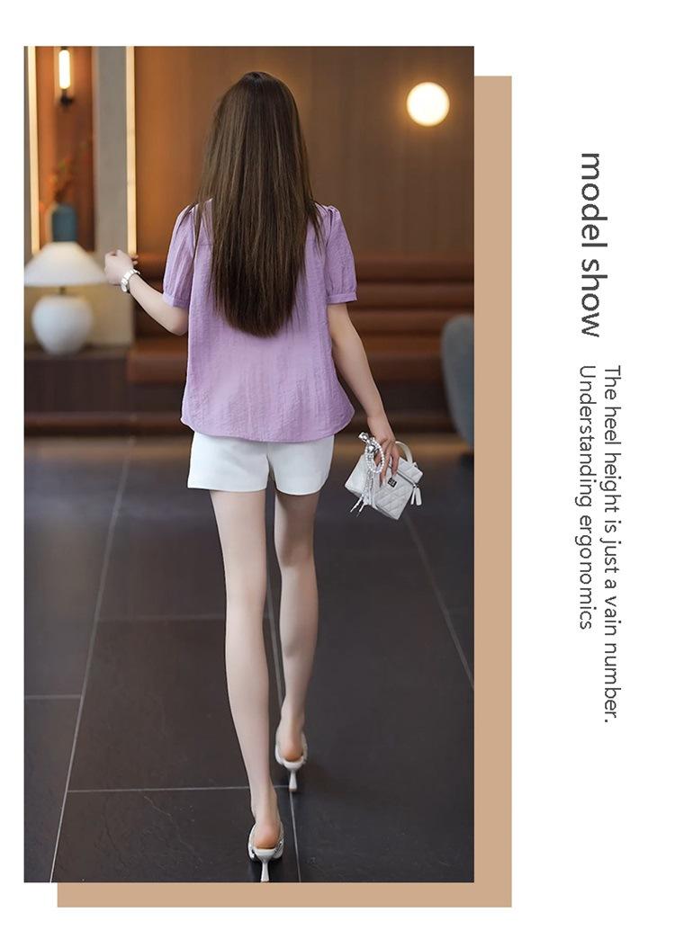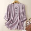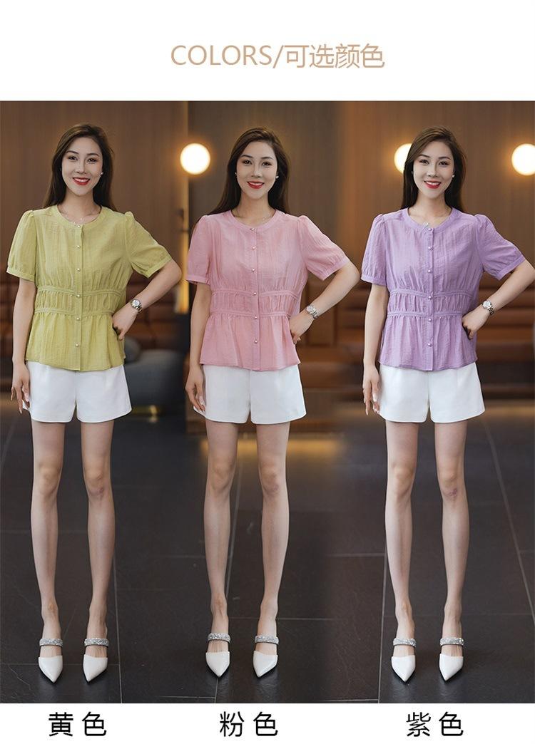 Ropa de Verano Nueva 2025, Camisa de Gasa Morada de Manga Corta de Talla Grande para Mujer, Holgada, Cubre Vientre, Aspecto Adelgazante, Reductor de Edad, Camisa Versátil