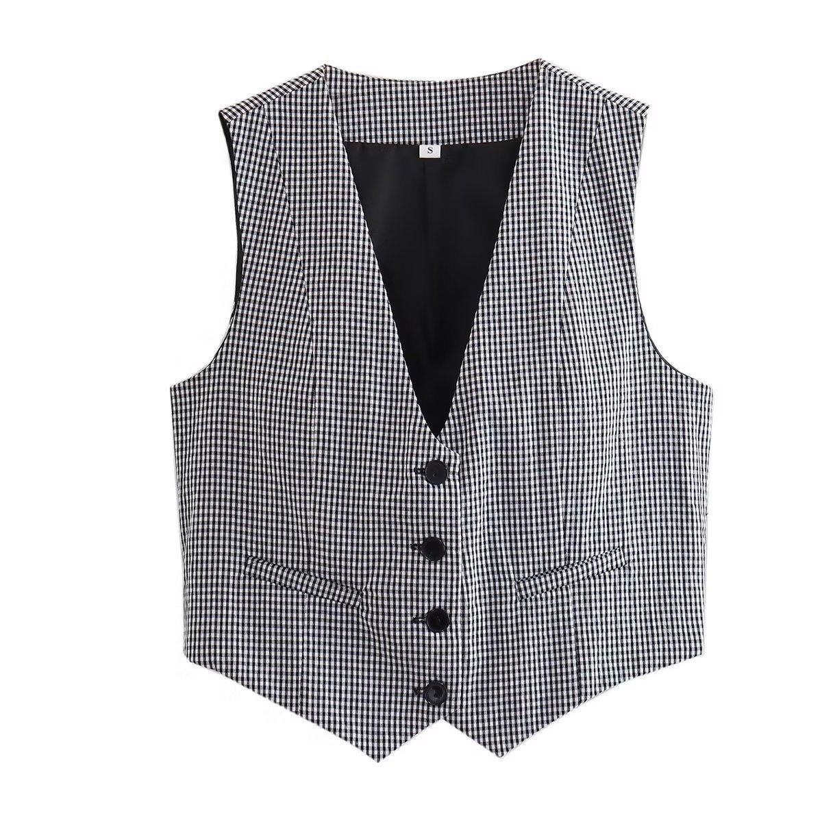 Otoño 2023 nuevo traje de mujer estilo europeo y americano de botonadura sencilla chaleco de 7 colores