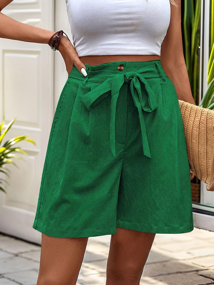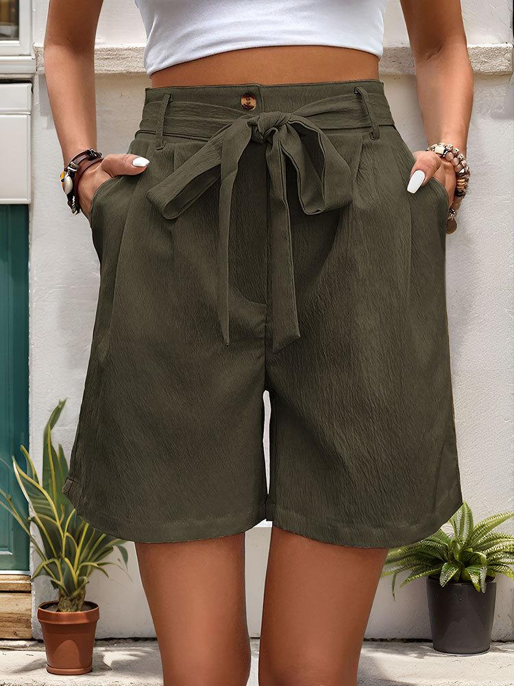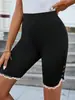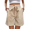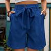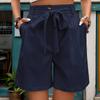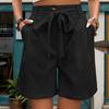 Amazon Europa y América Ropa de Mujer Transfronteriza Shorts Sencillos Casuales con Cordones Cintura Elástica Color Sólido Pierna Recta Pantalones Cortos para Mujer