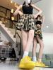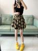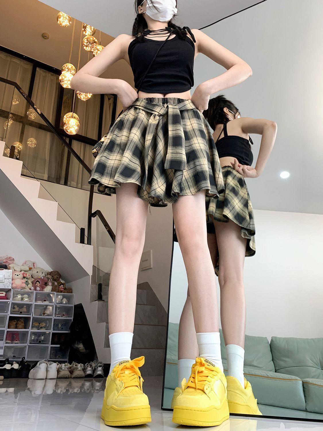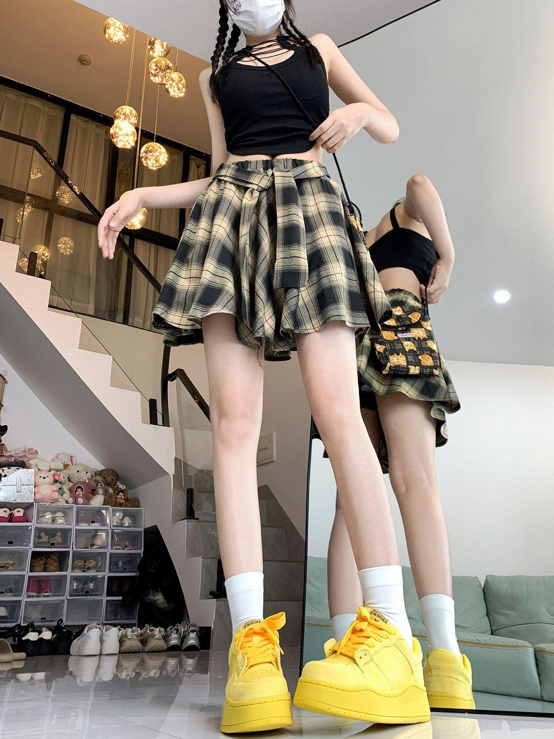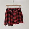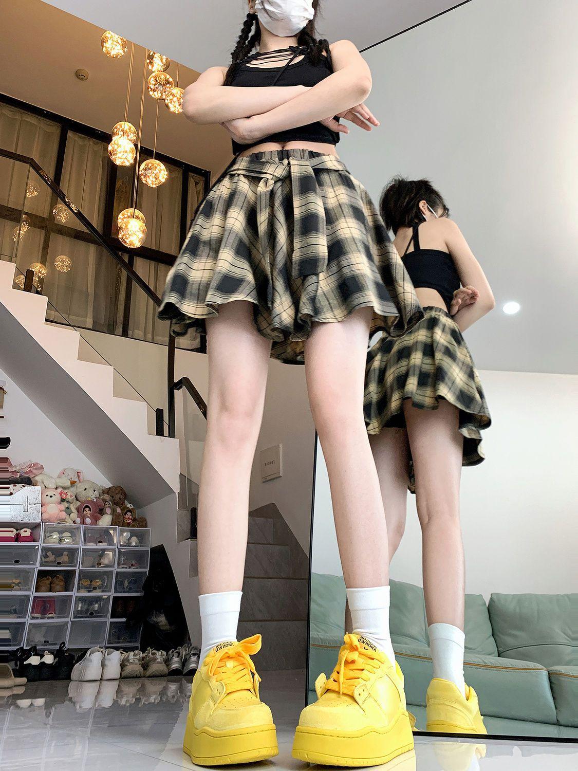 Falda a cuadros Nueva Retro Verano Irregular Diseño Elástico Dobladillo Camisero Falda Cintura Alta Falda de Estudiante